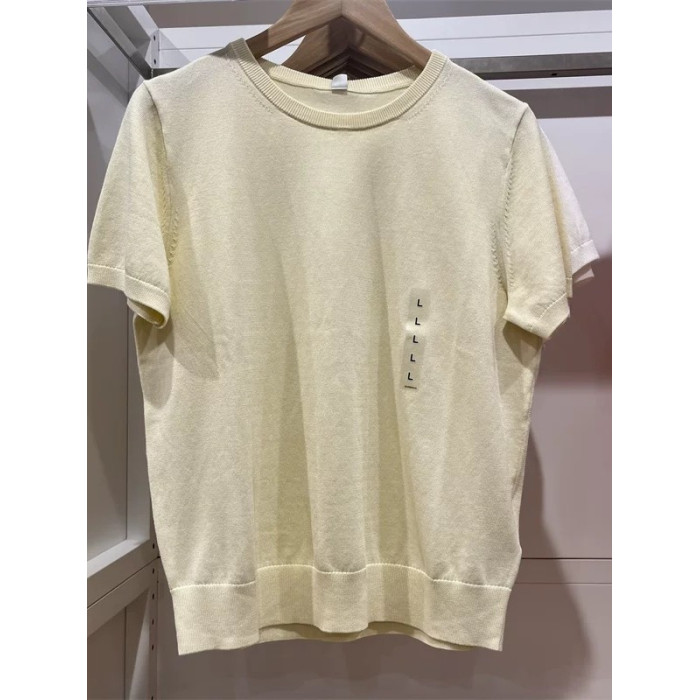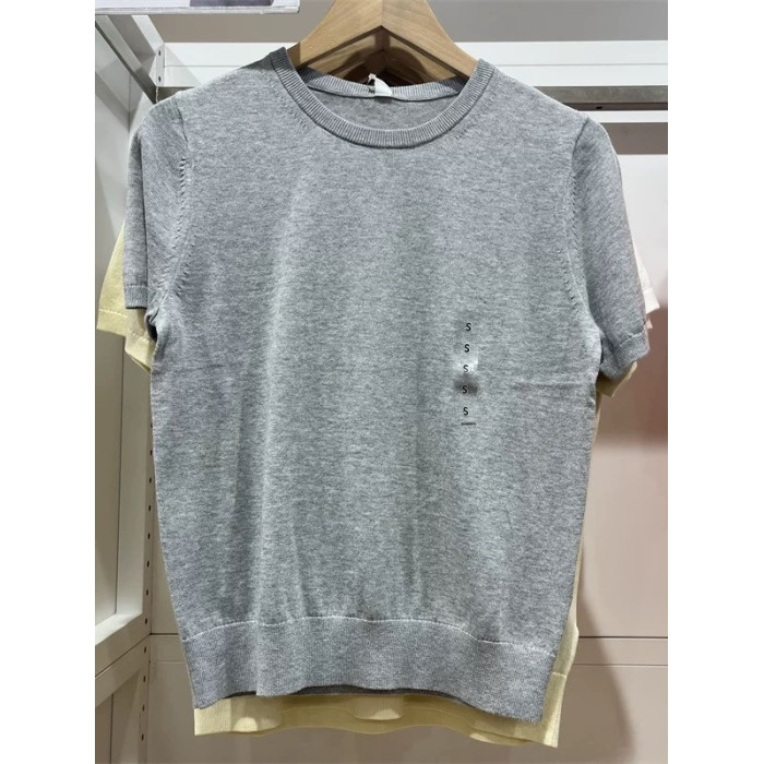 日單女裝莫代爾棉混紡圓領套頭針織衫短袖毛衣打底衫25春款474983