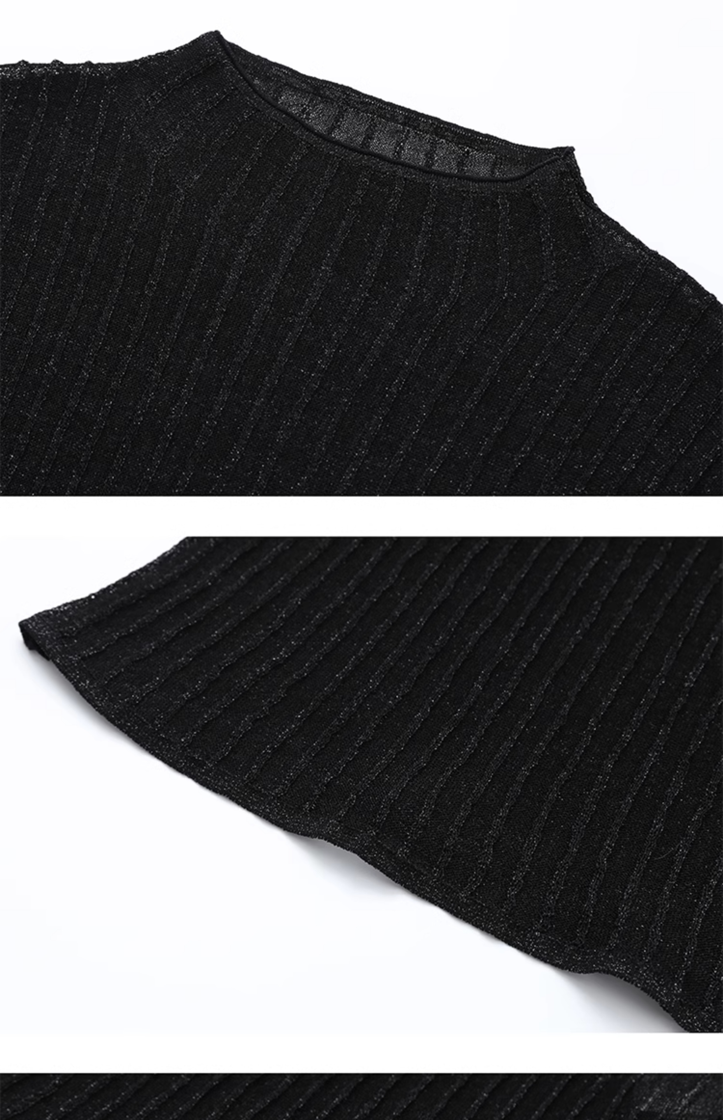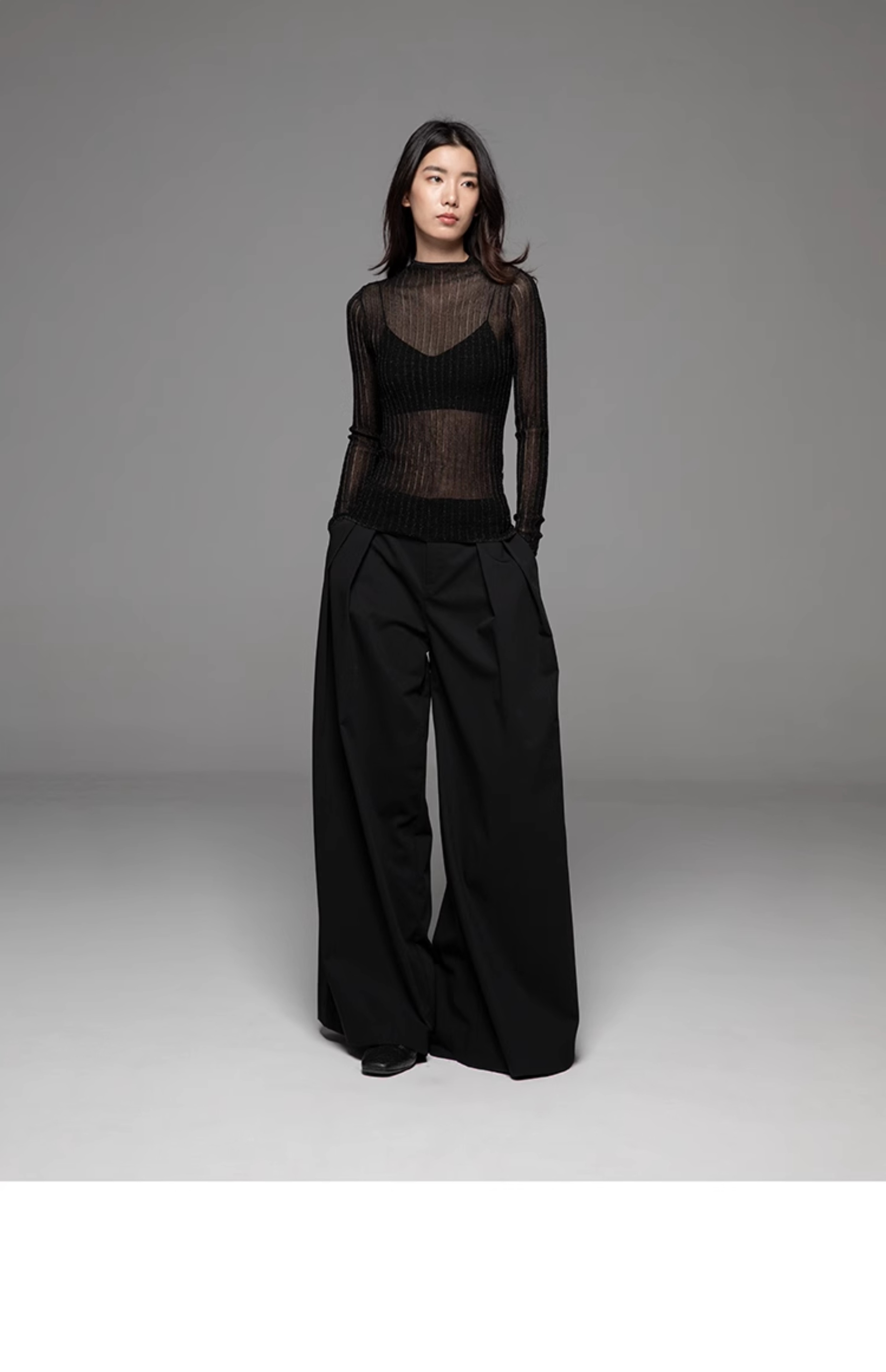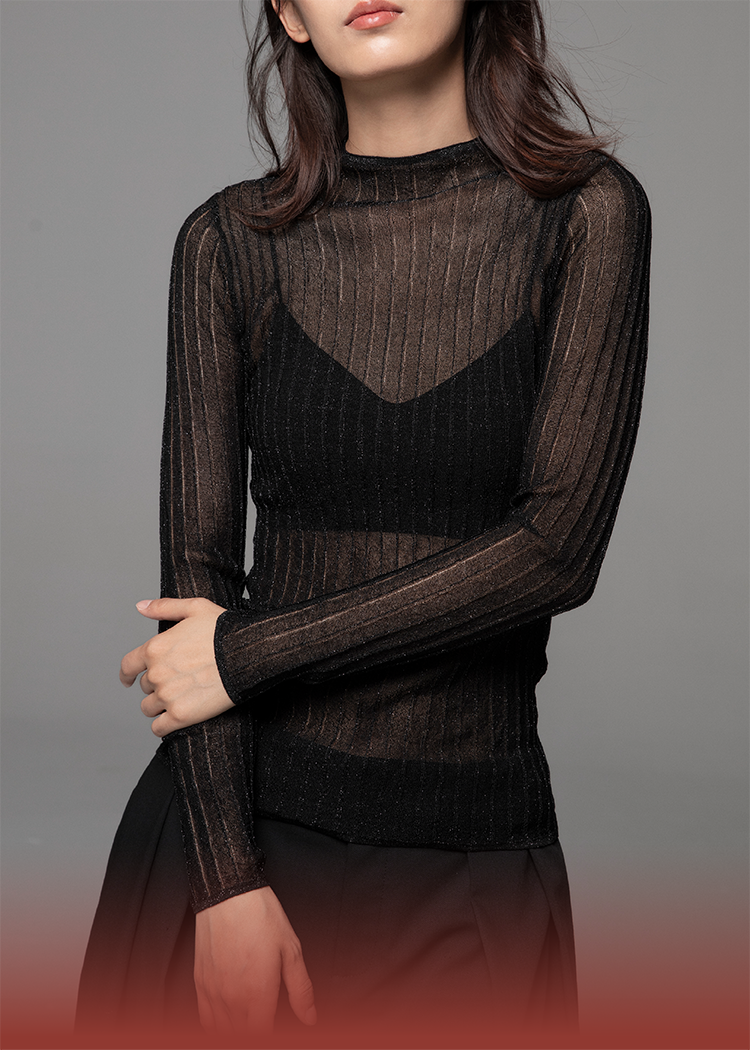 LIYIHAN2025秋季黑色罩衫氣質法式上衣女透視針織衫圓領輕奢長袖