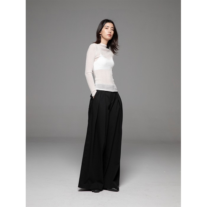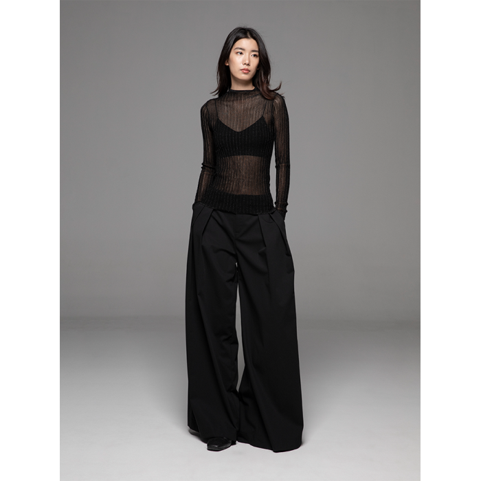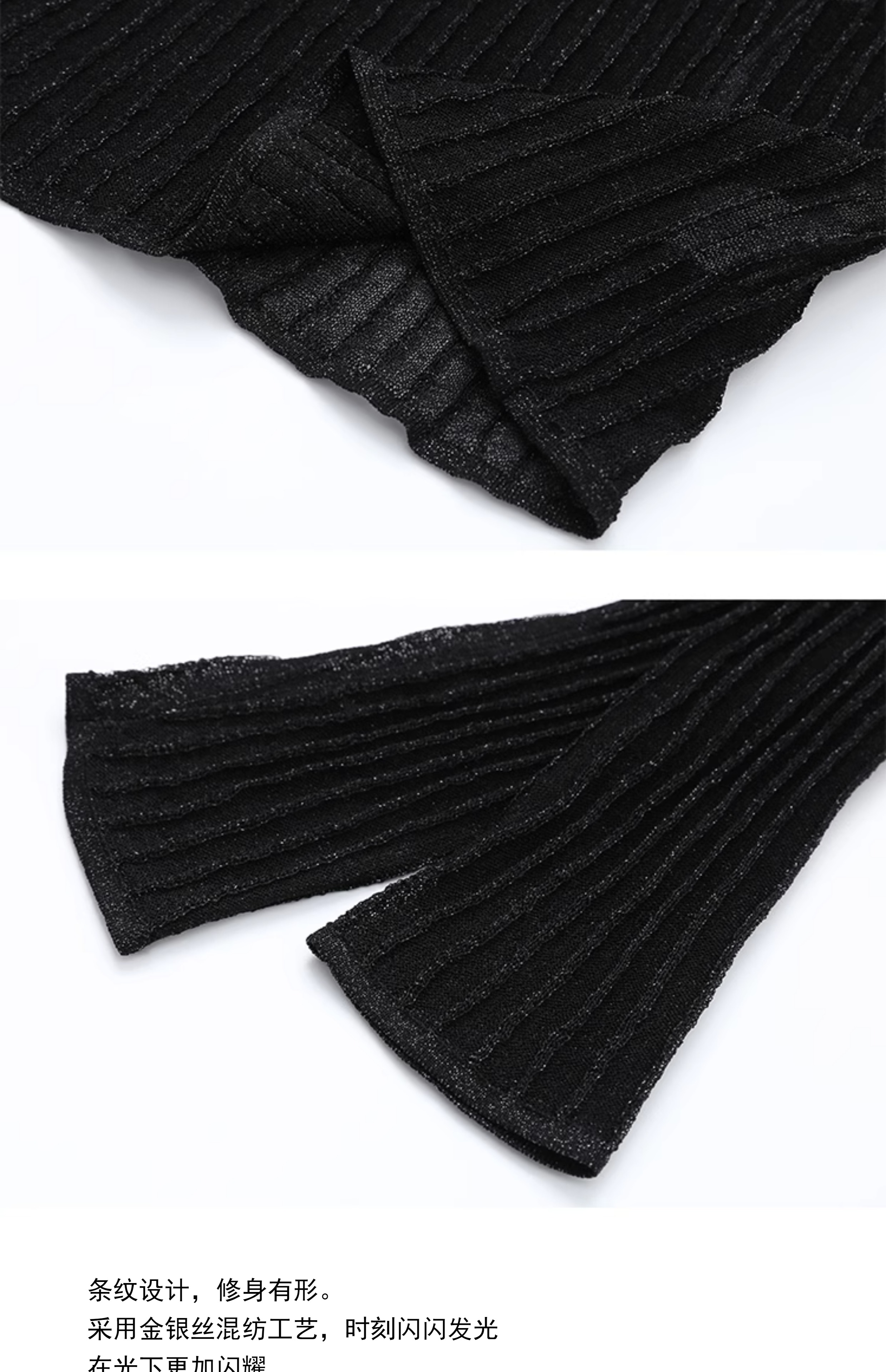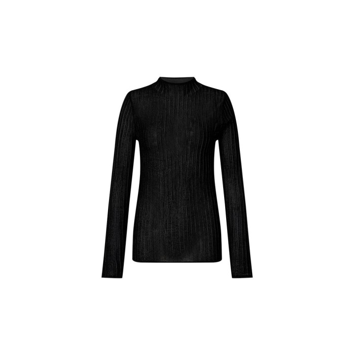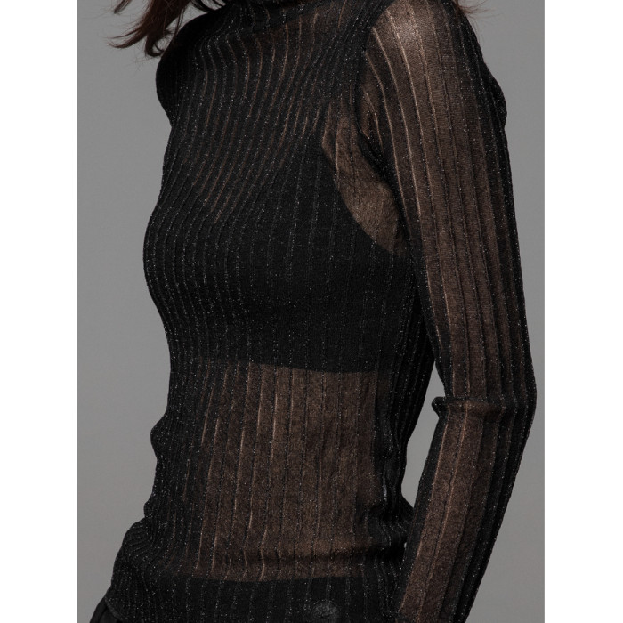 LIYIHAN2025秋季黑色罩衫氣質法式上衣女透視針織衫圓領輕奢長袖