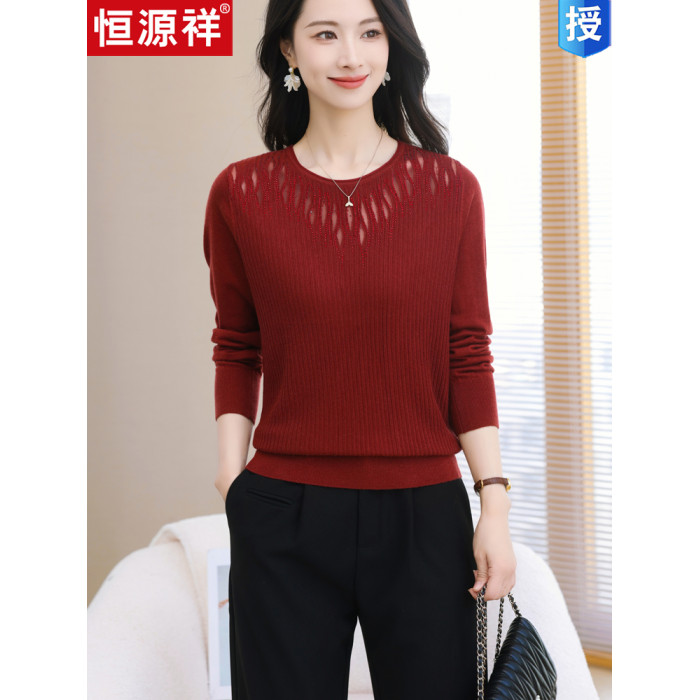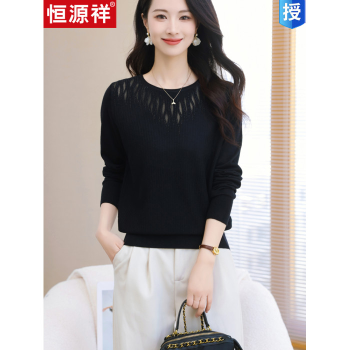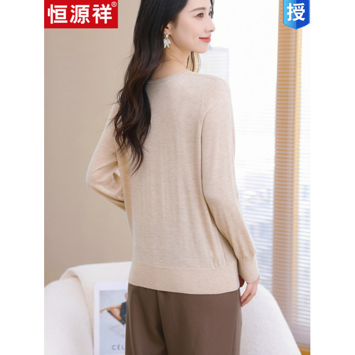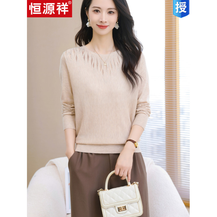 品牌早春圓領針織衫長袖上衣2025款裝寬松羊毛打底衫薄款毛衣