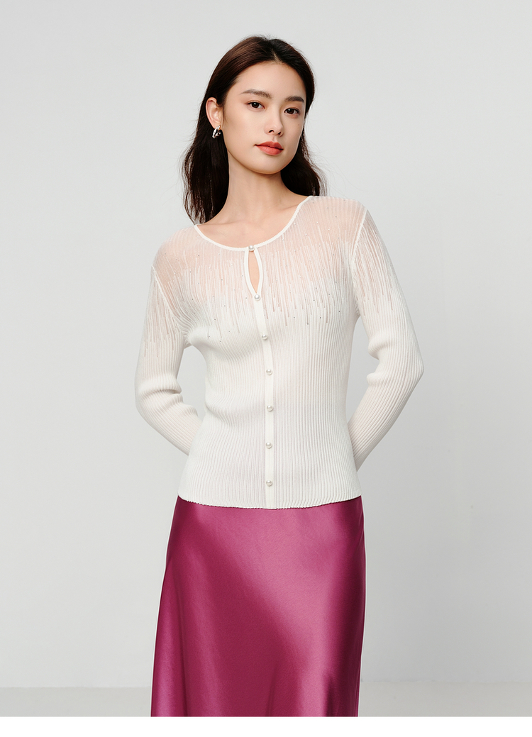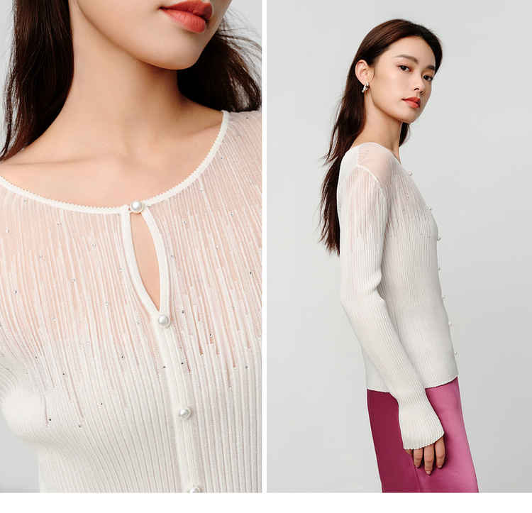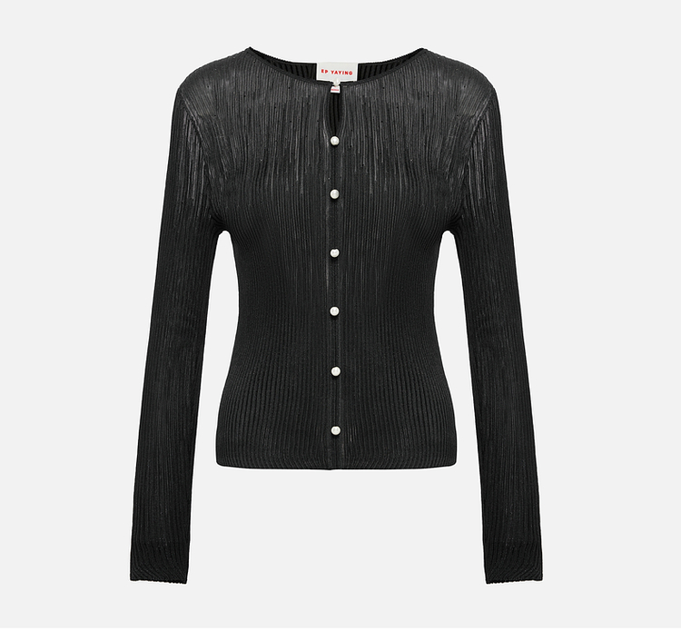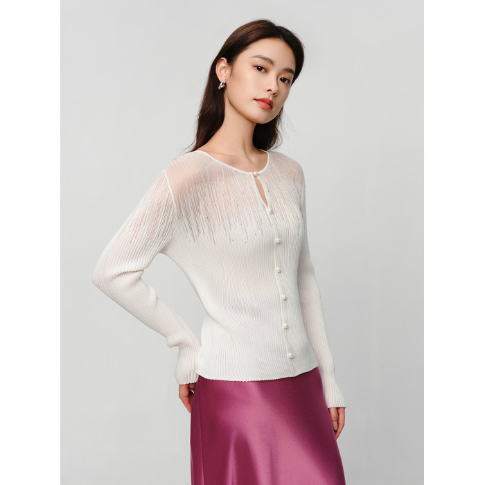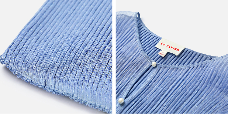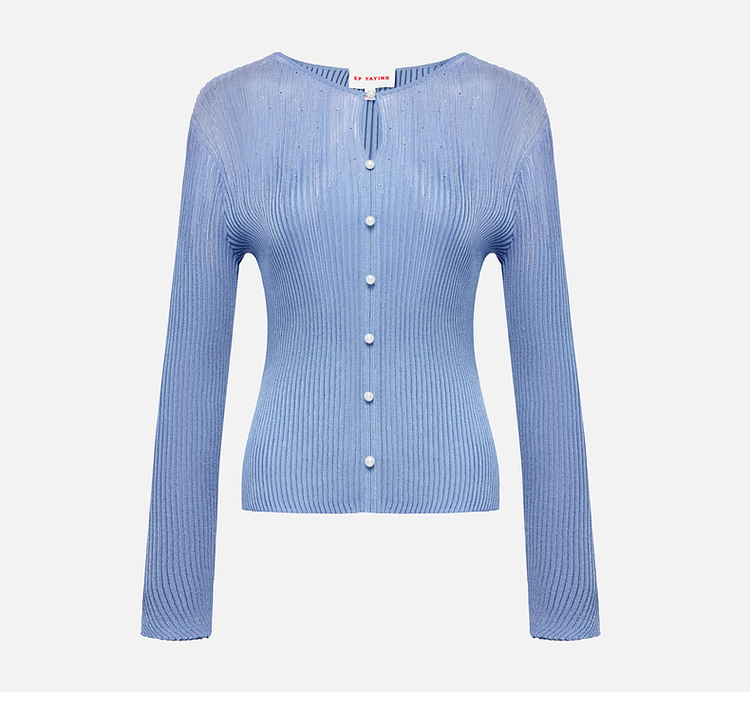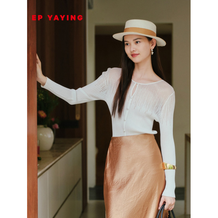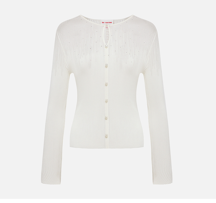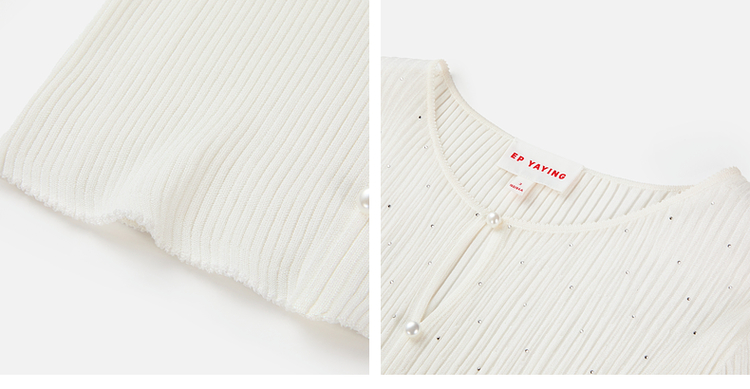 EP雅瑩女裝 絲醋酸氣質圓領修身燙鑽針織打底衫2025夏季新款9513A