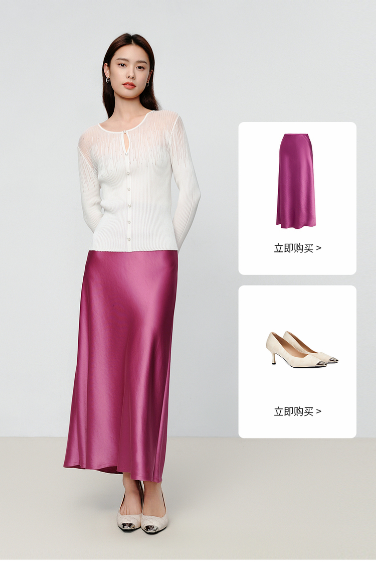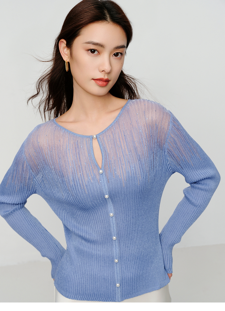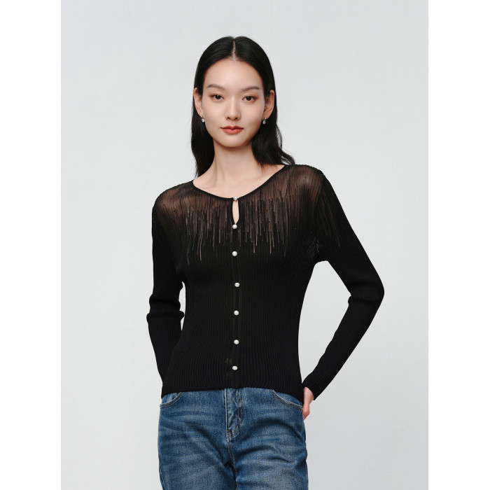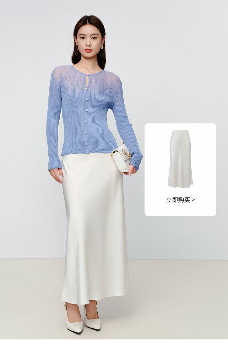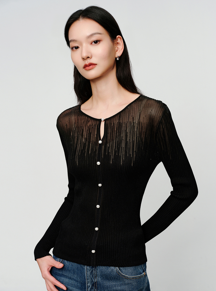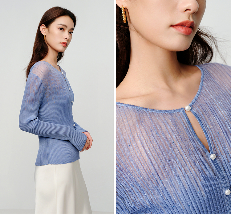 EP雅瑩女裝 絲醋酸氣質圓領修身燙鑽針織打底衫2025夏季新款9513A