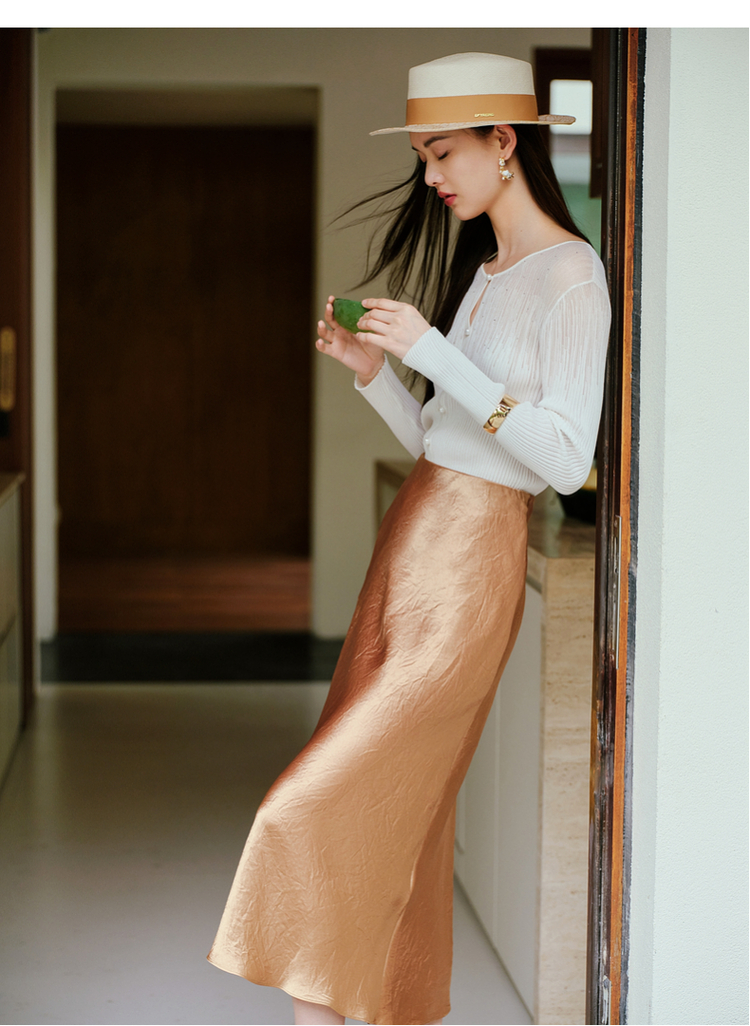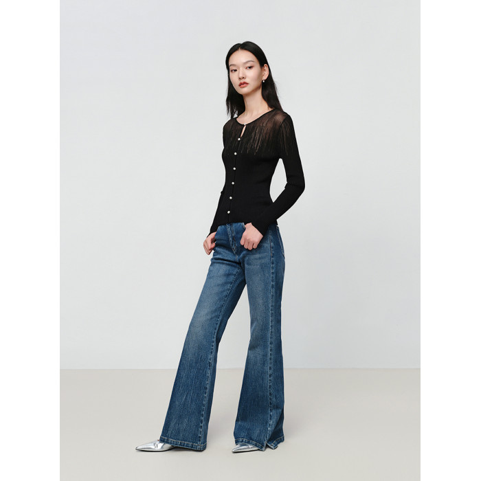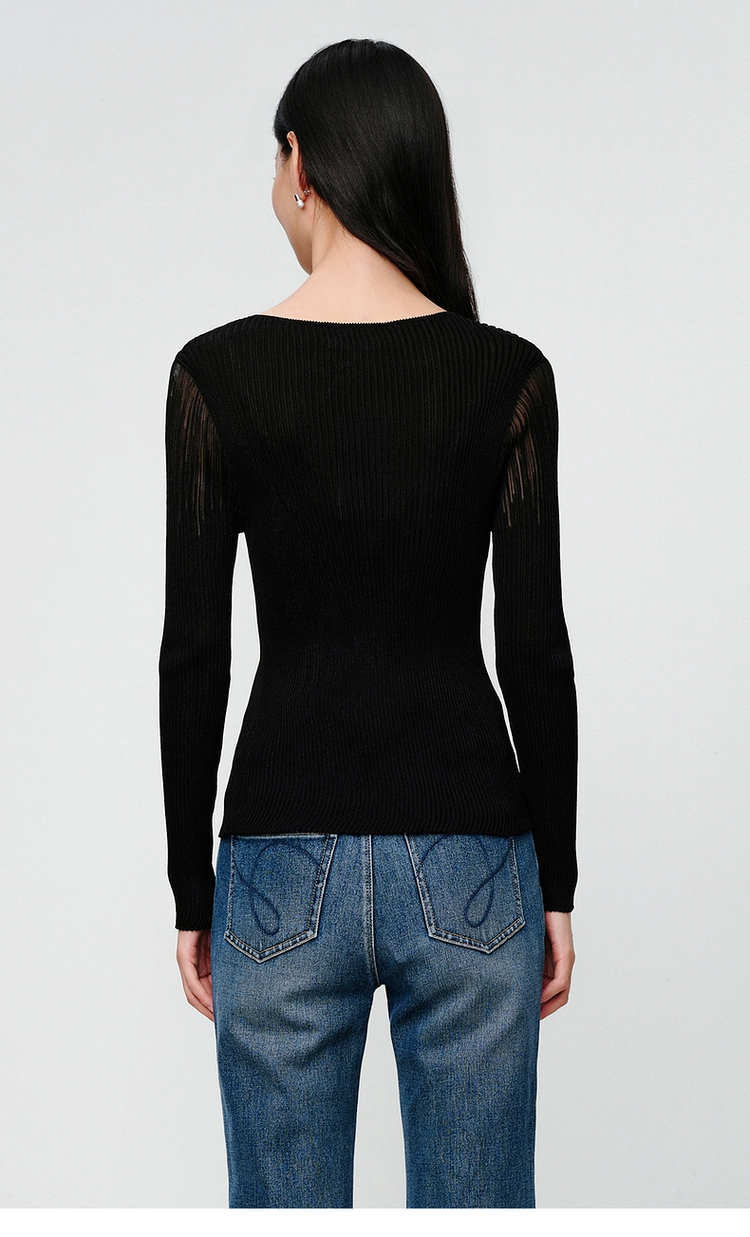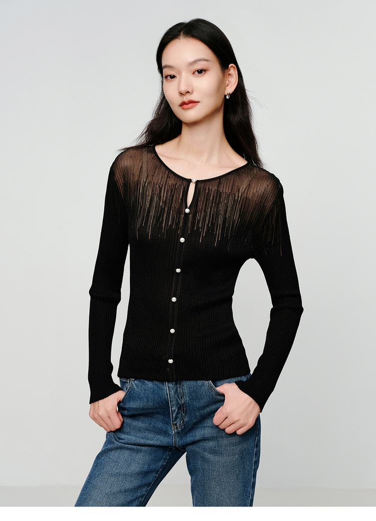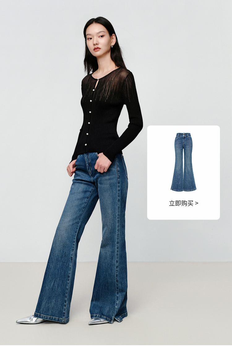 EP雅瑩女裝 絲醋酸氣質圓領修身燙鑽針織打底衫2025夏季新款9513A