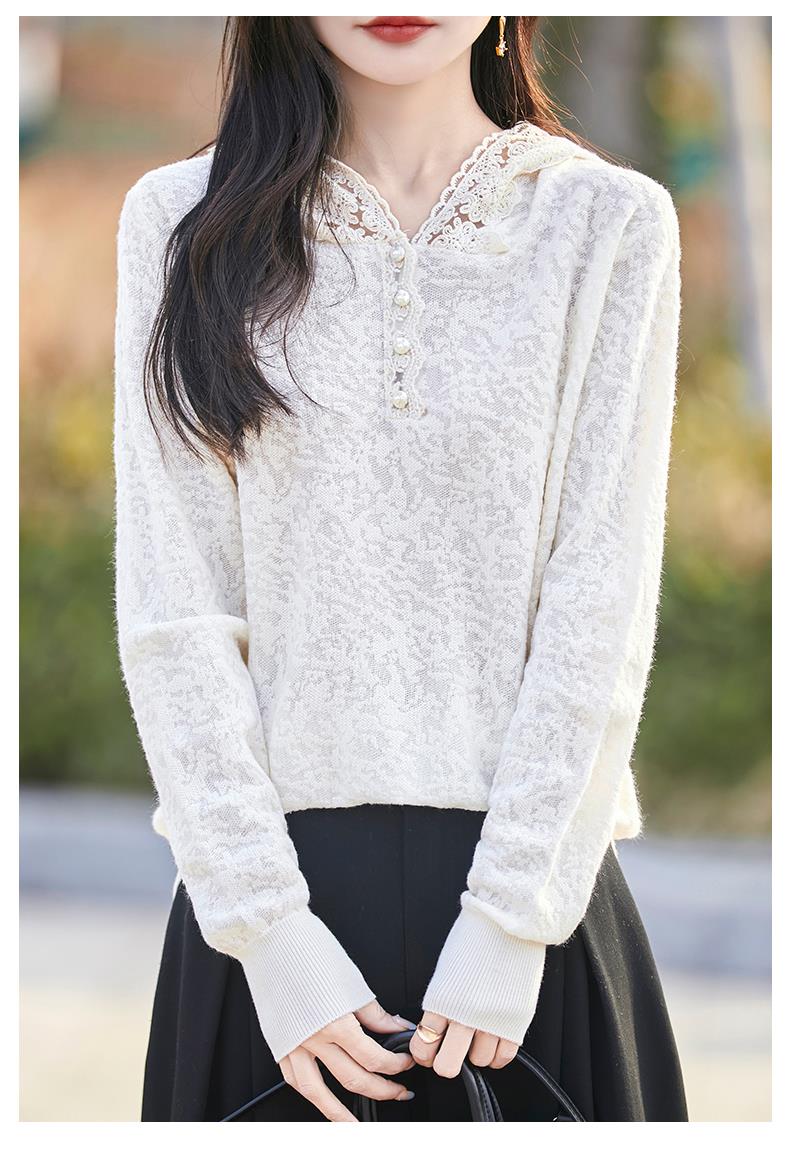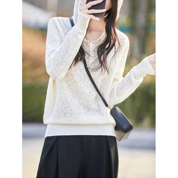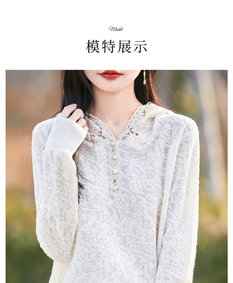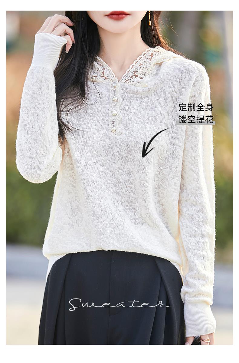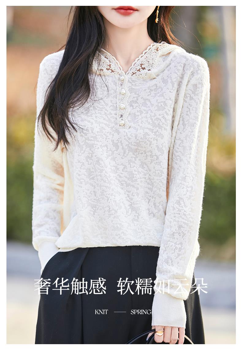 小香風蕾絲鏤空洋氣連帽針織衫溫柔針織白衛衣上衣內搭打底衫外套
