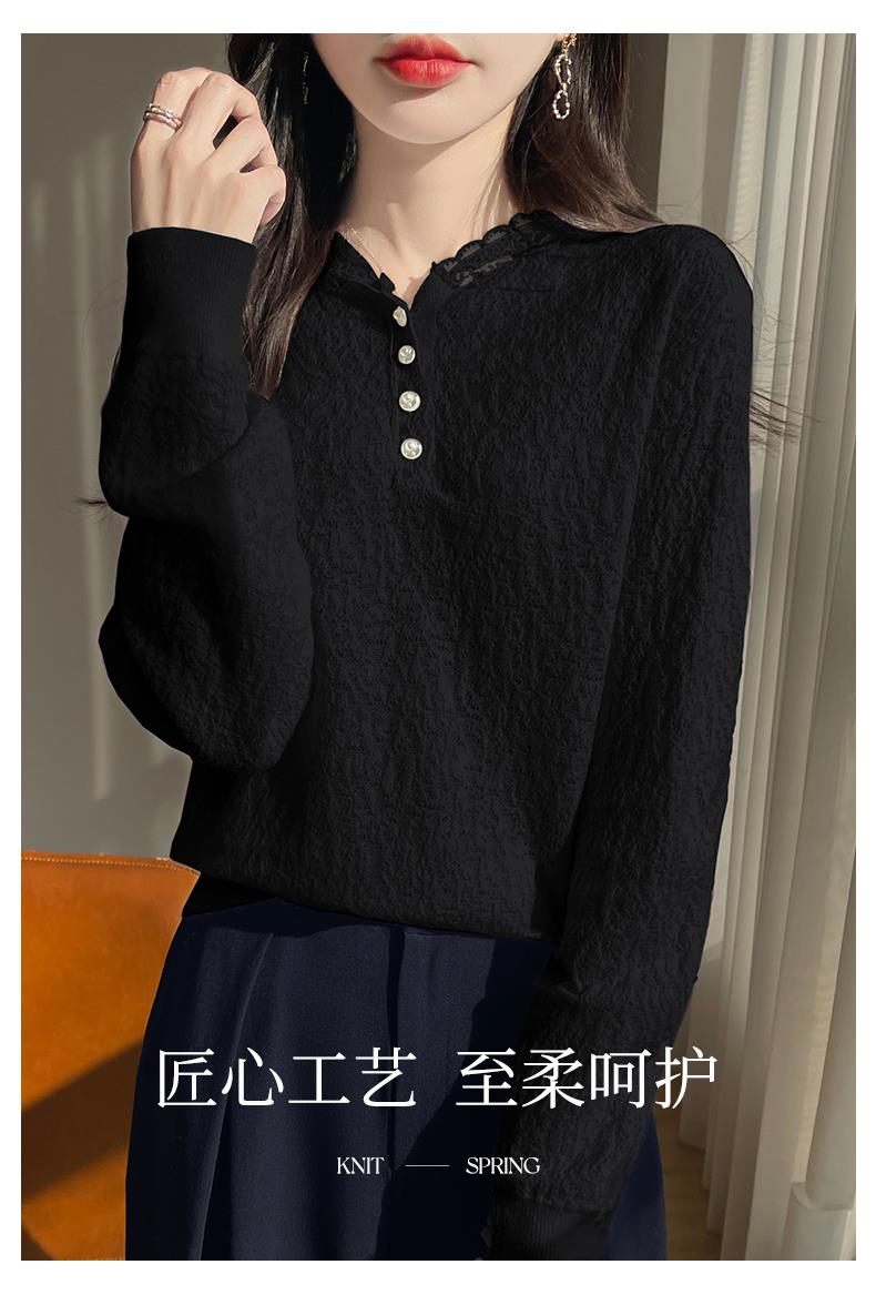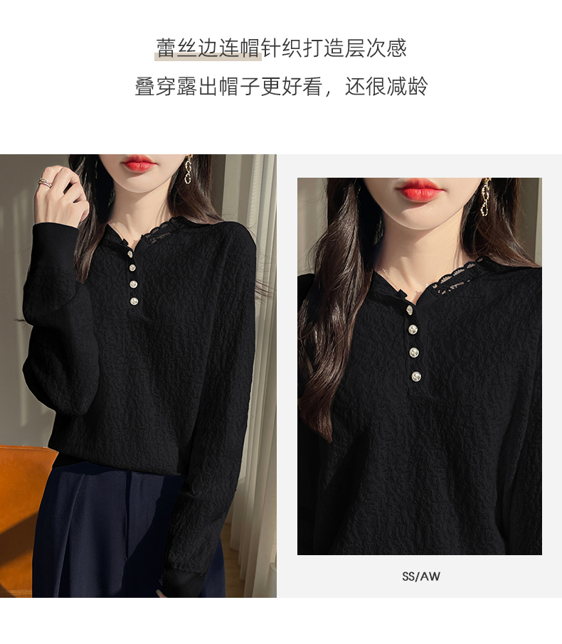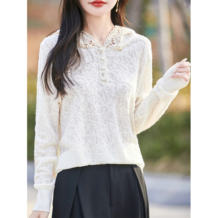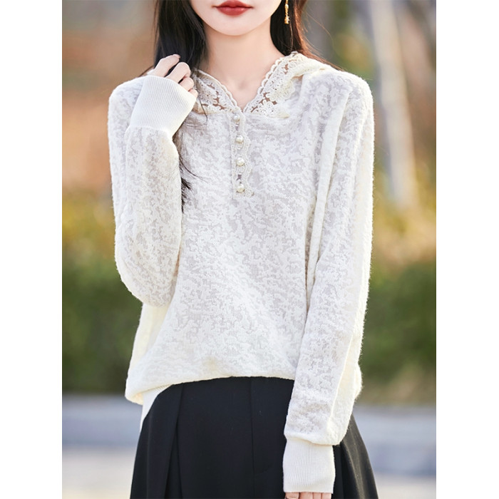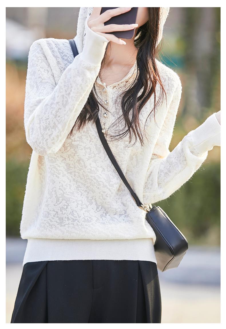 小香風蕾絲鏤空洋氣連帽針織衫溫柔針織白衛衣上衣內搭打底衫外套