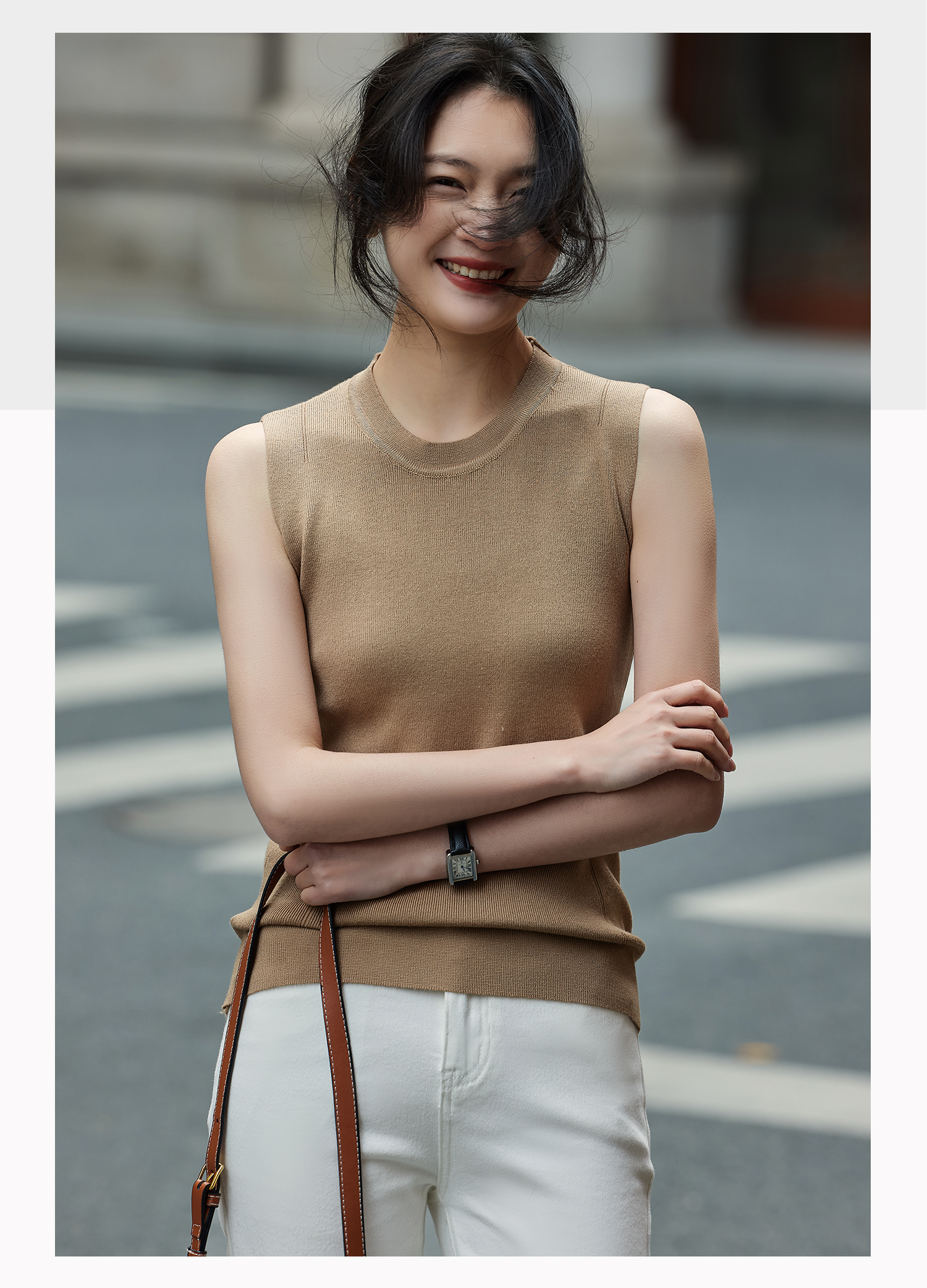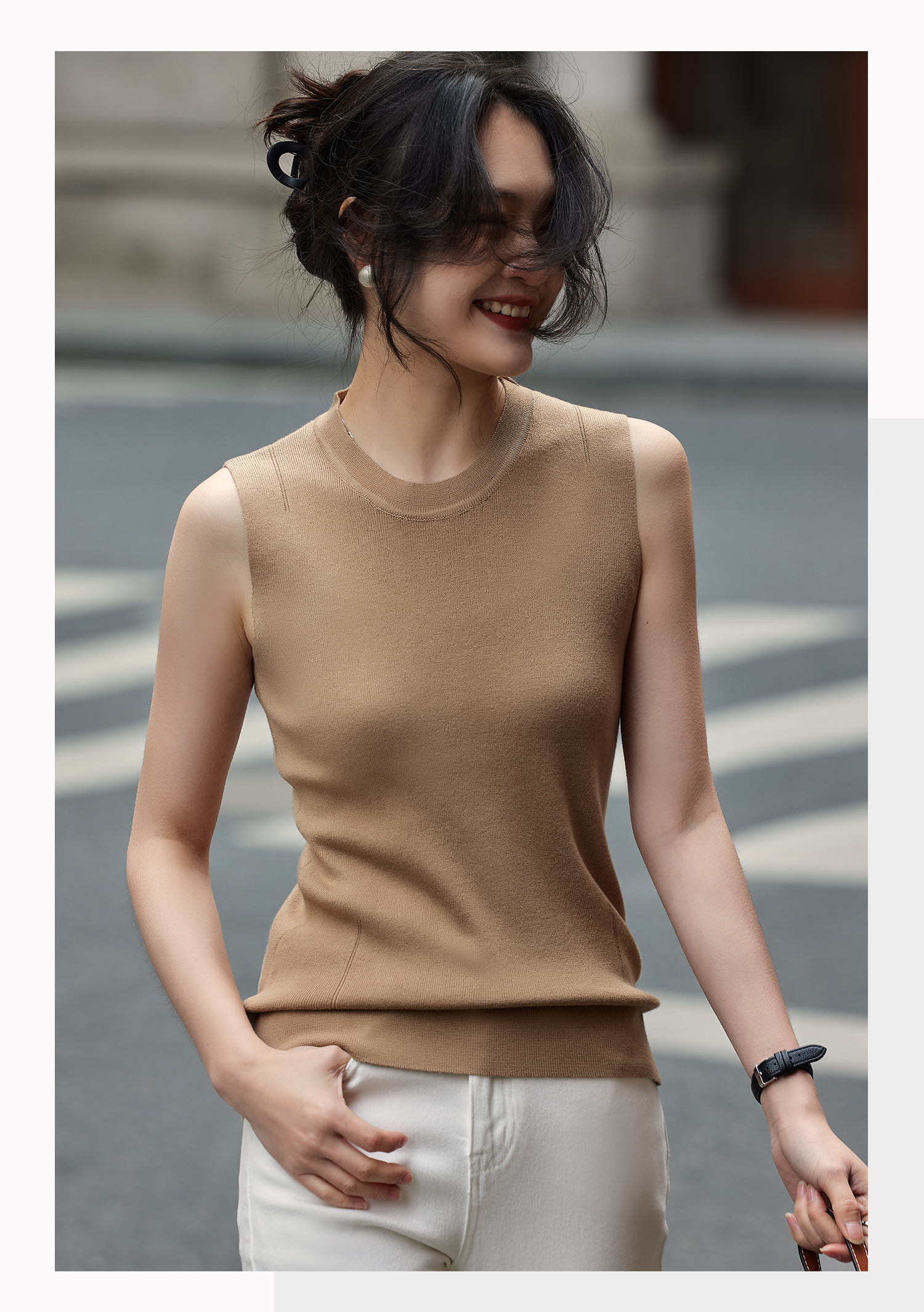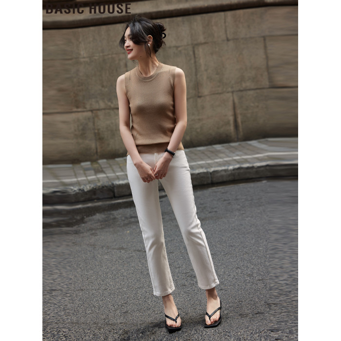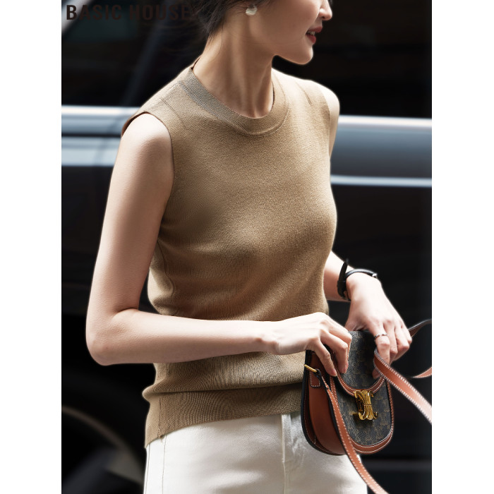 Basic House/百家好卡其色圓領吊帶背心女2025夏季新款無袖打底衫