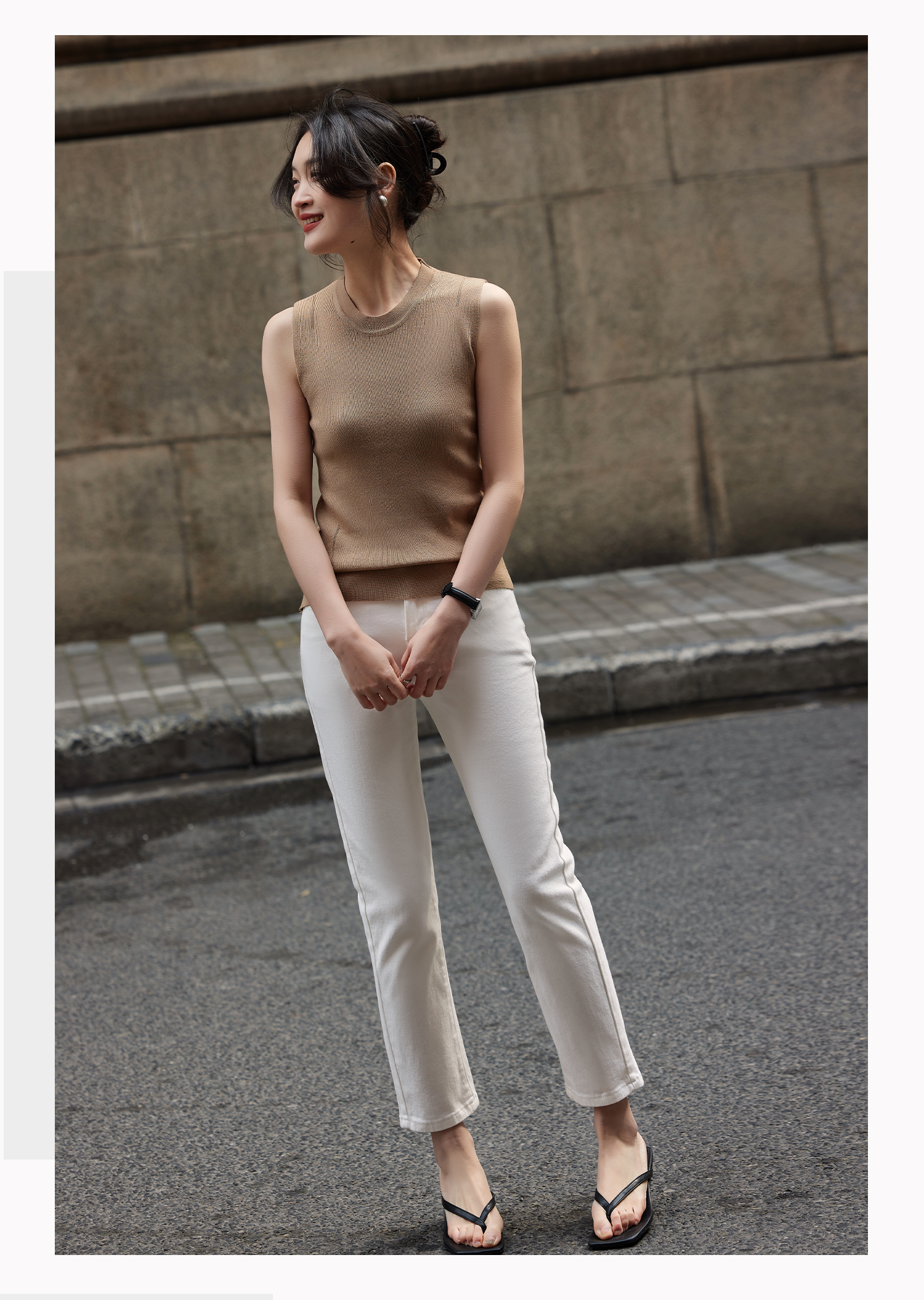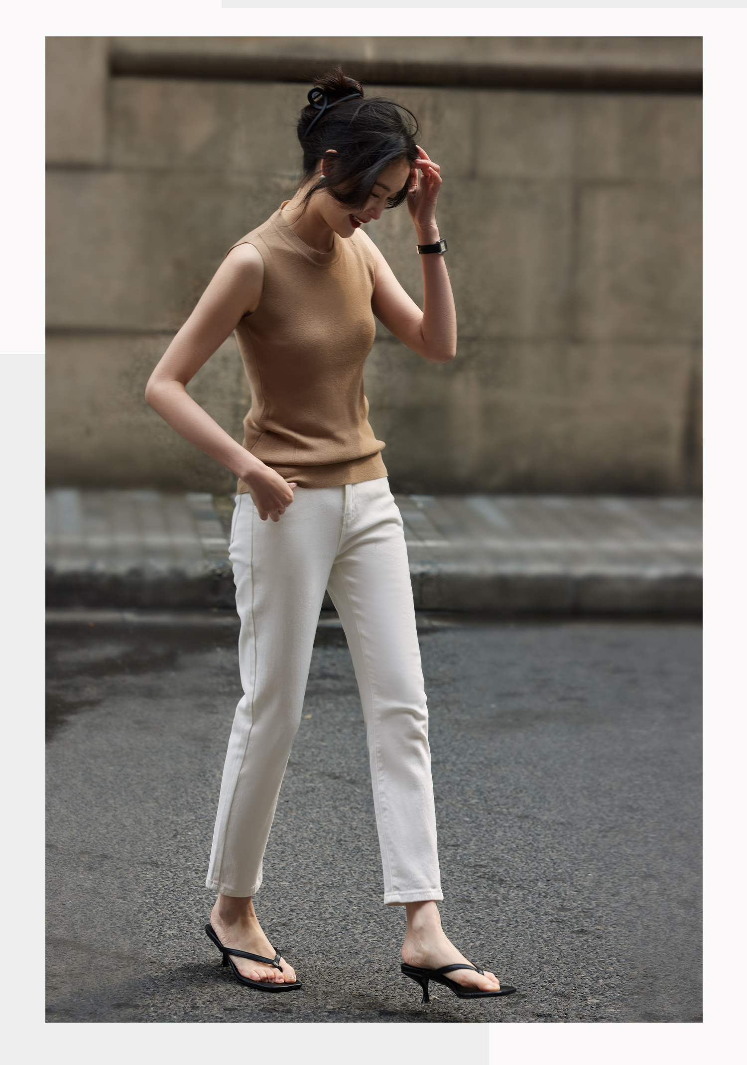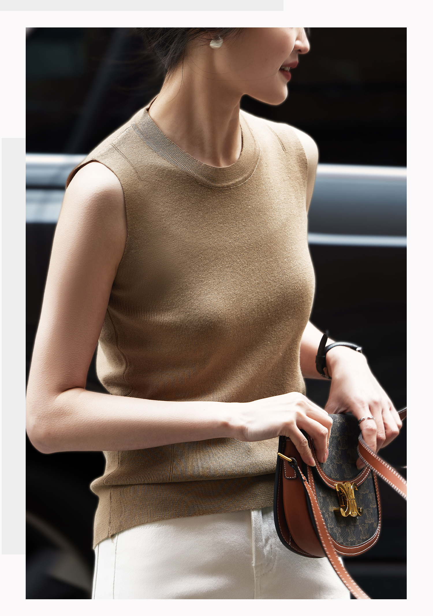 Basic House/百家好卡其色圓領吊帶背心女2025夏季新款無袖打底衫
