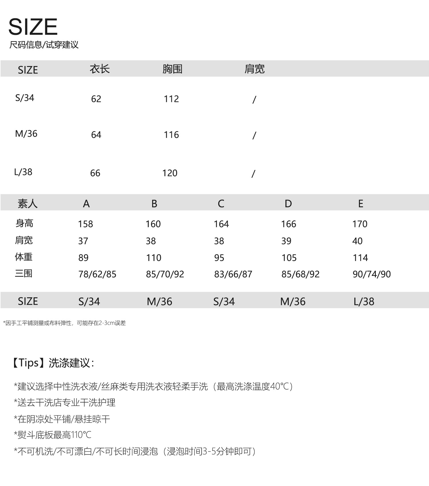 款式及尺寸: