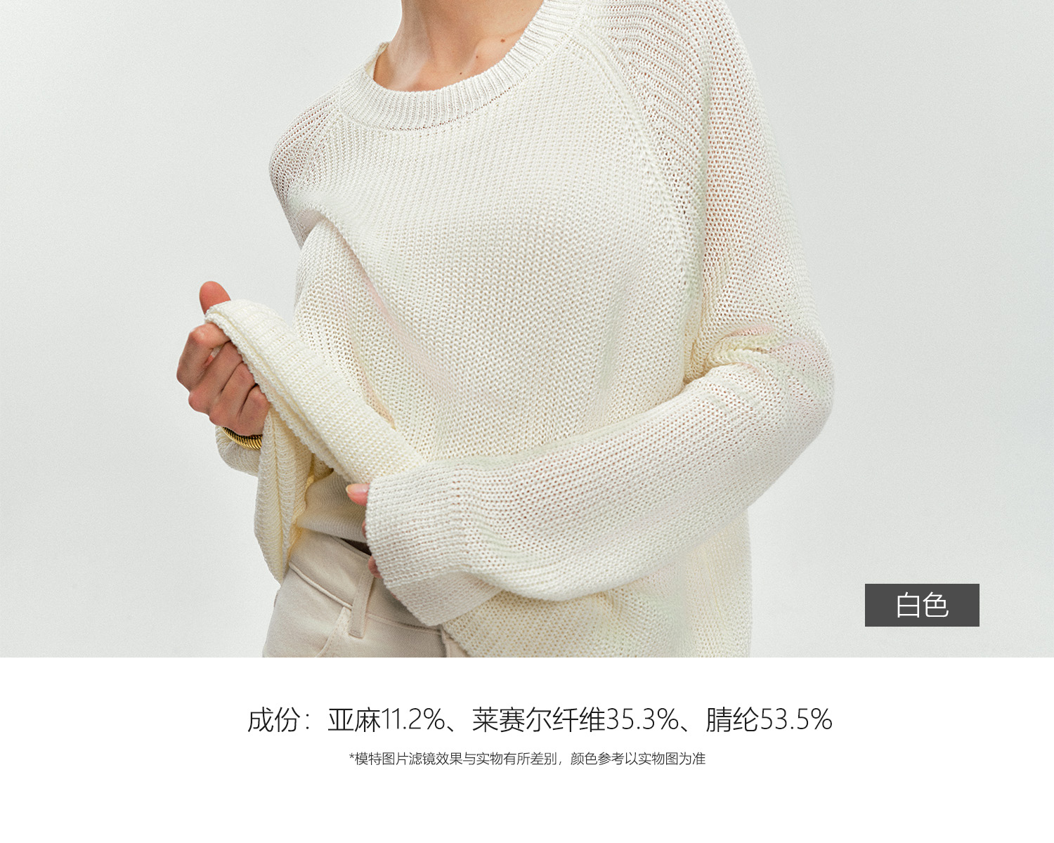 材質成分 聚丙烯腈纖維(腈綸)53.5% 萊賽爾纖維(萊賽爾)35.3% 亞麻11.2%
