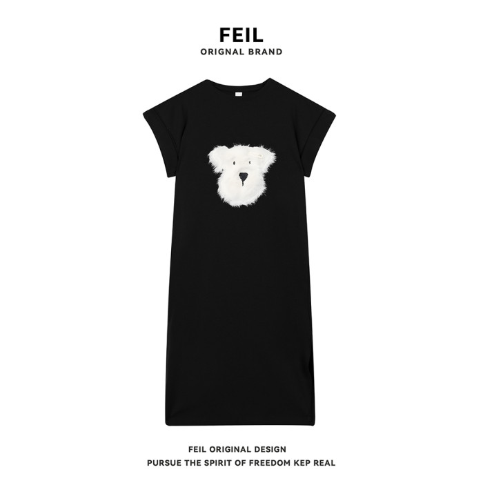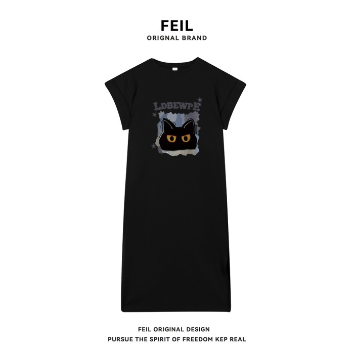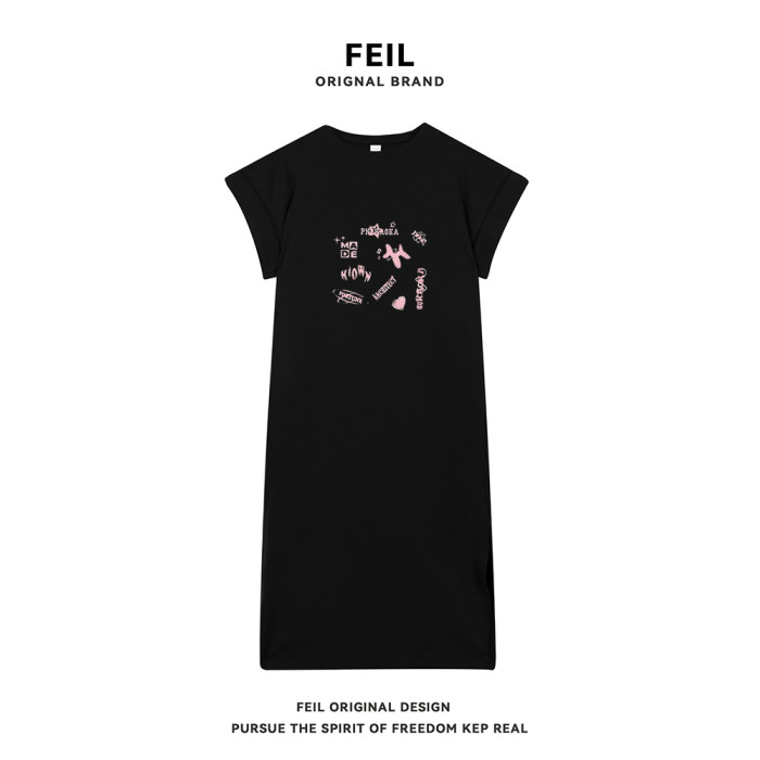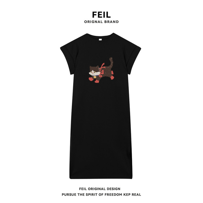 2025夏季新款可愛印花短袖t恤裙女寬松顯瘦過膝休閒長裙子連衣裙