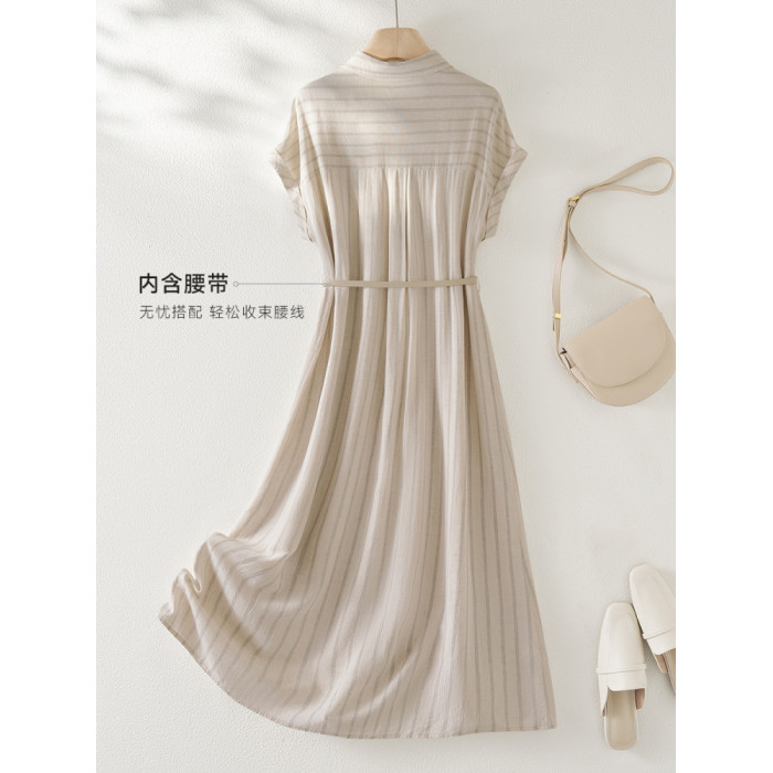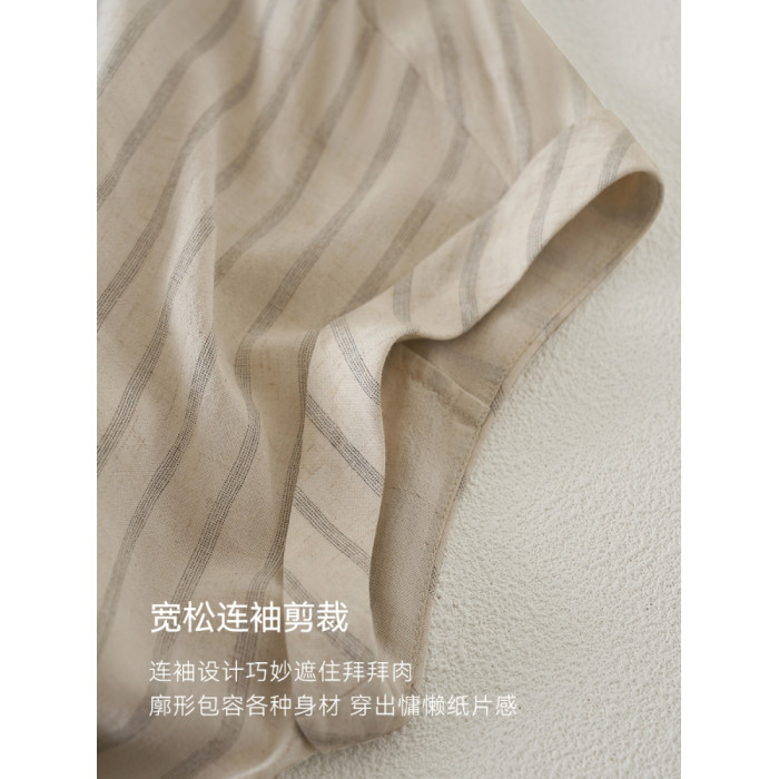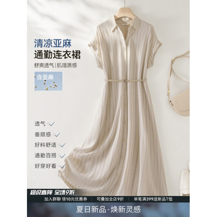 IHIMI海謐老錢風輕薄亞麻條紋連衣裙女2025夏季高級感時尚裙子
