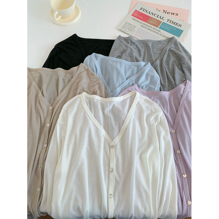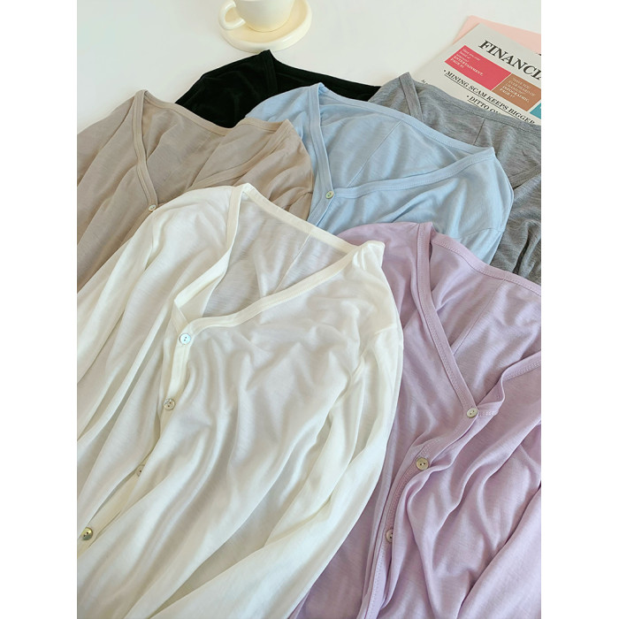 薄款天絲柔軟透氣防曬衣針織開衫女 夏季外搭長袖寬松垂感打底衫