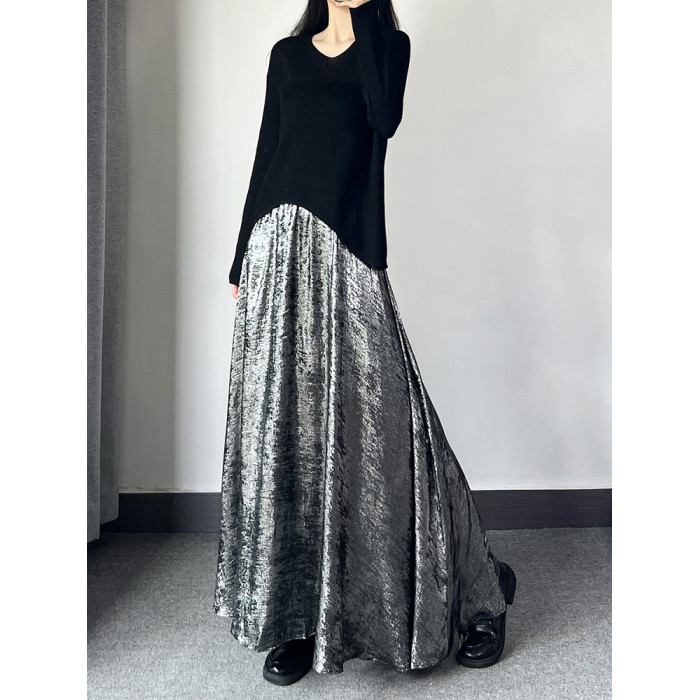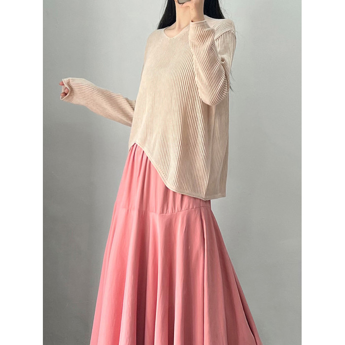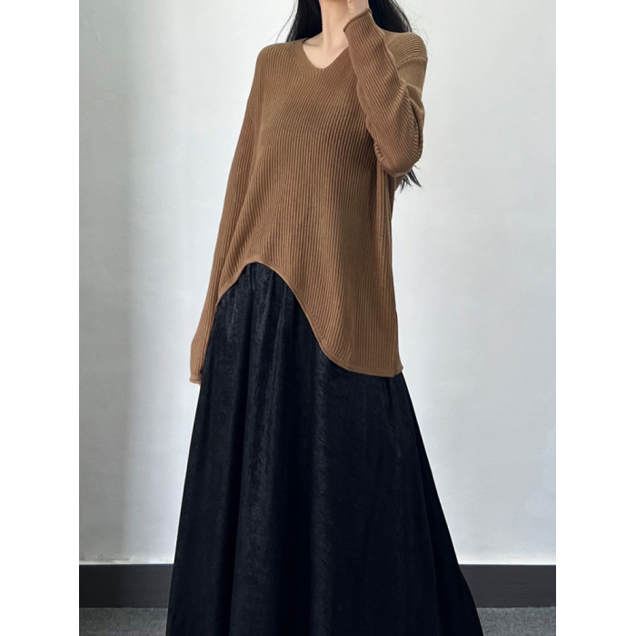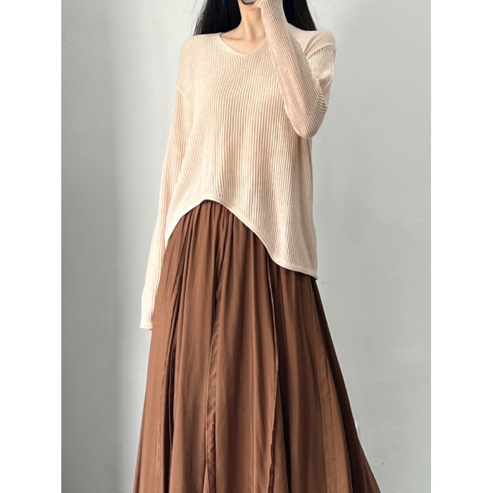 設計感軟糯不規則針織上衣毛衣女春秋薄款復古V領長袖寬松打底衫