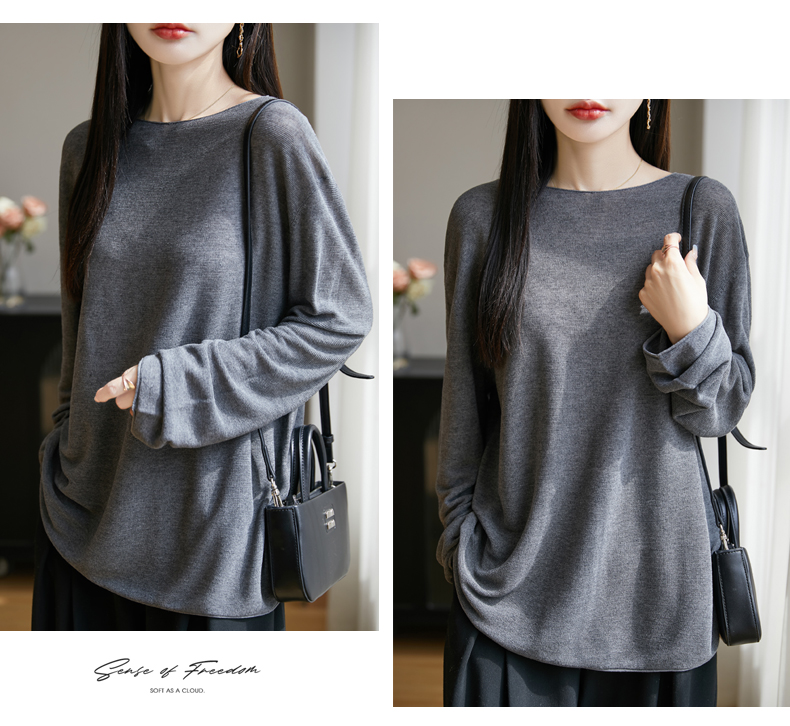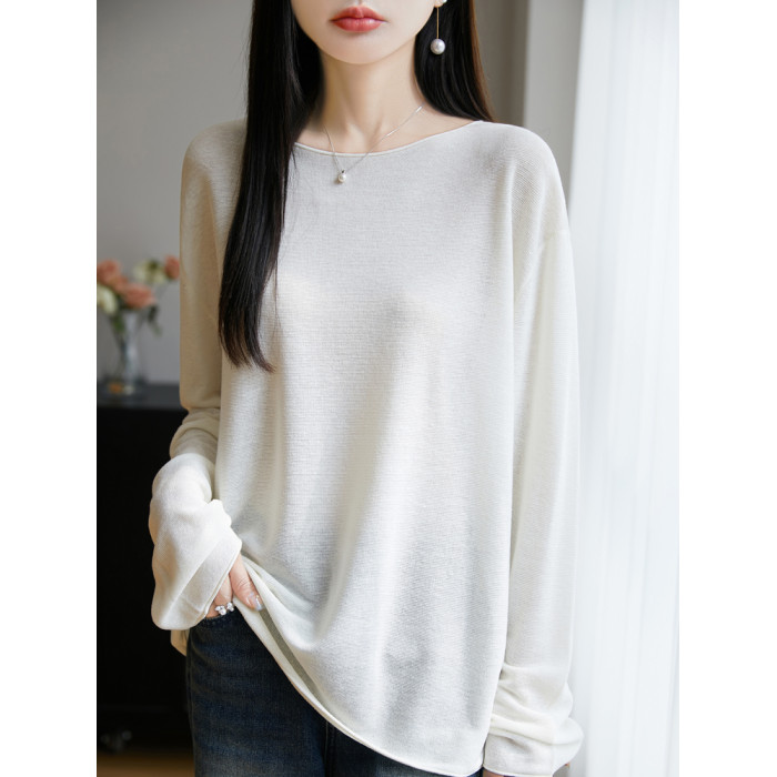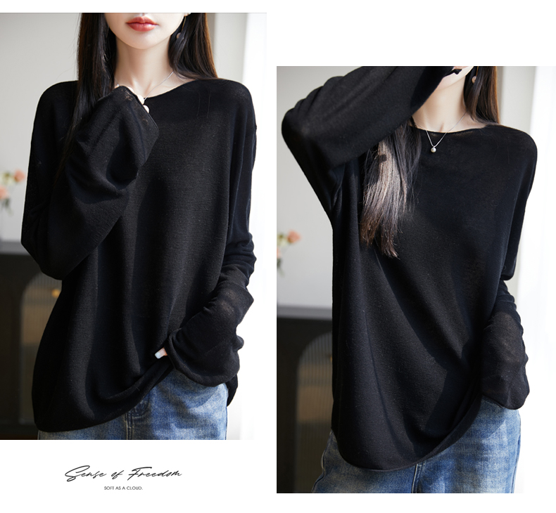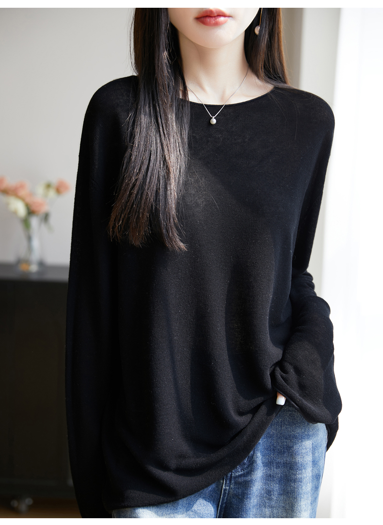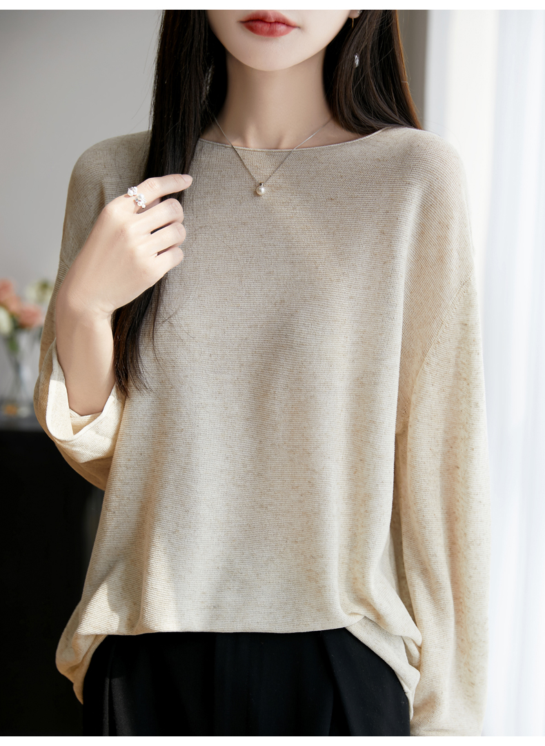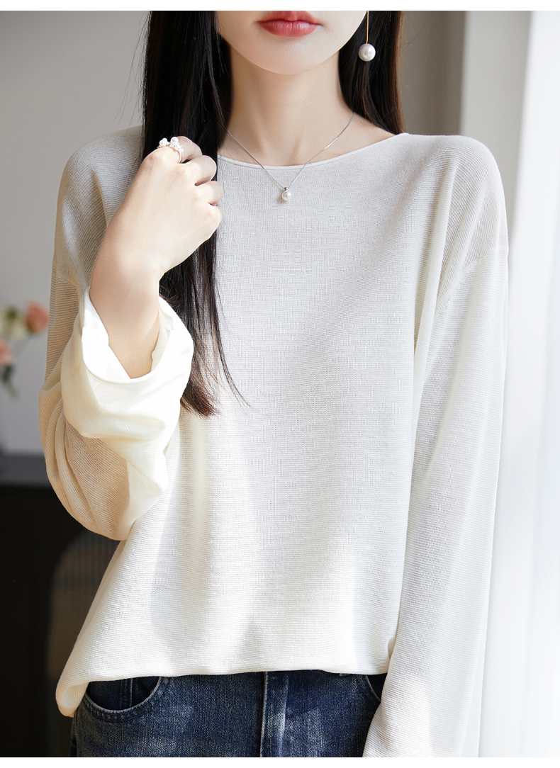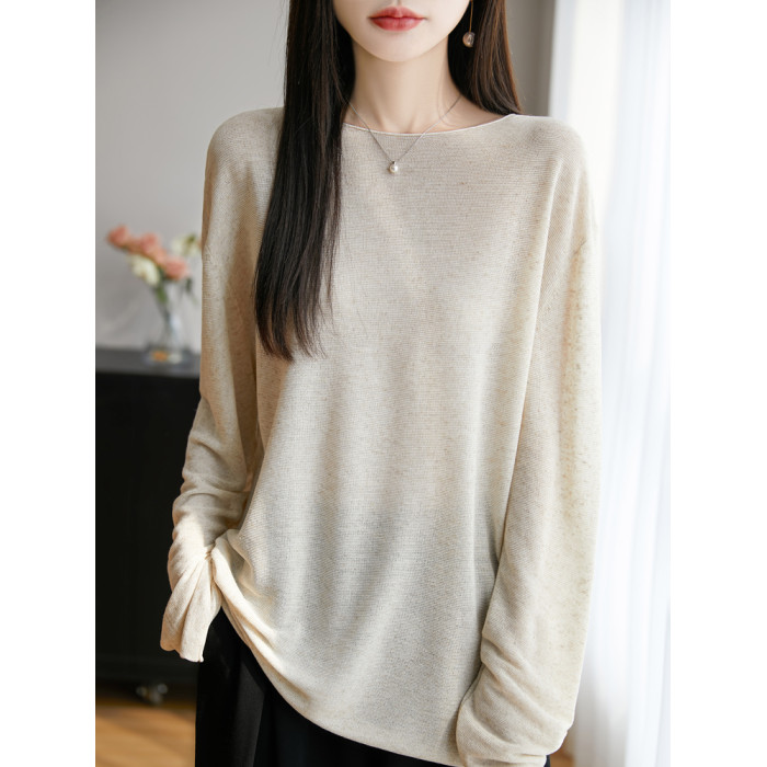 春夏一字領天絲針織打底衫女寬松外穿慵懶風長袖上衣亞麻防曬罩衫