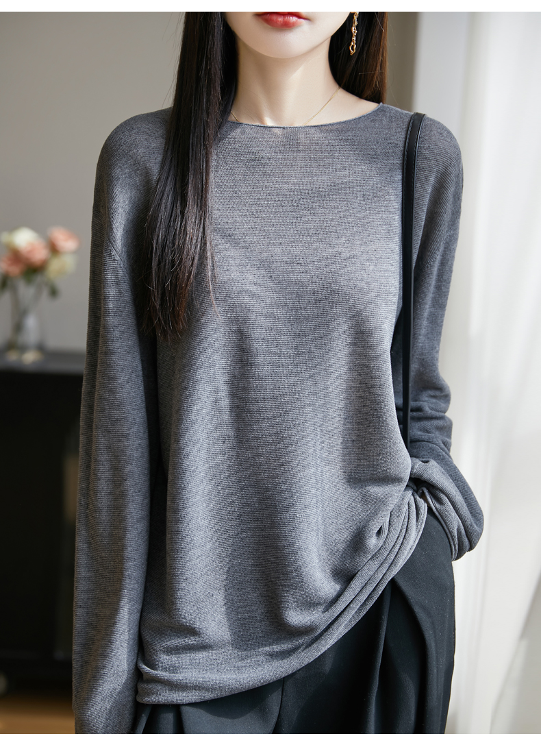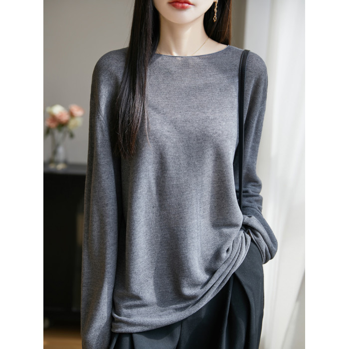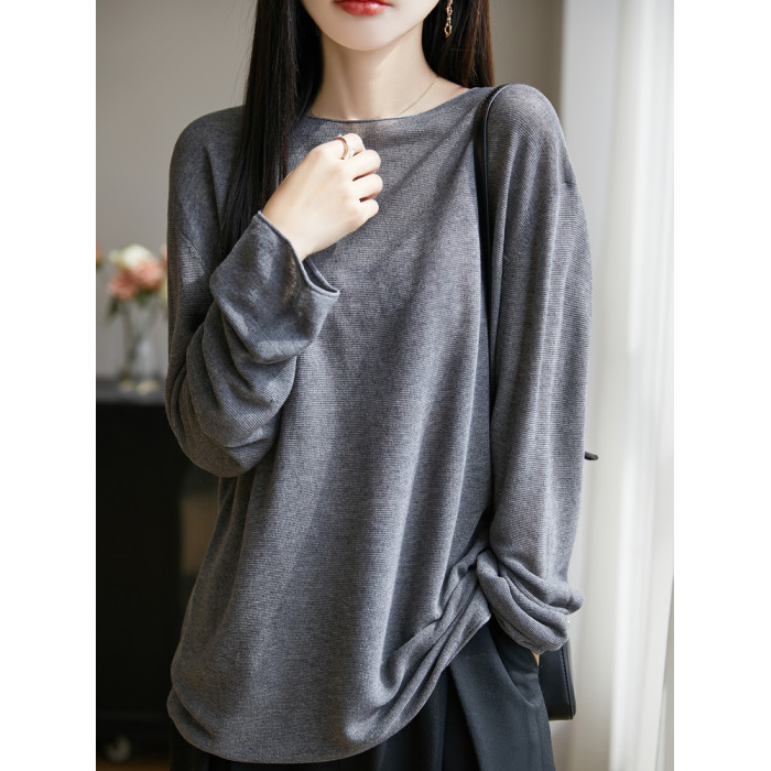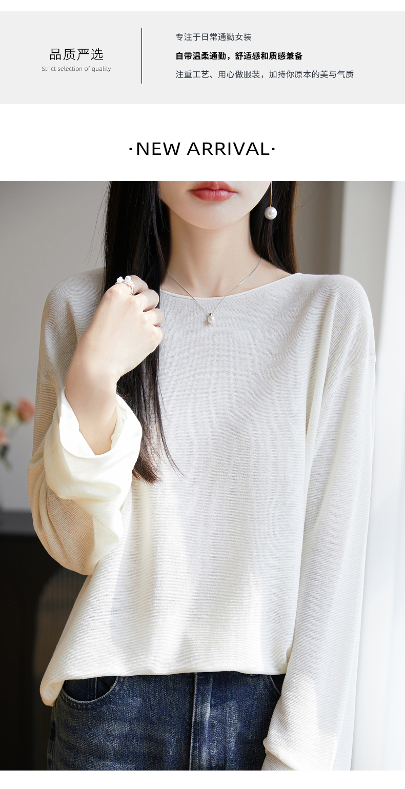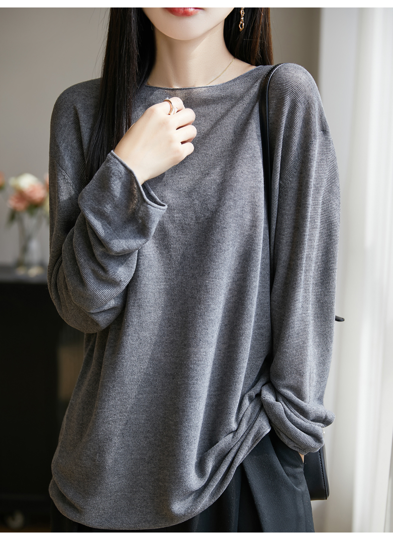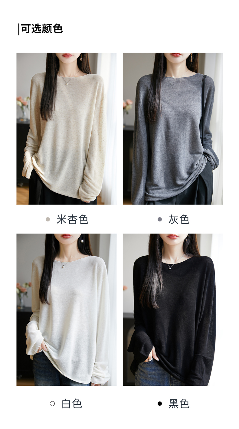 春夏一字領天絲針織打底衫女寬松外穿慵懶風長袖上衣亞麻防曬罩衫