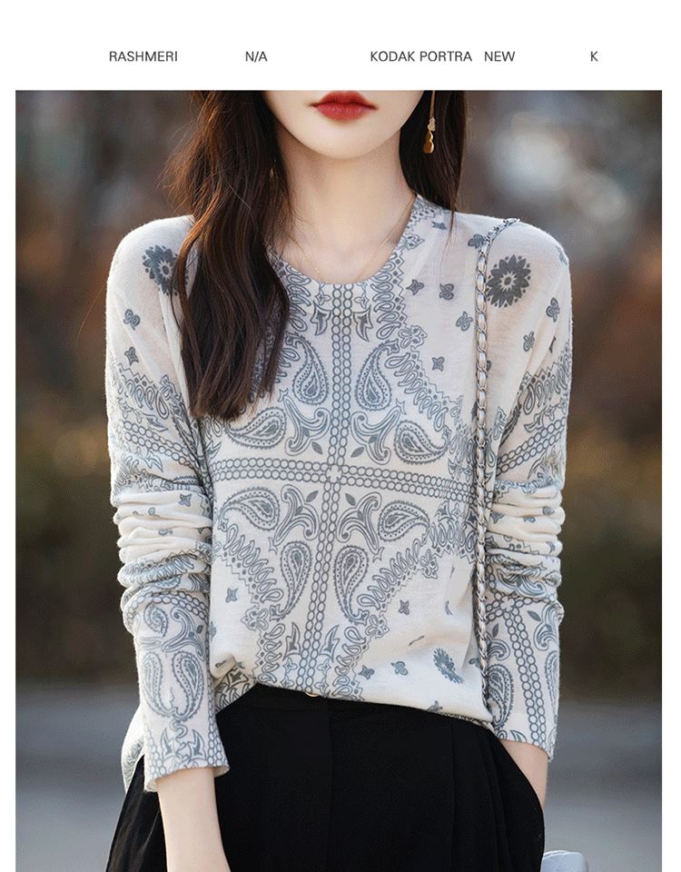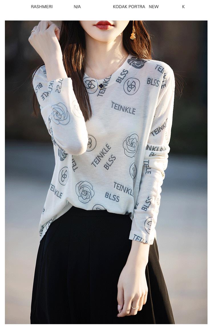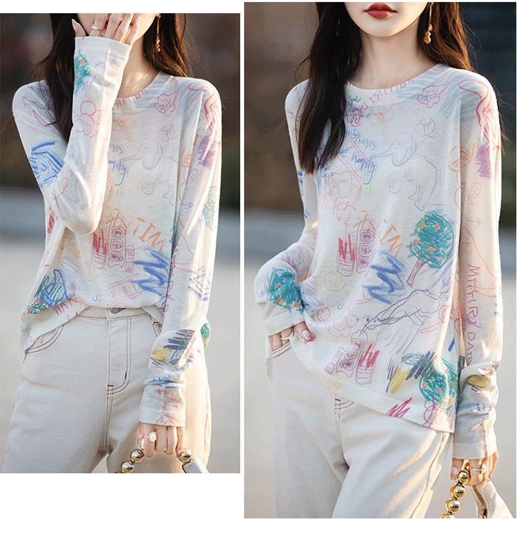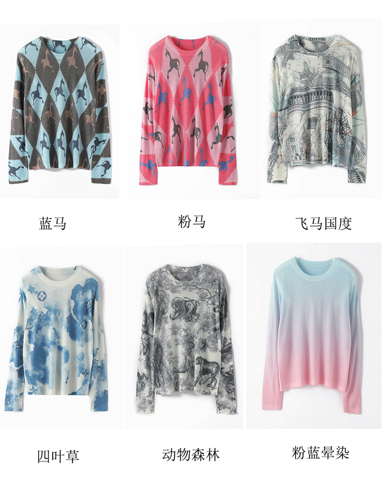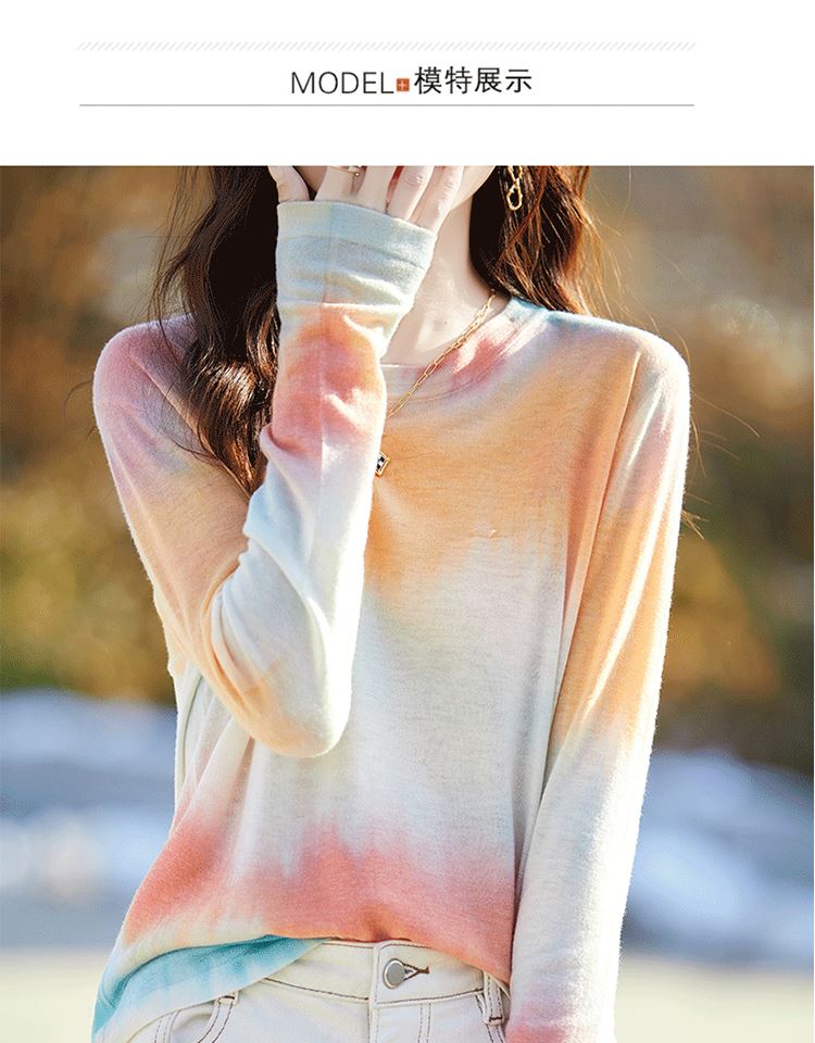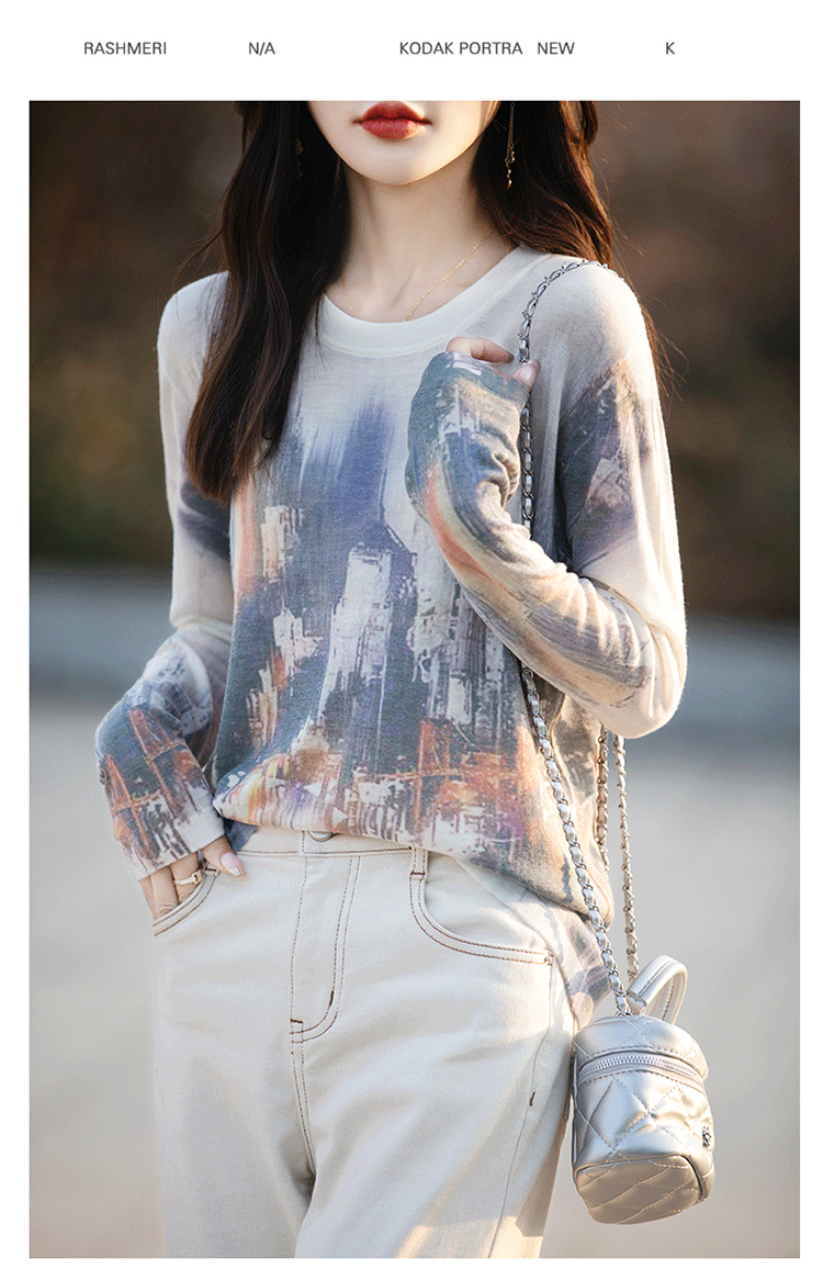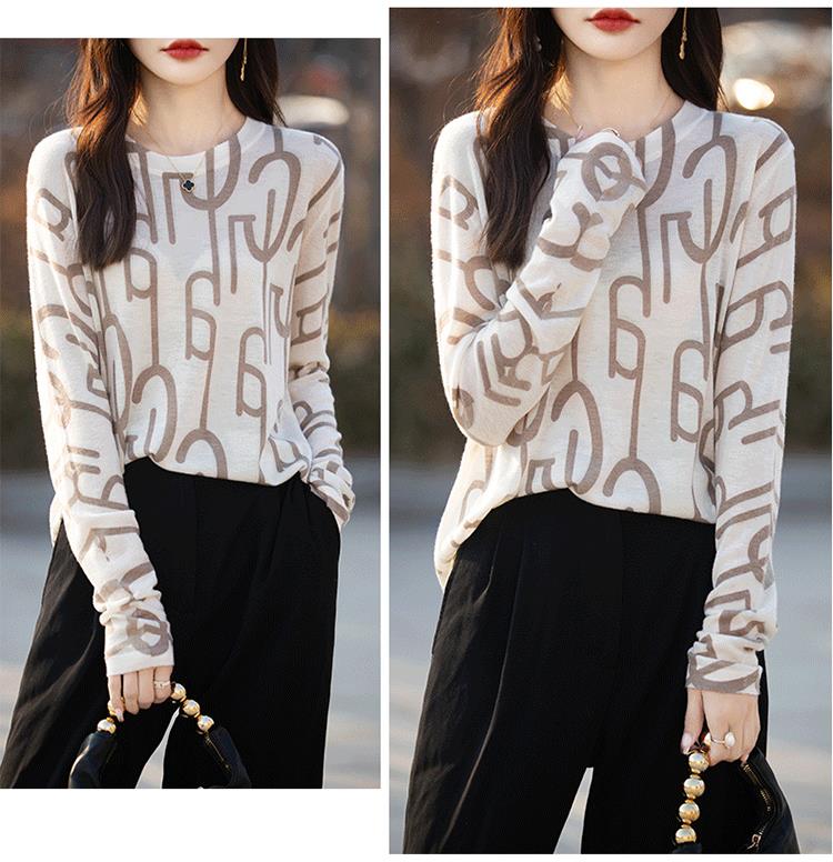 薄如蟬翼精紡超細水溶性羊毛水墨畫圓領寬松薄款打底衫