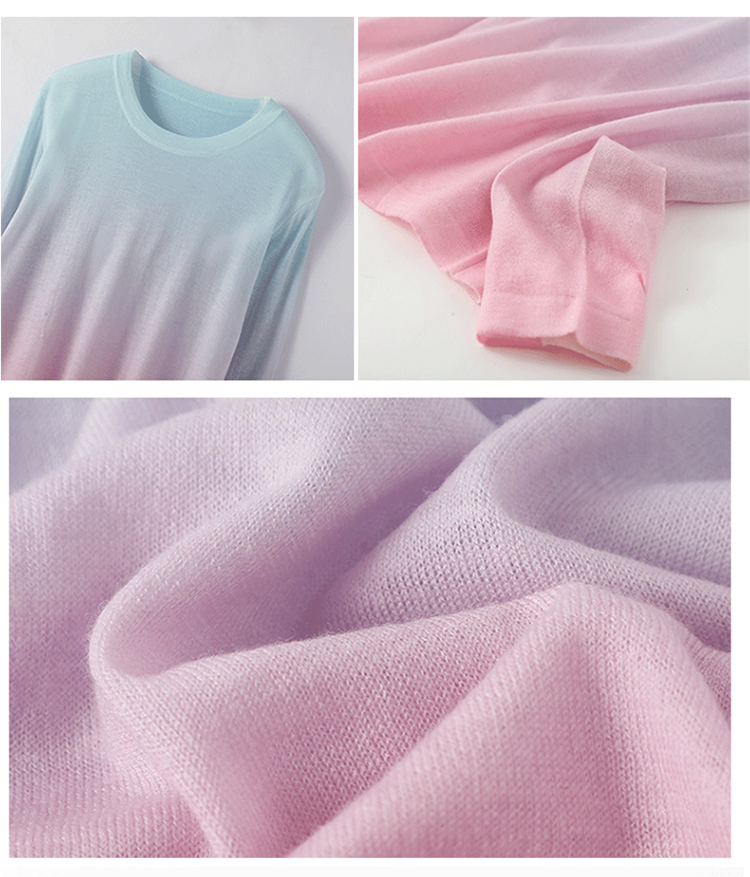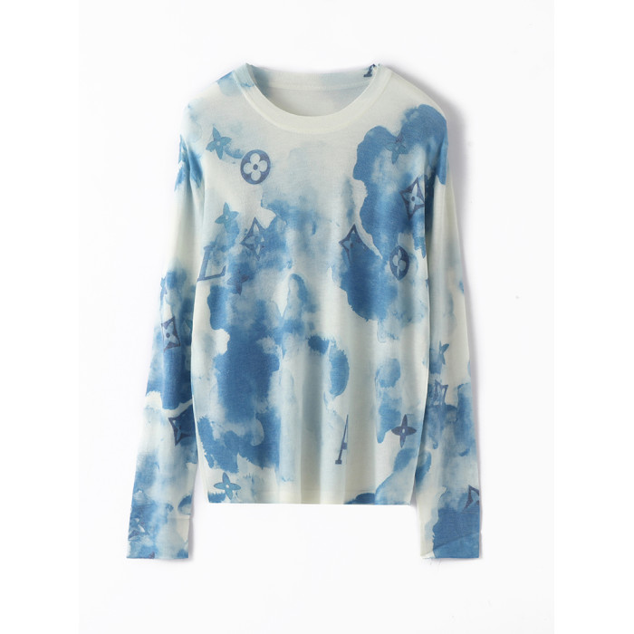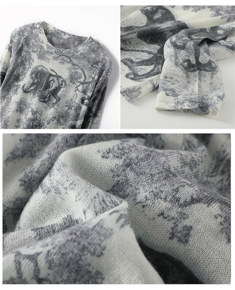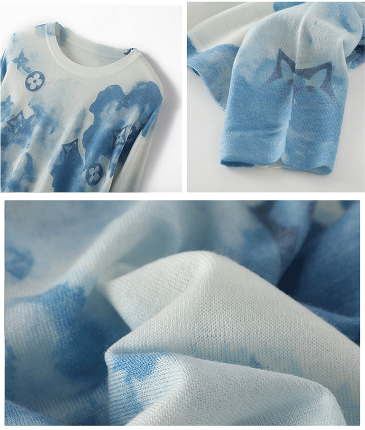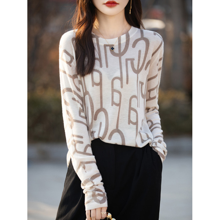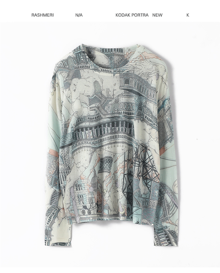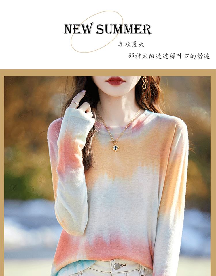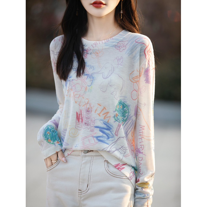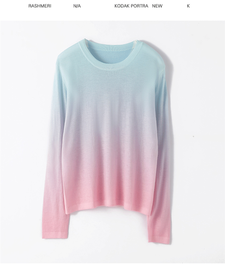 薄如蟬翼精紡超細水溶性羊毛水墨畫圓領寬松薄款打底衫