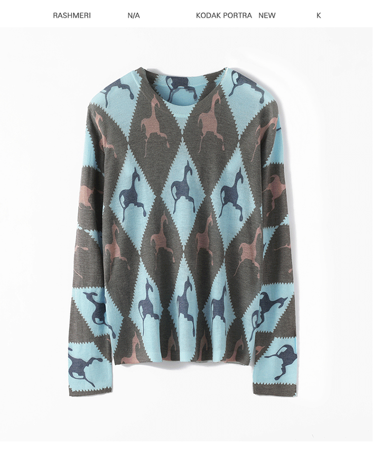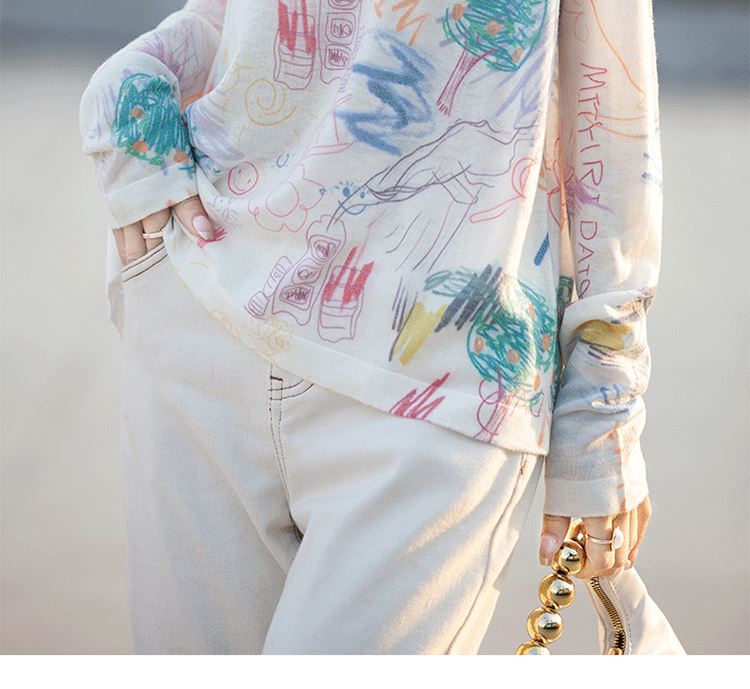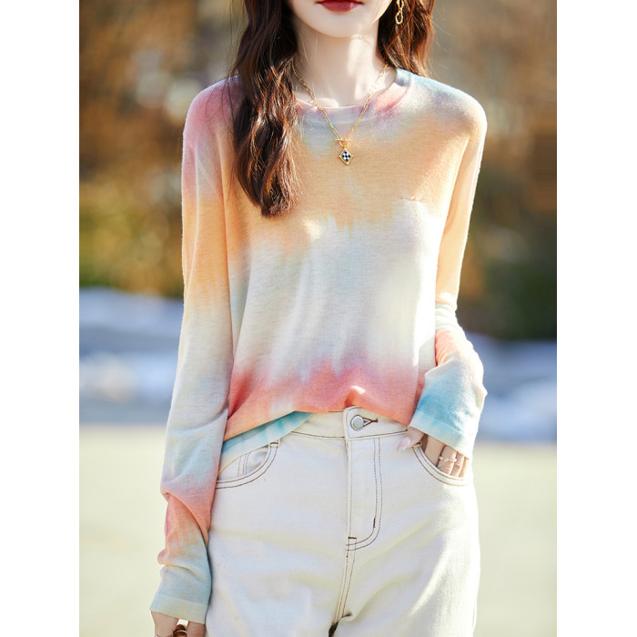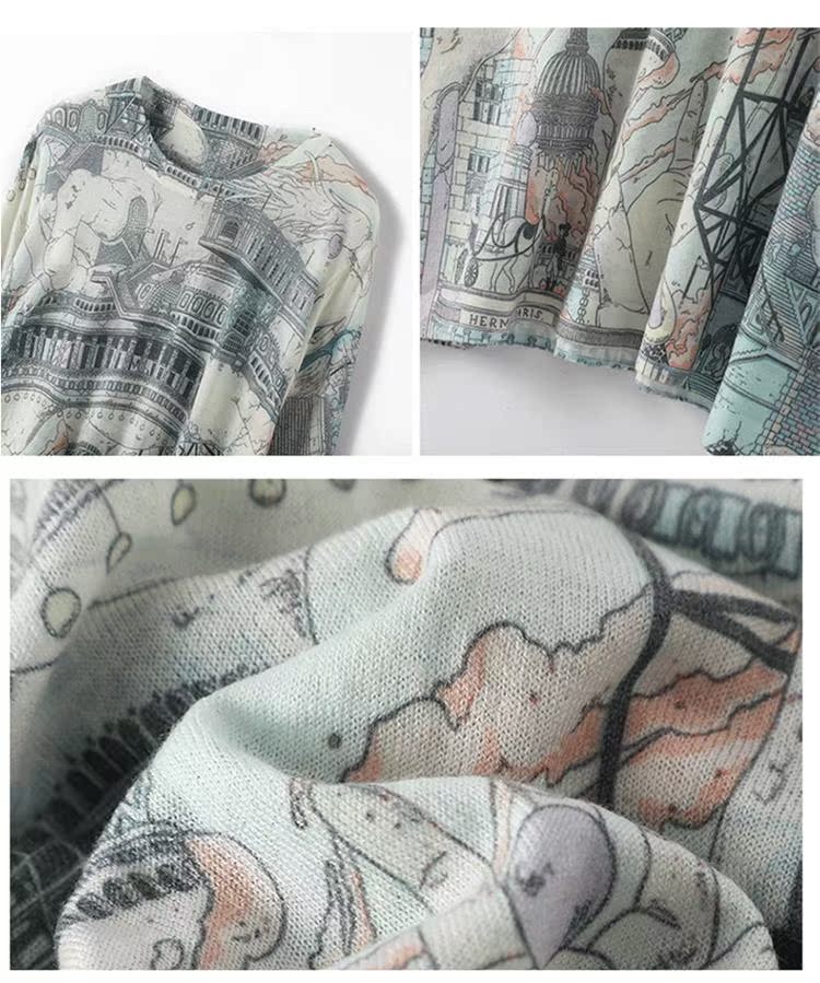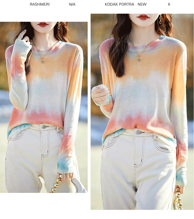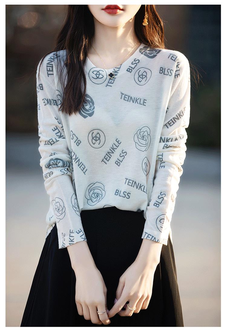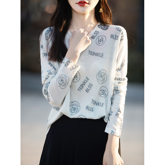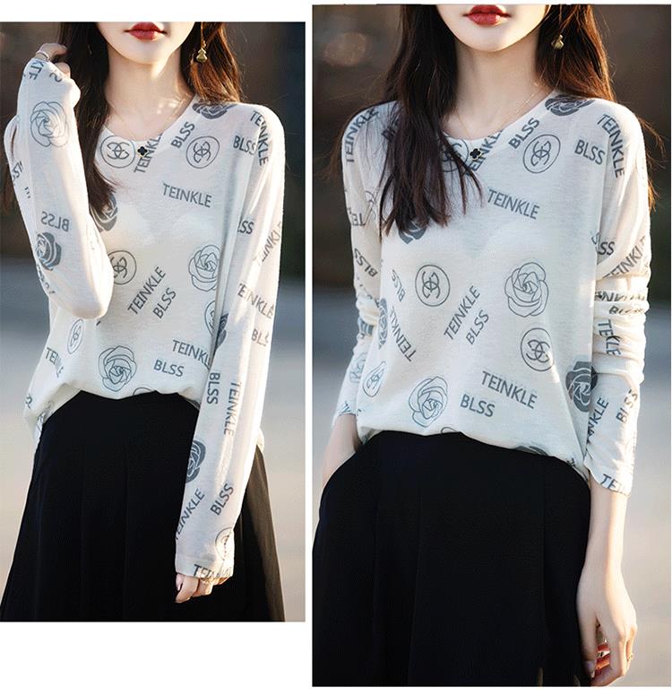 薄如蟬翼精紡超細水溶性羊毛水墨畫圓領寬松薄款打底衫