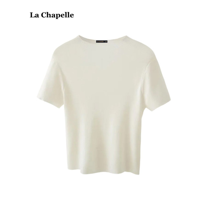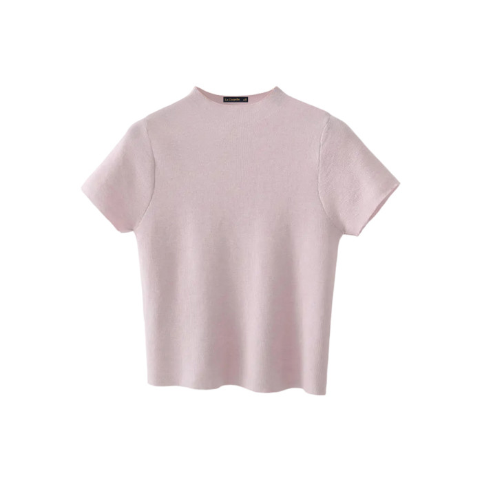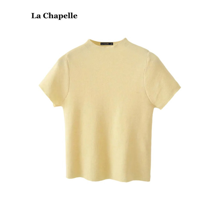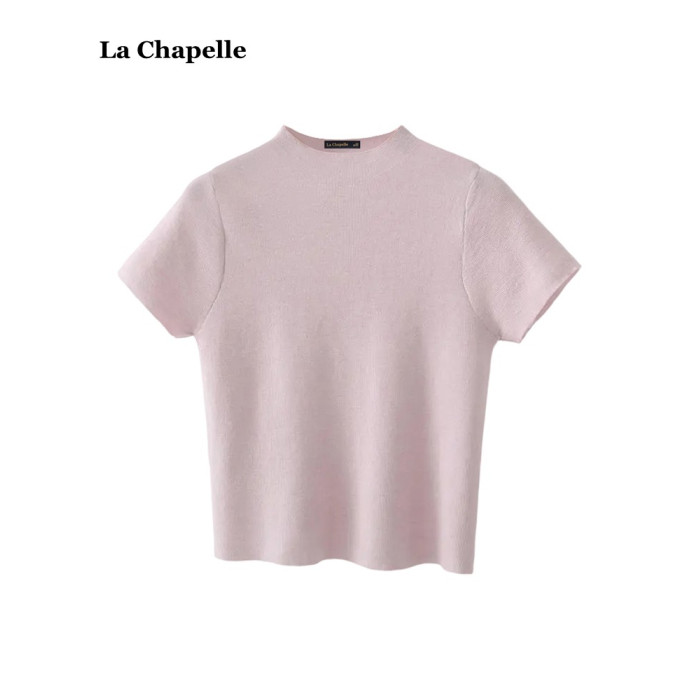拉夏貝爾/La Chapelle半高領短袖針織衫上衣女春夏純色打底衫上衣