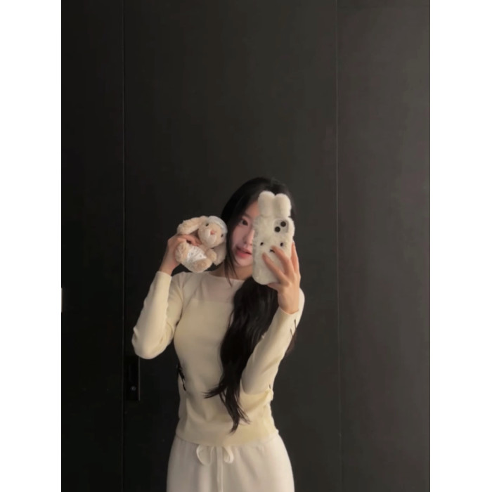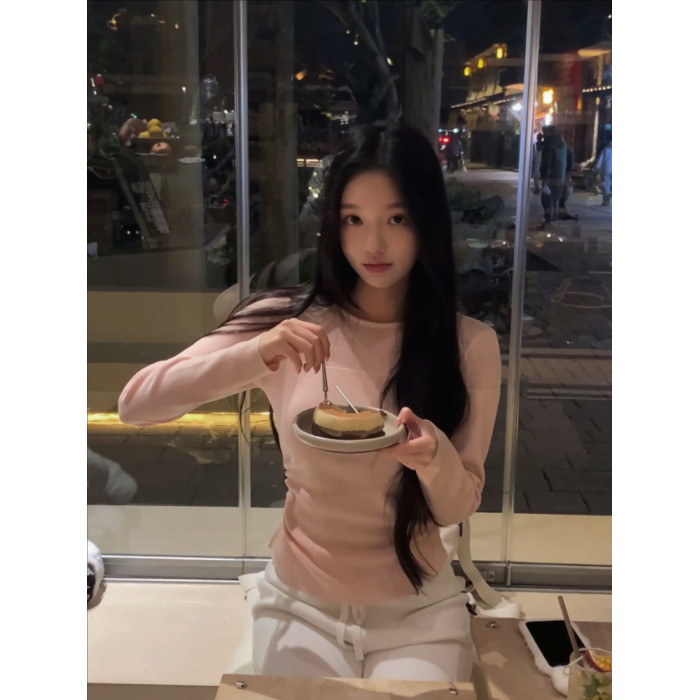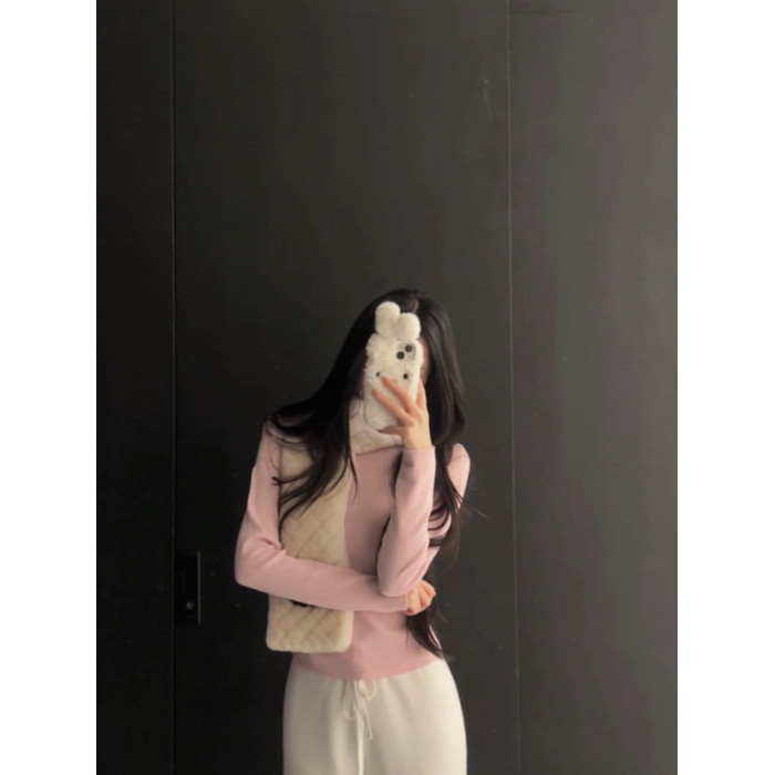 鹿辣辣【暖暖打底衫】秋冬bi入 拼接軟糯打底針織衫 修身內搭上衣