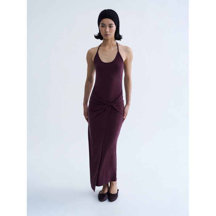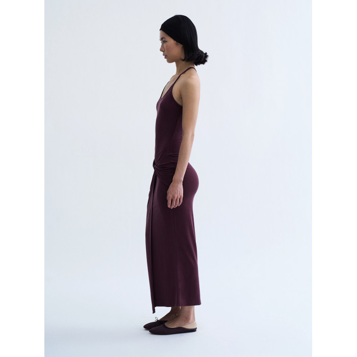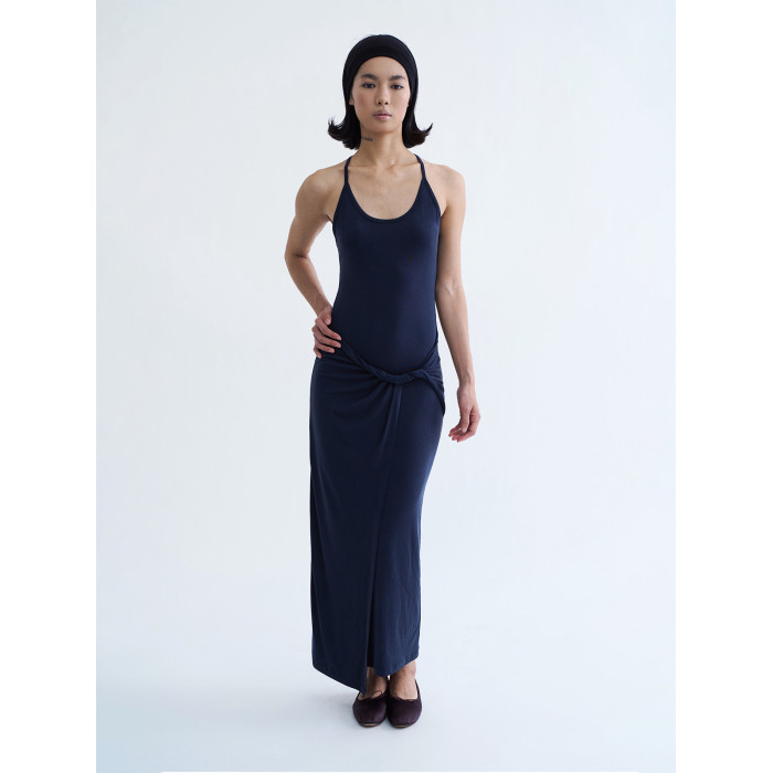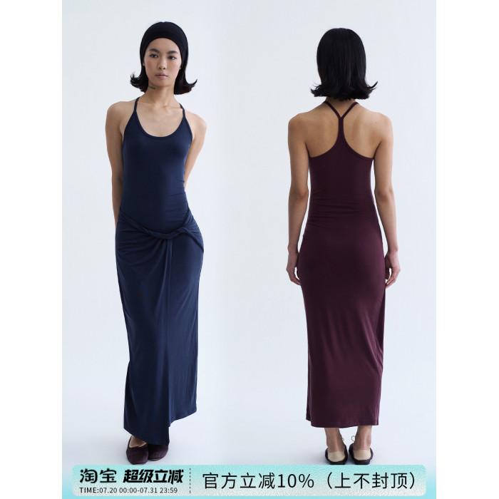 aolol"柔霧冰肌感"設計感紐結吊帶連衣裙子女夏無袖修身顯瘦長裙