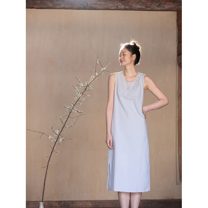 牧衣遊原創 60支純棉手綉無袖背心連衣裙女 紫霞【不會員折】