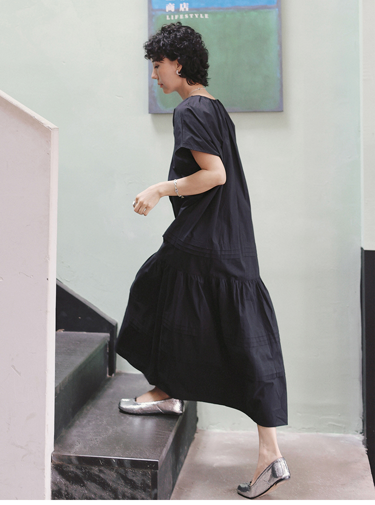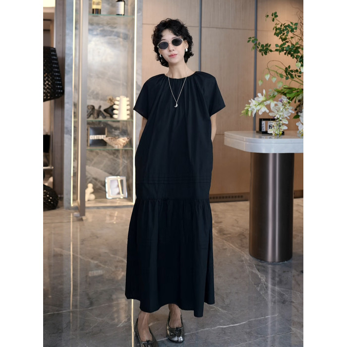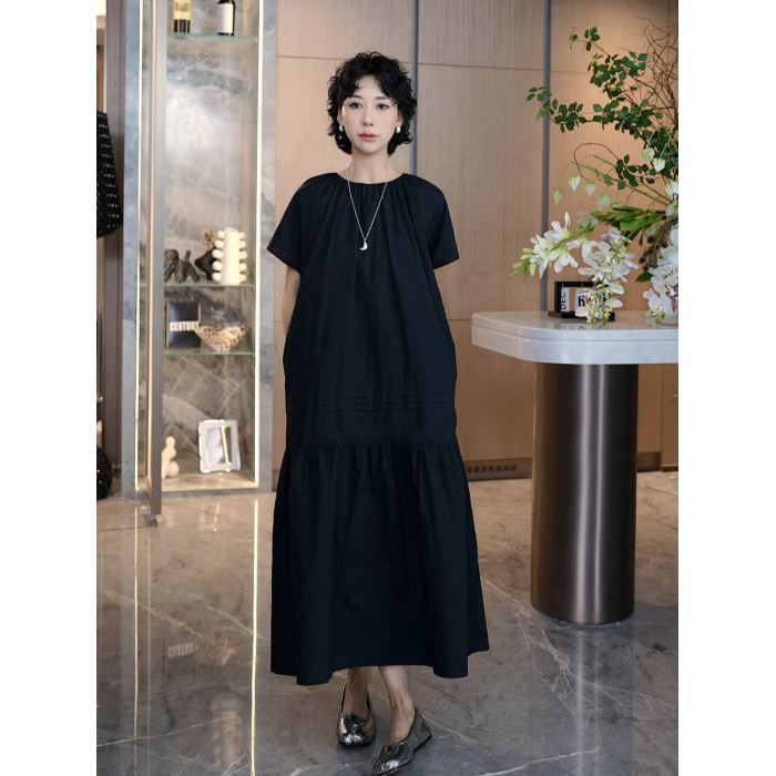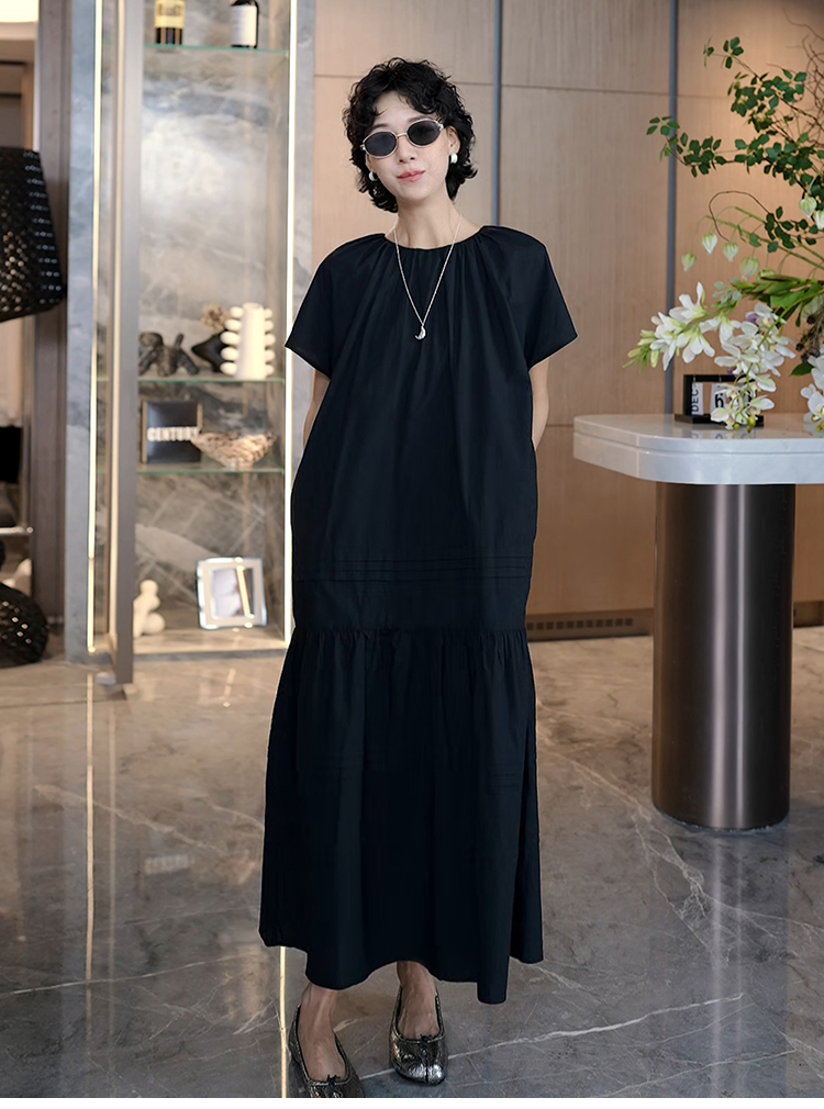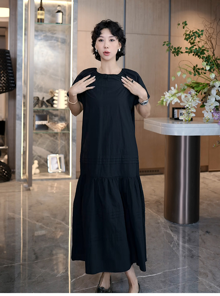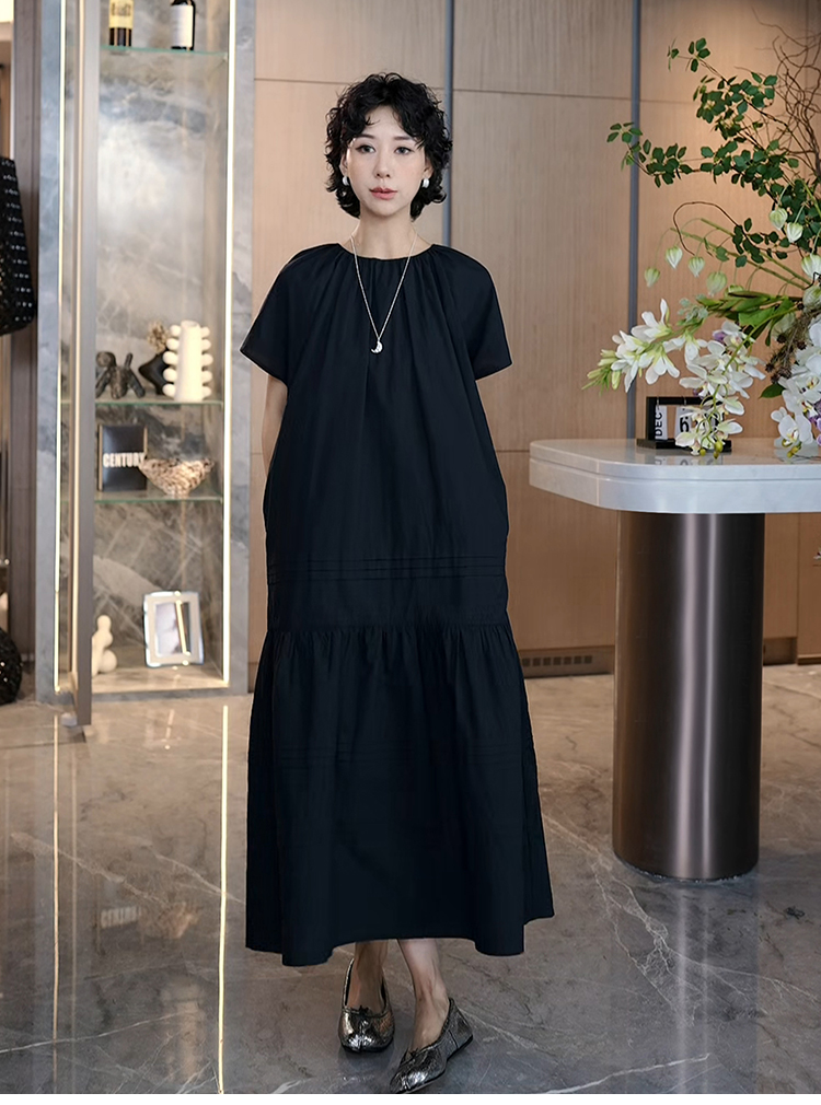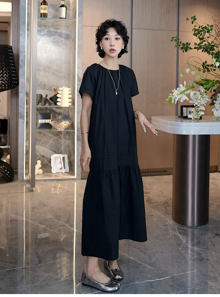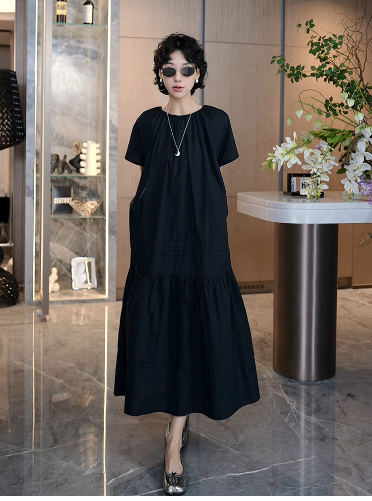 TT設計師【人魚灣】時尚高級感寬松黑色長款a字連衣裙女夏季新款