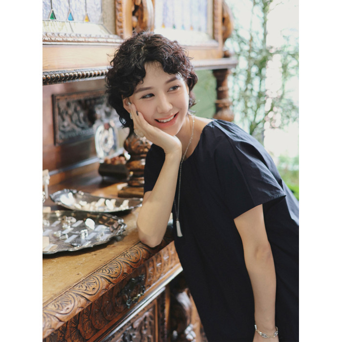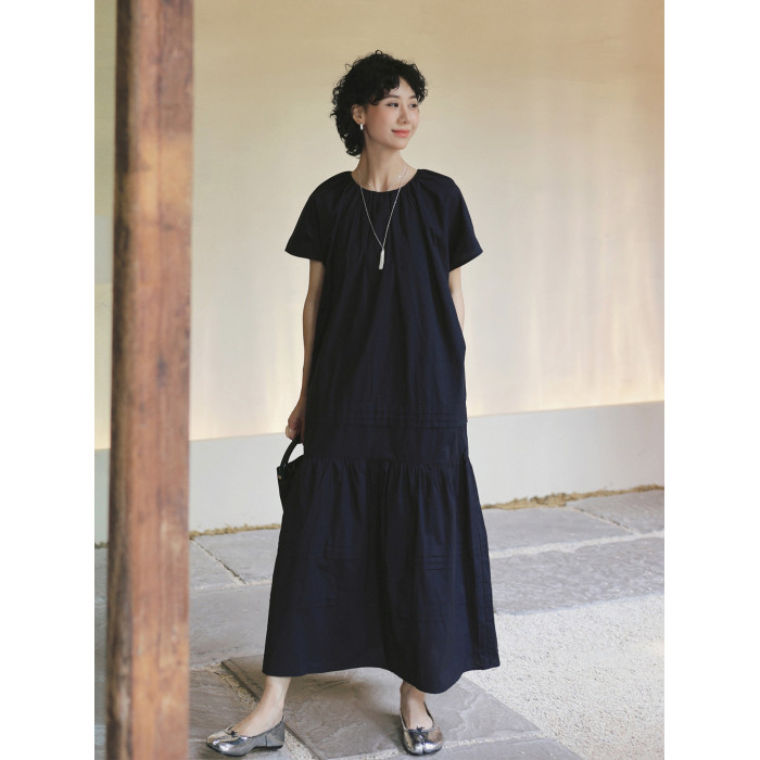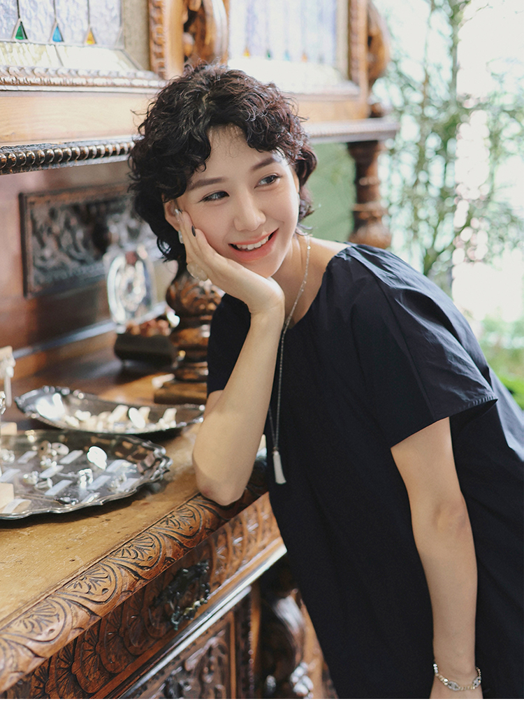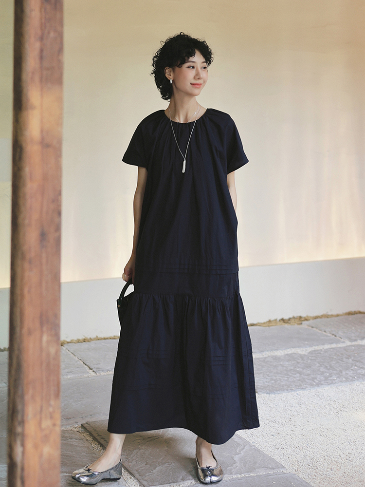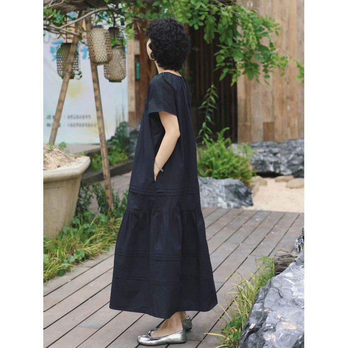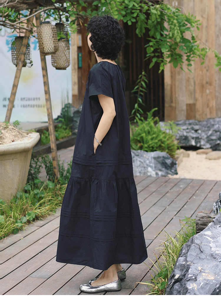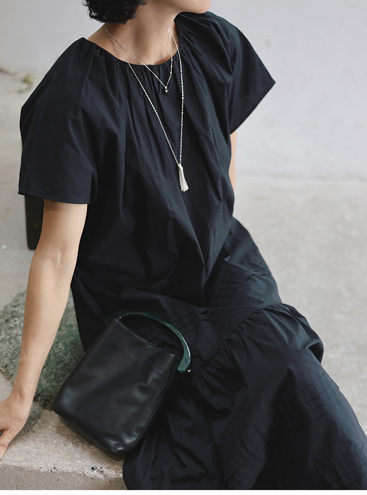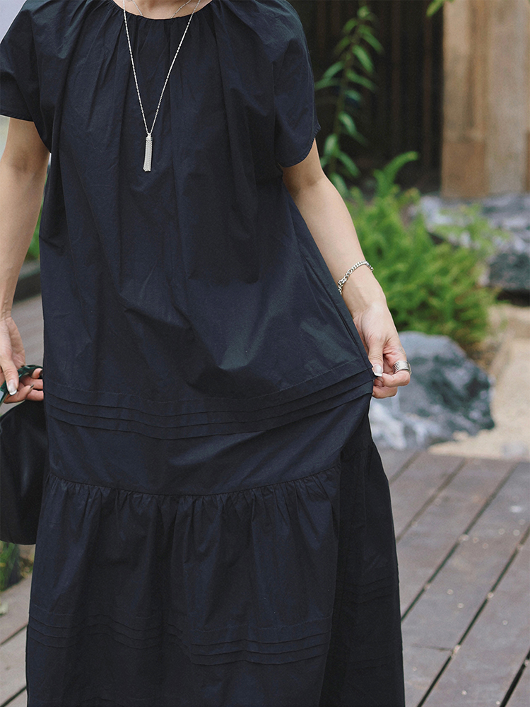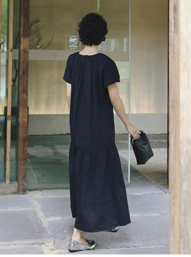 TT設計師【人魚灣】時尚高級感寬松黑色長款a字連衣裙女夏季新款