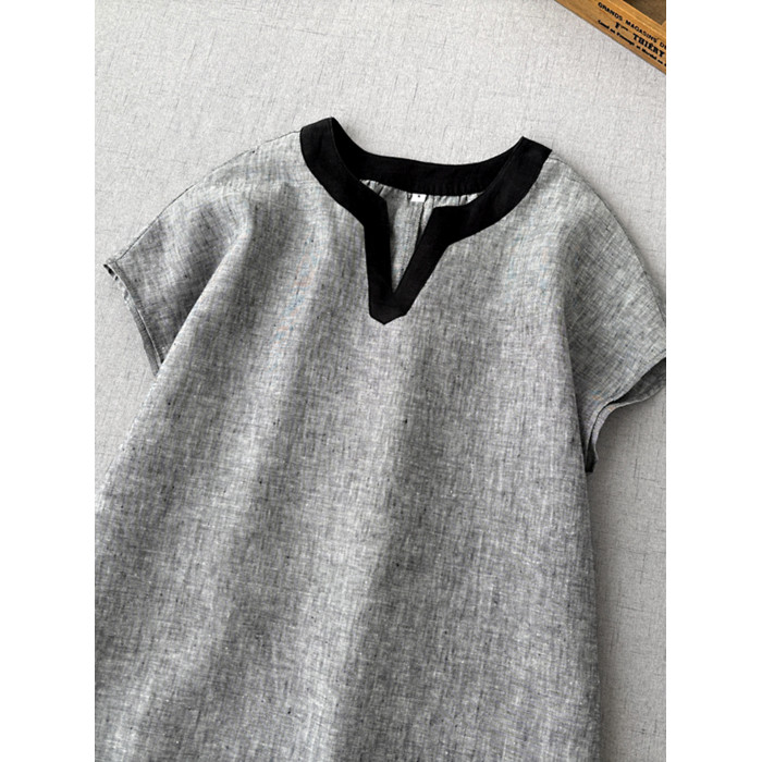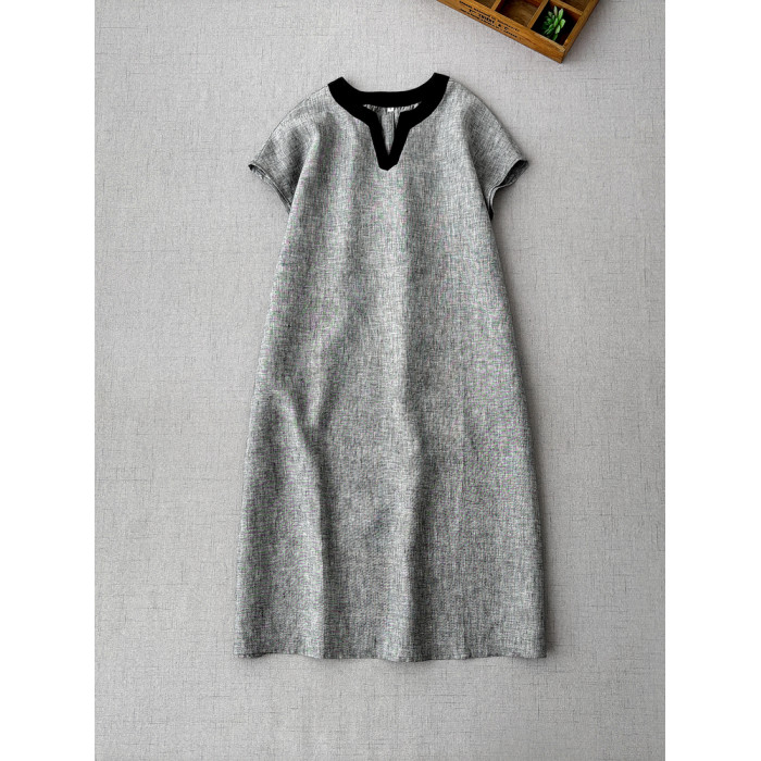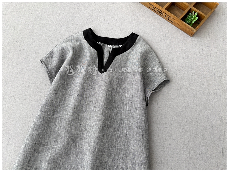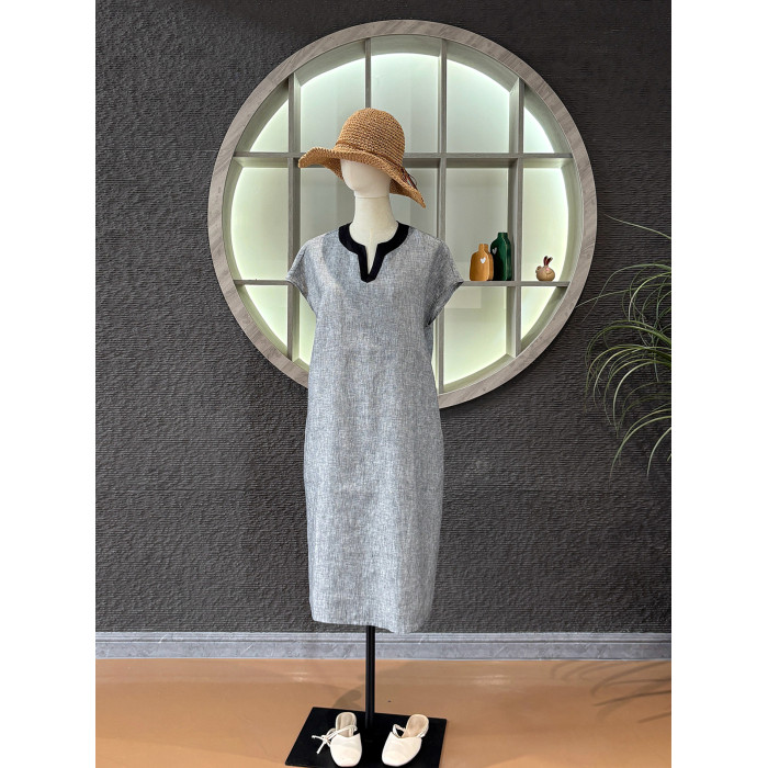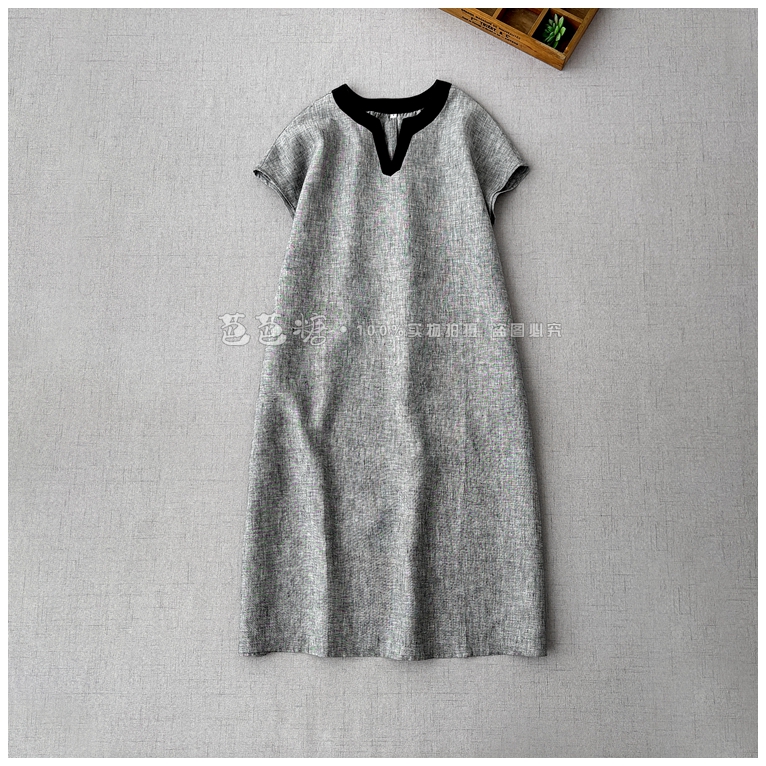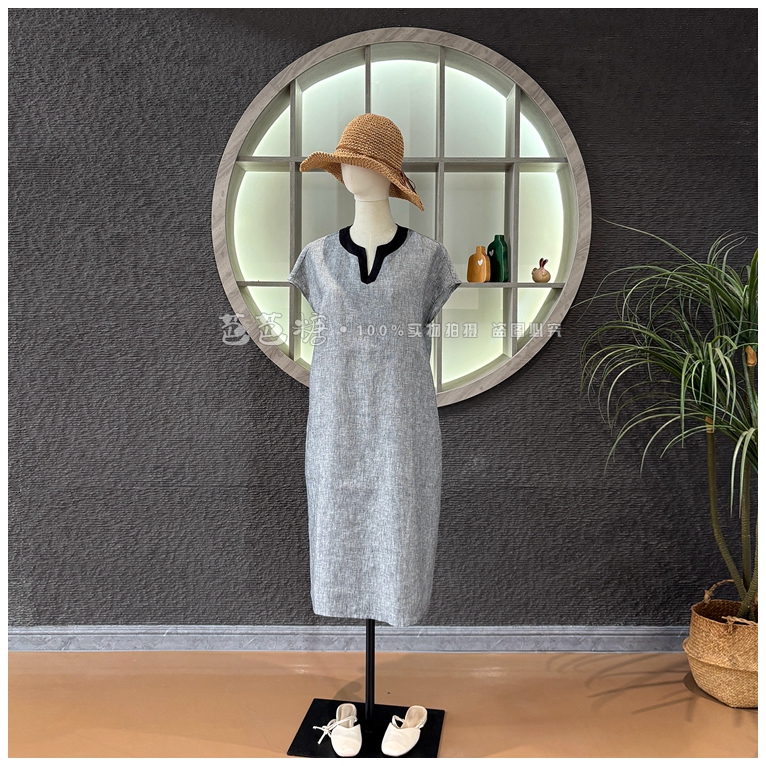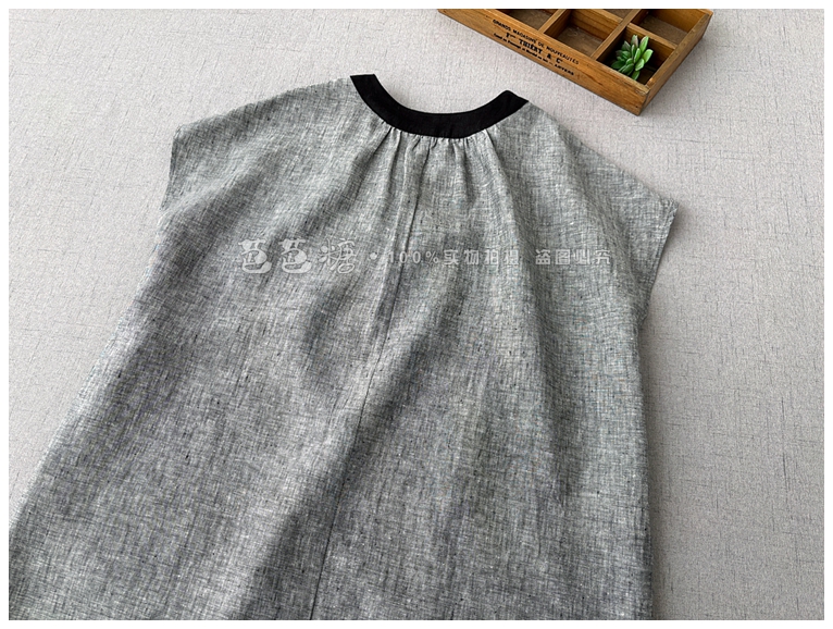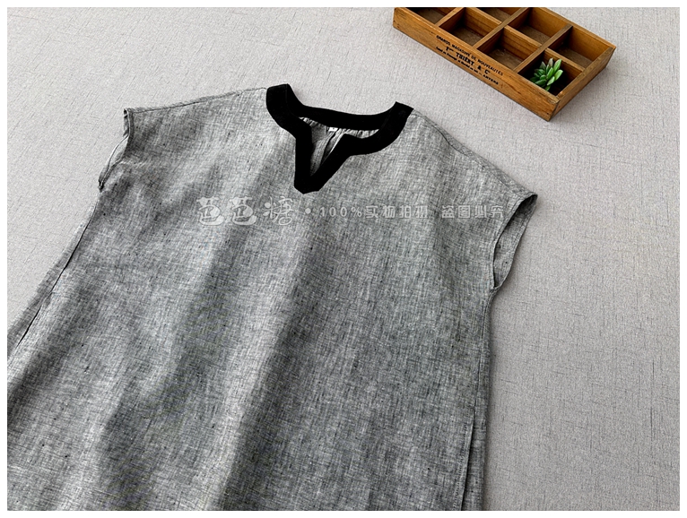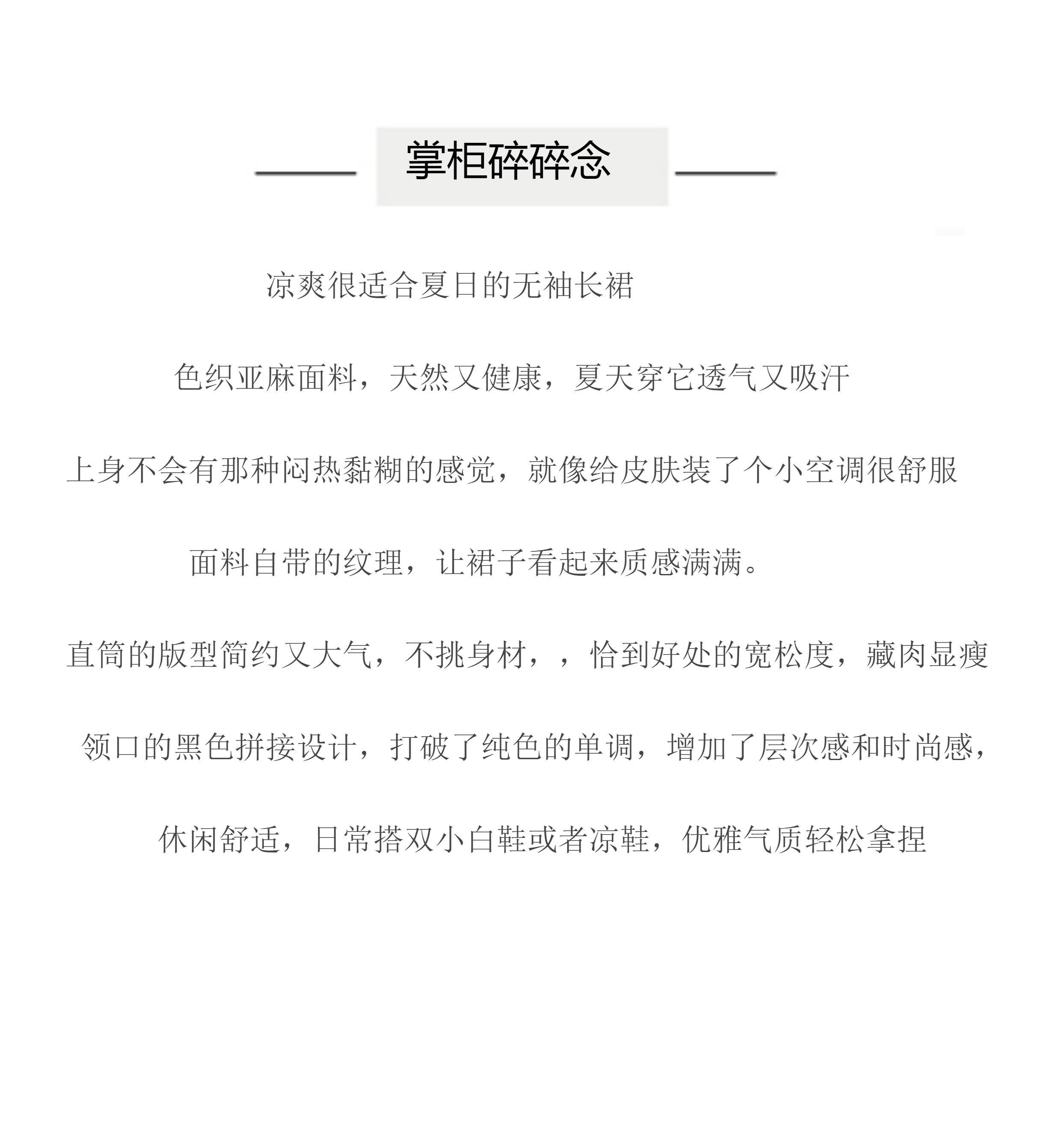 文藝女裝寬松休閒無袖連衣裙夏季新品高級氣質色織亞麻直筒長裙