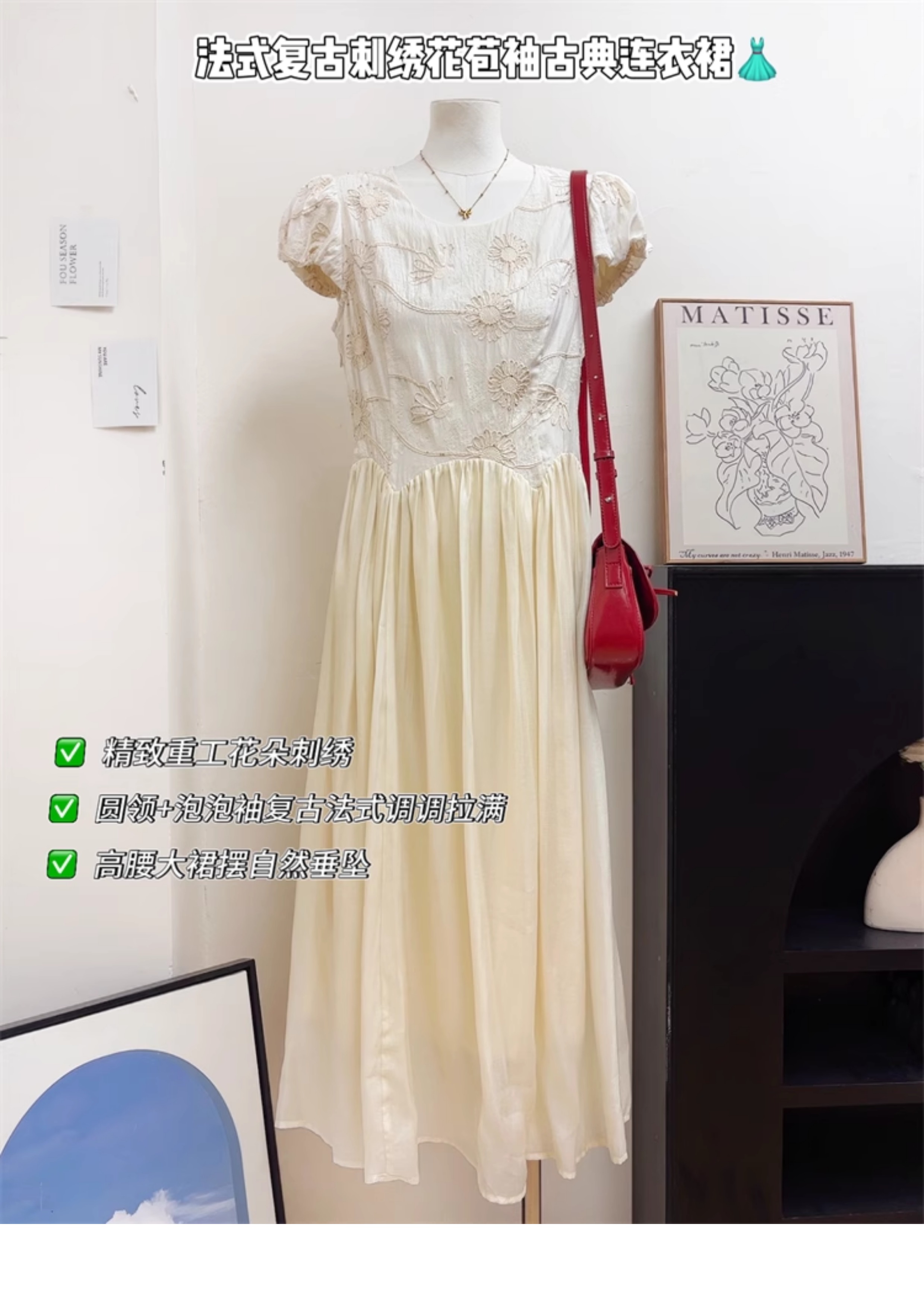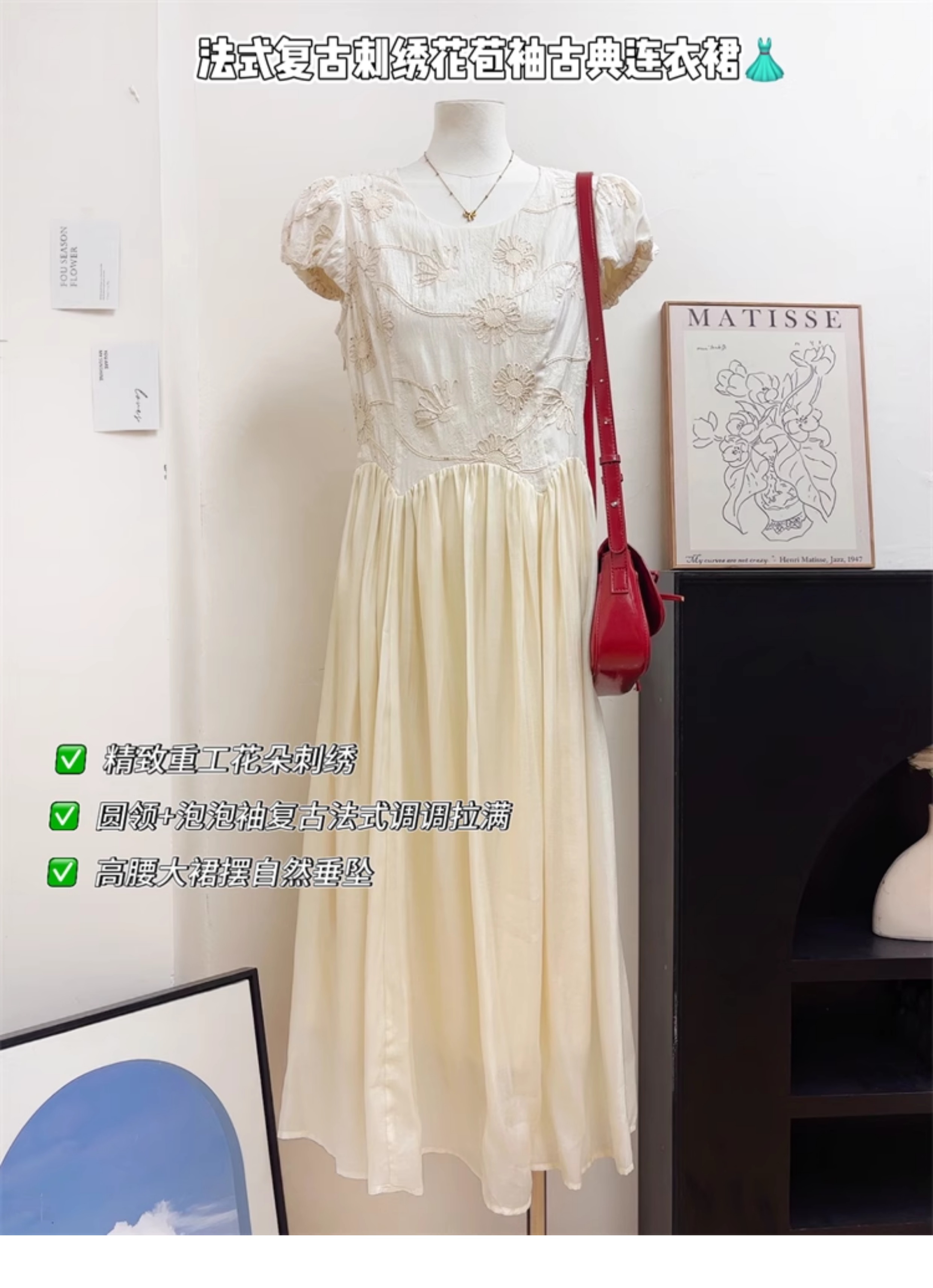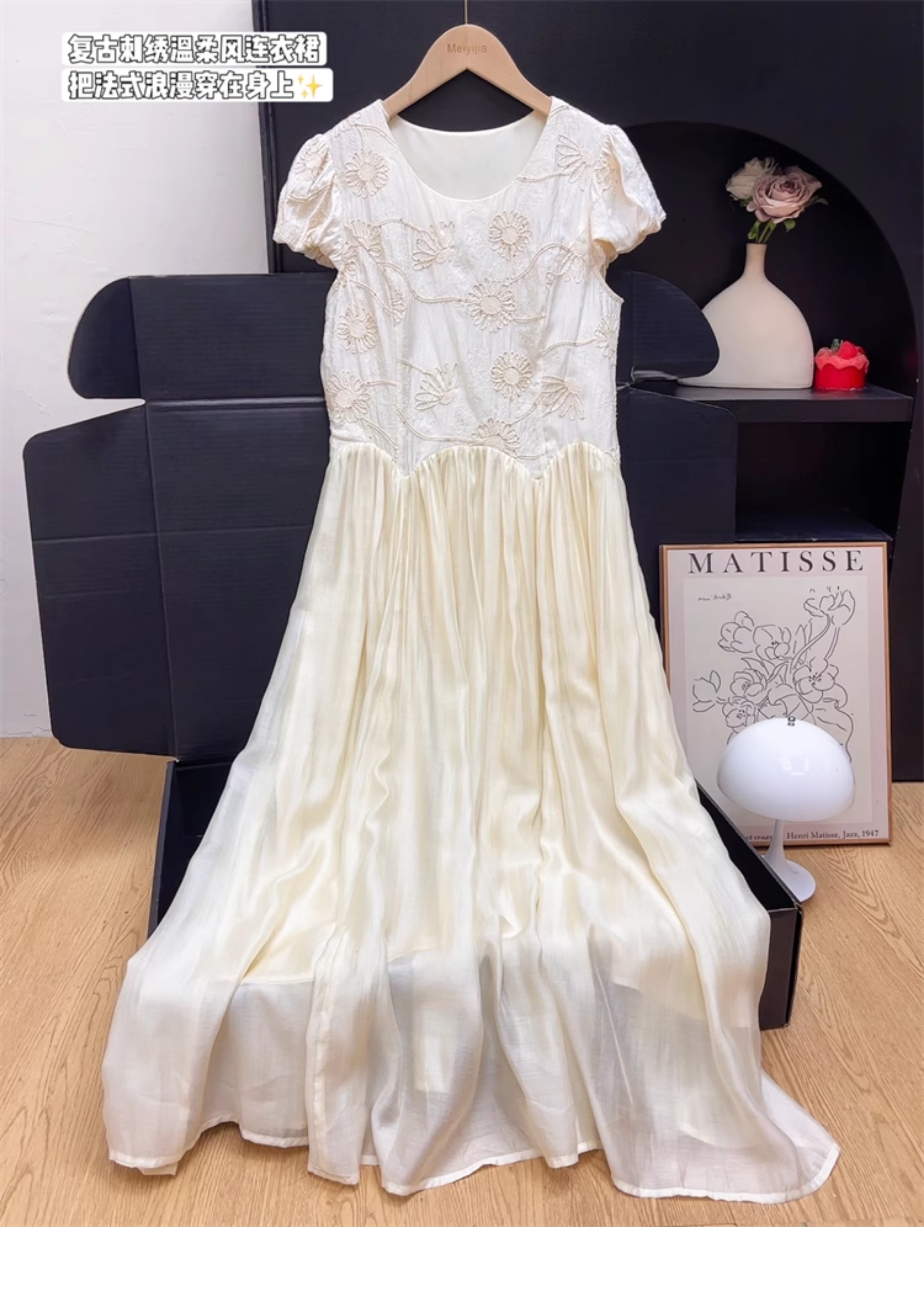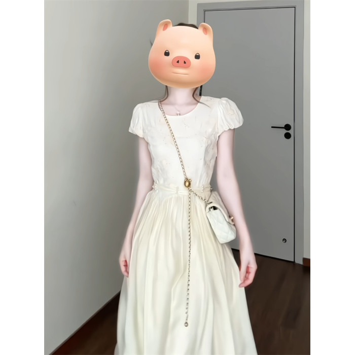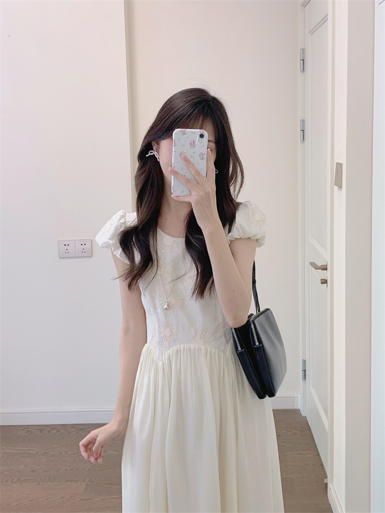 刺綉連衣裙女夏2025新款穿搭法式重工特別漂亮掐腰小個子氣質長裙