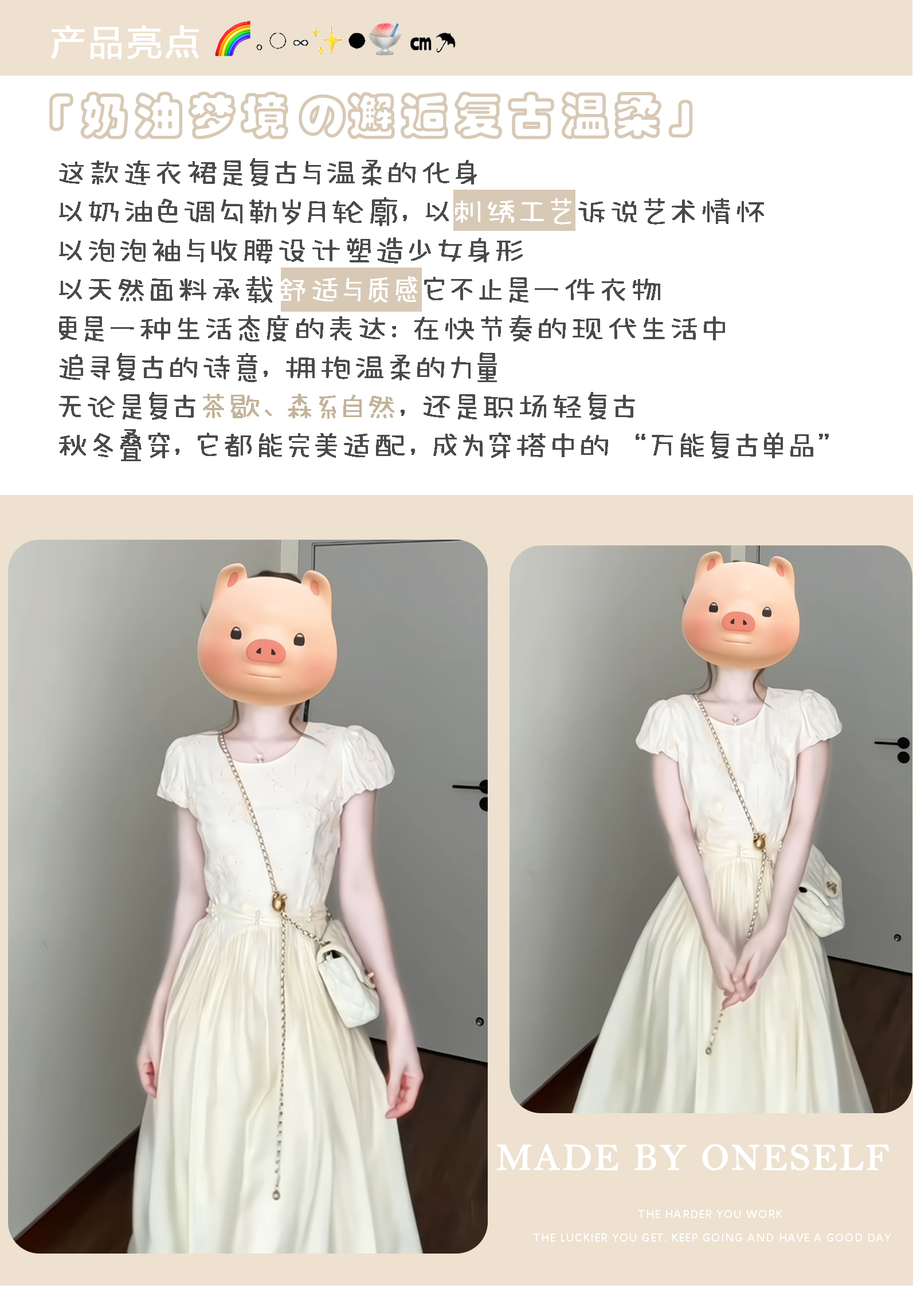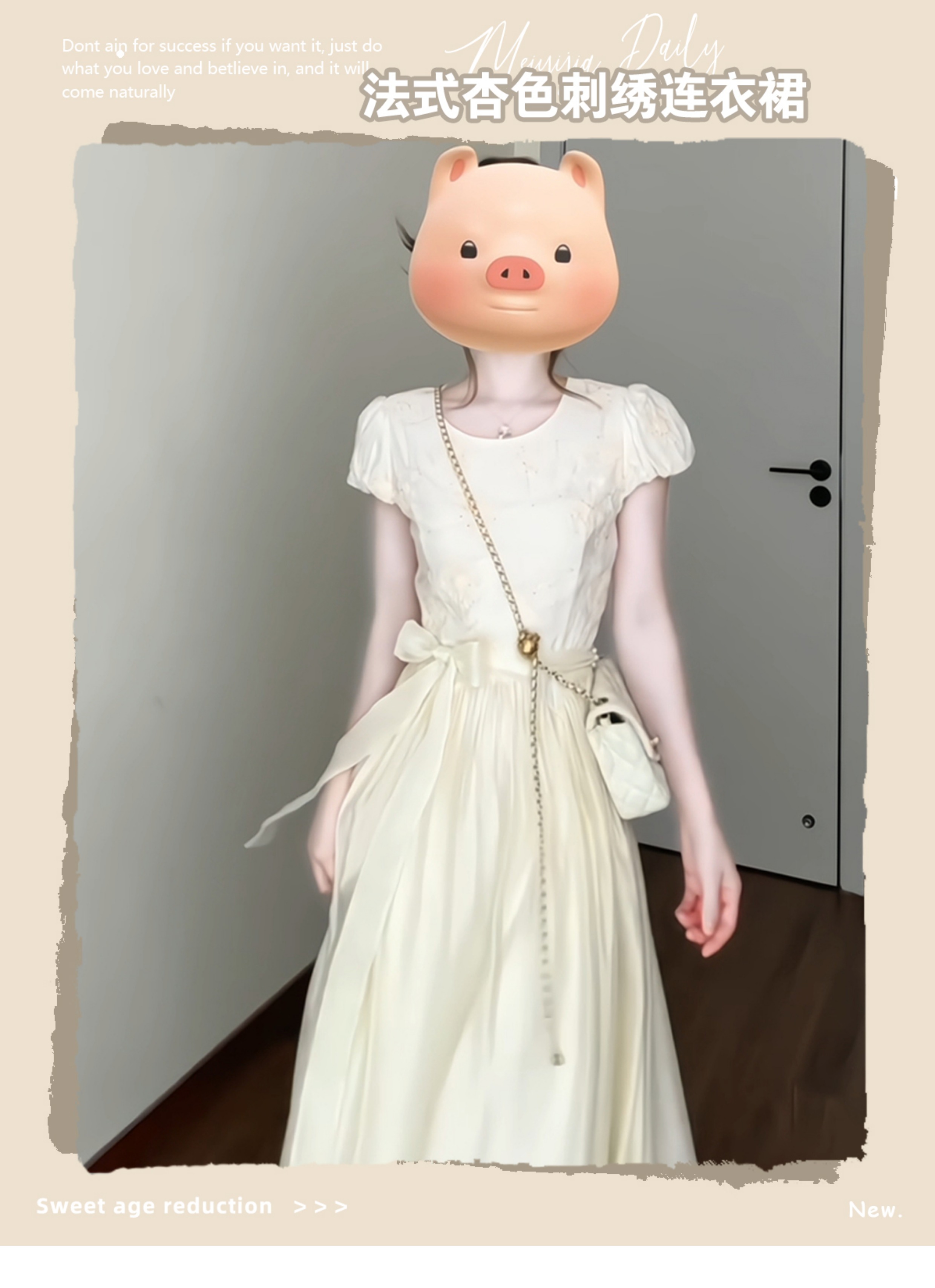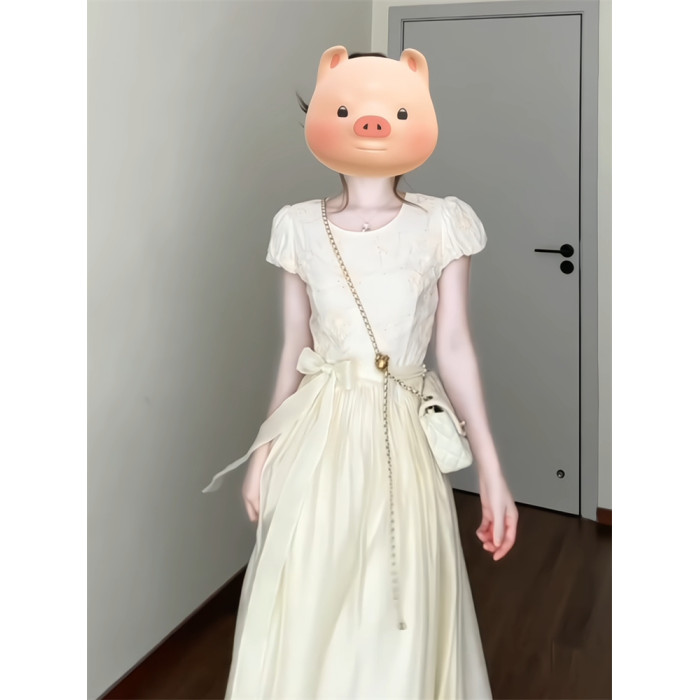 米色連衣裙 【不含蝴蝶結綁帶】