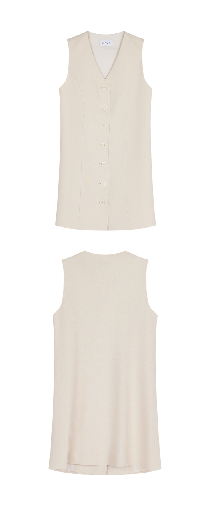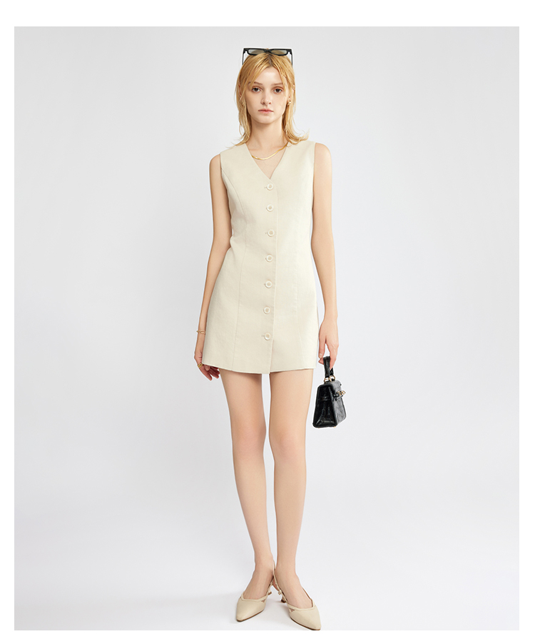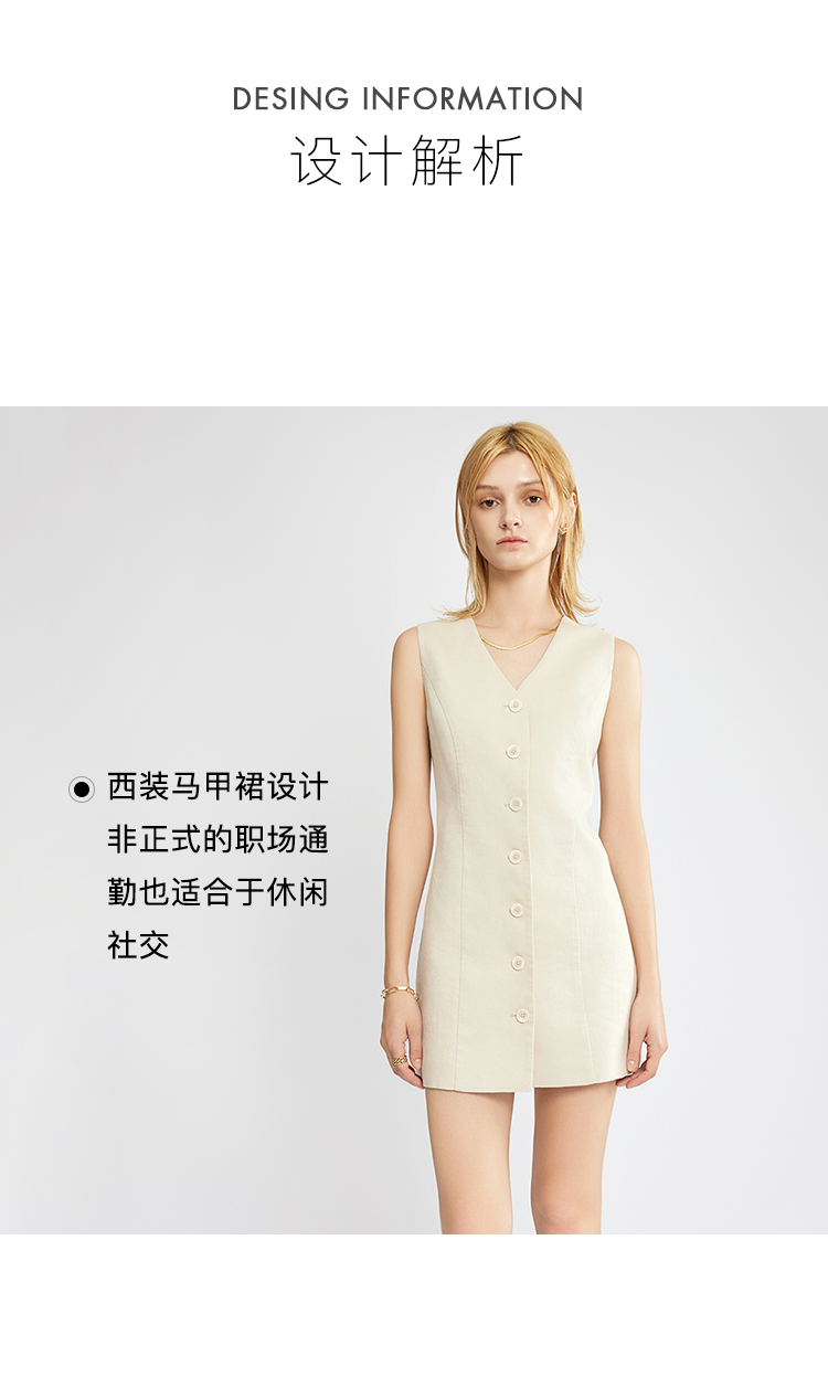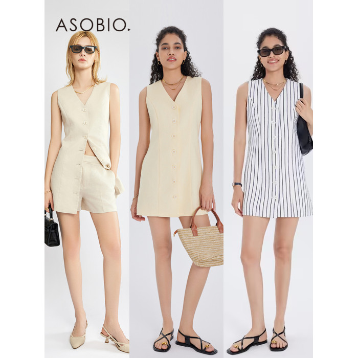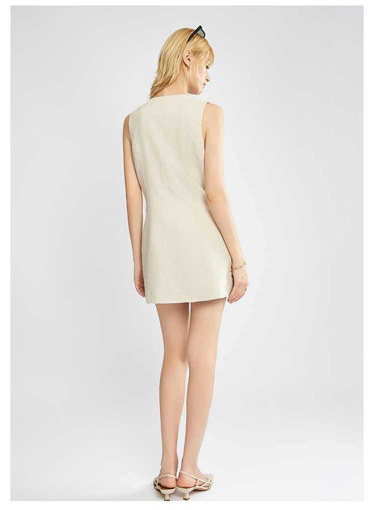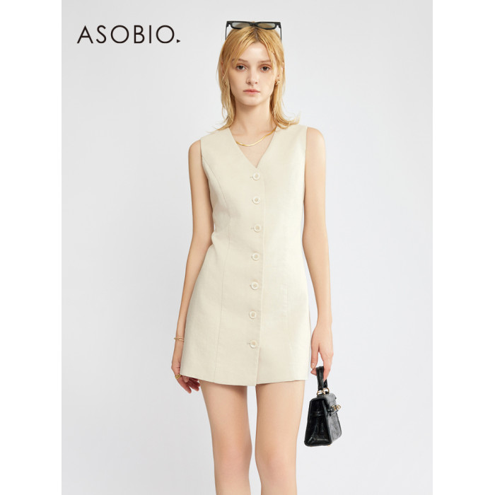 ‘亞麻系列’Asobio西裝連衣裙女夏季無袖收腰純色通勤長裙113