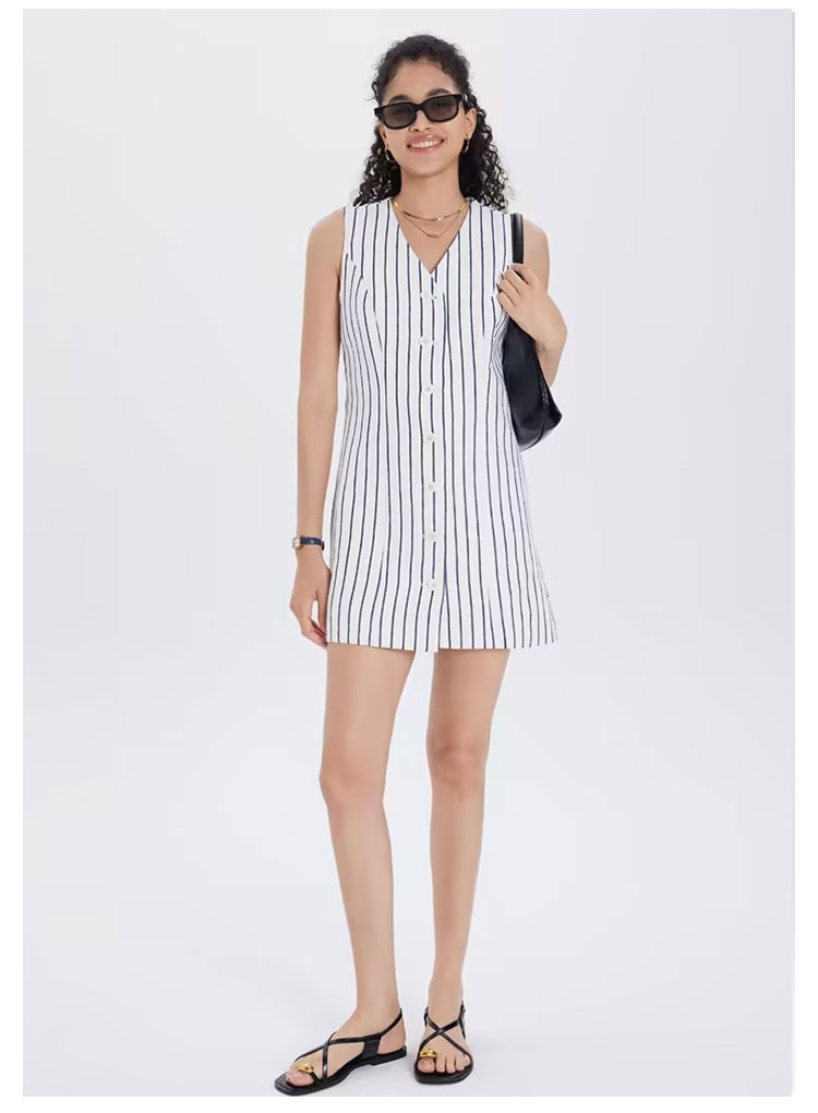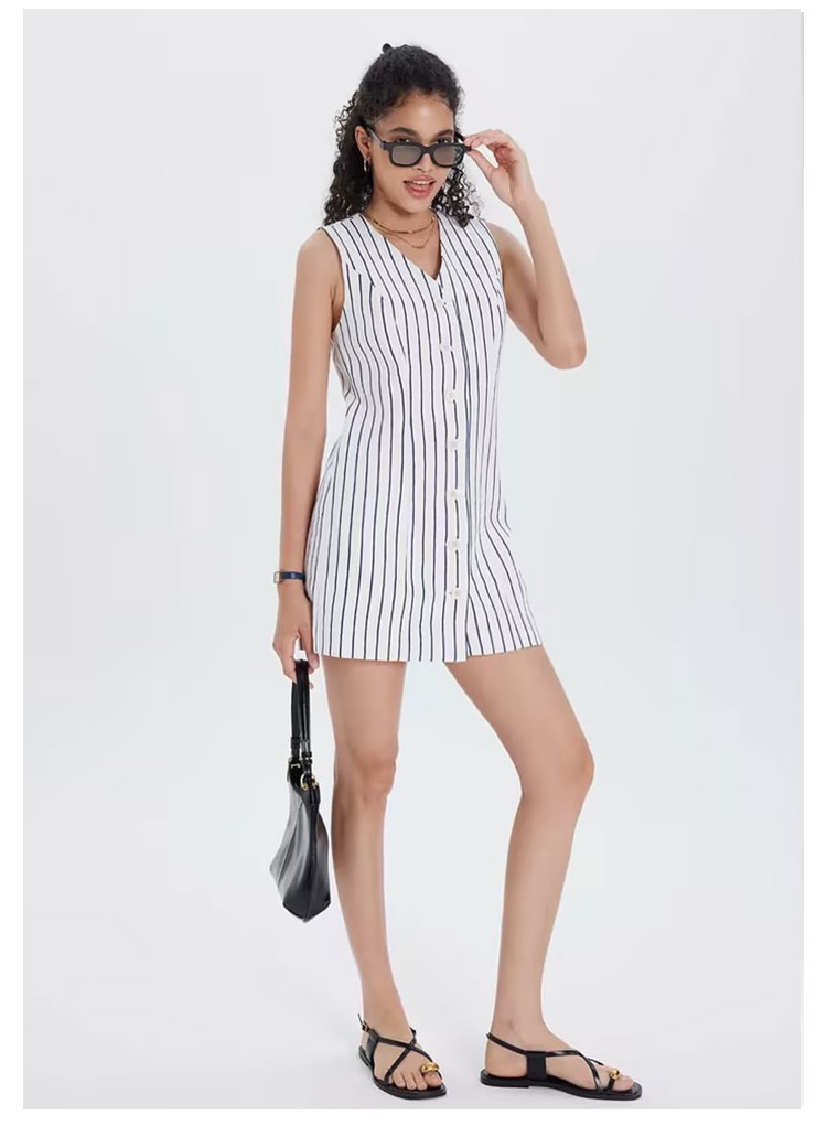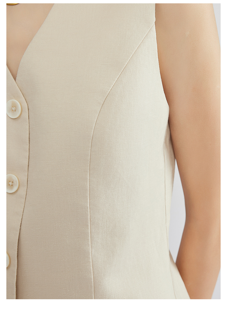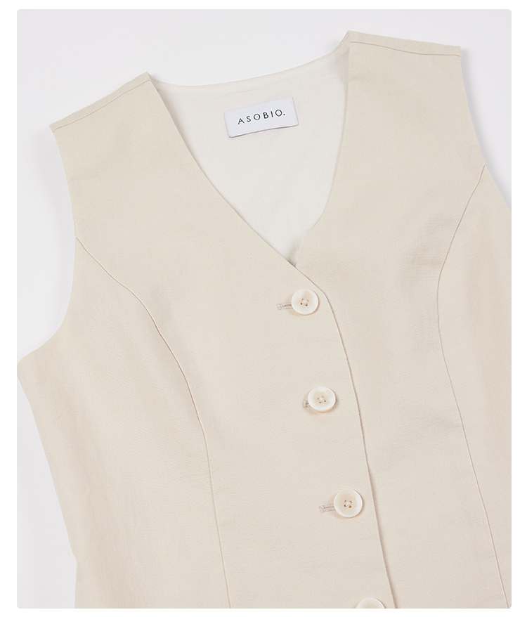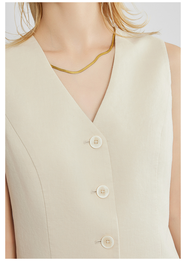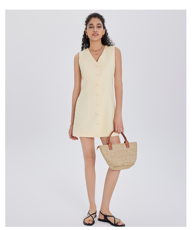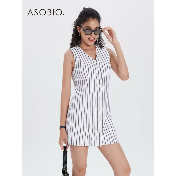 ‘亞麻系列’Asobio西裝連衣裙女夏季無袖收腰純色通勤長裙113