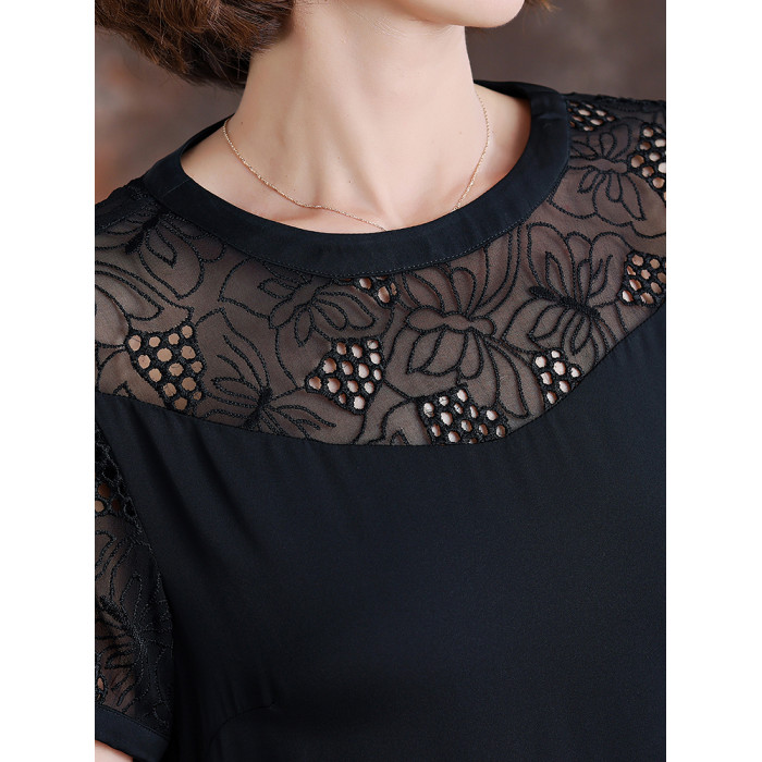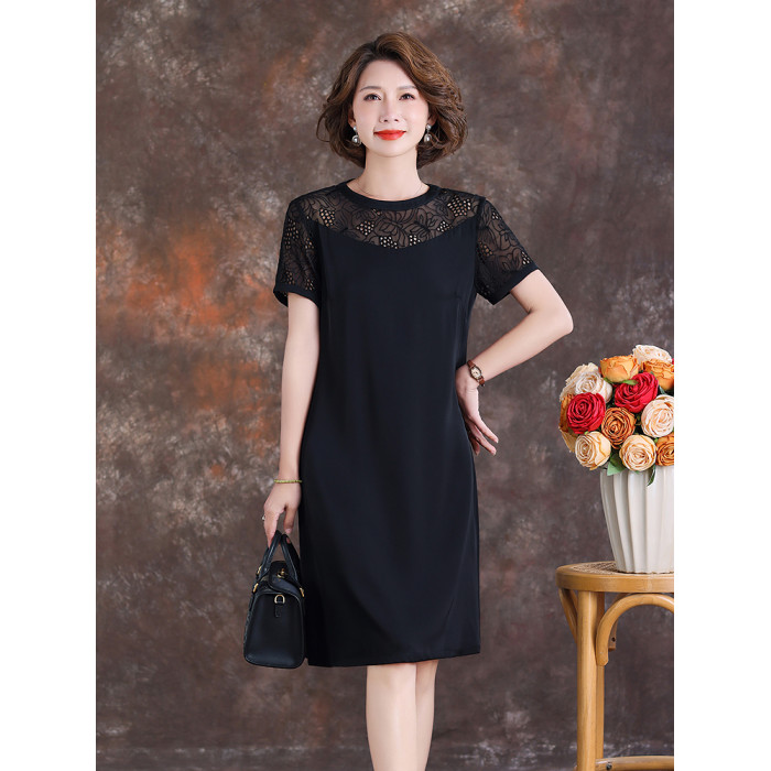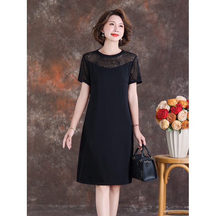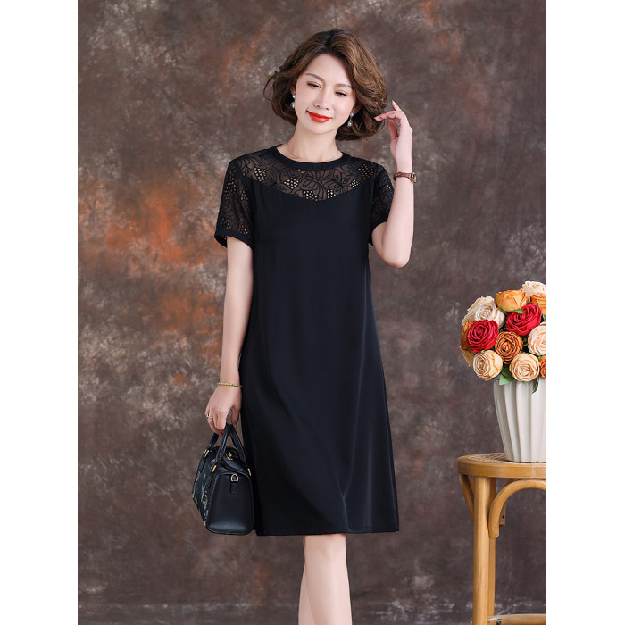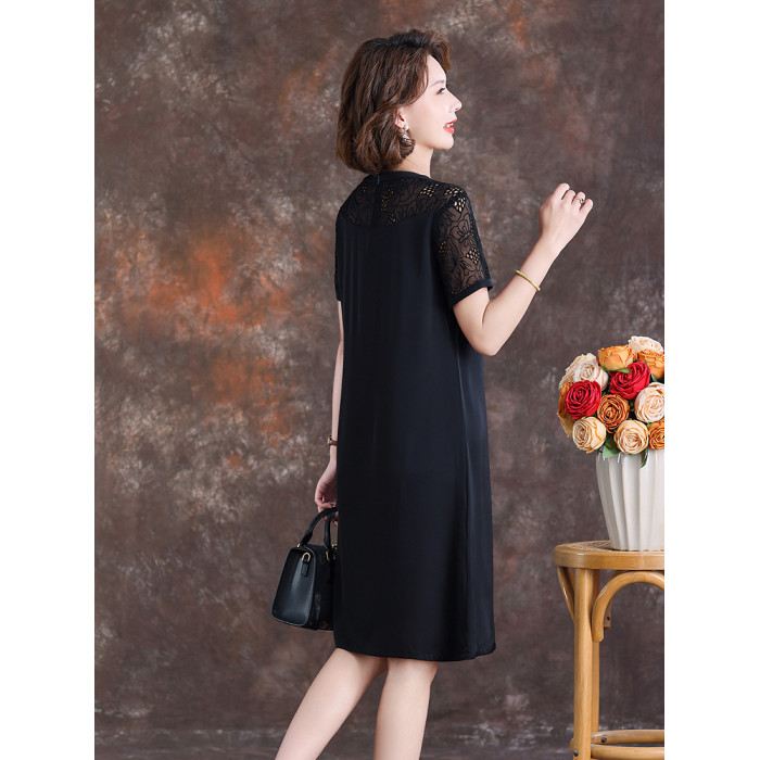 齊黛國際品牌真絲連衣裙女2025夏季新款短袖氣質顯瘦桑蠶絲中長裙