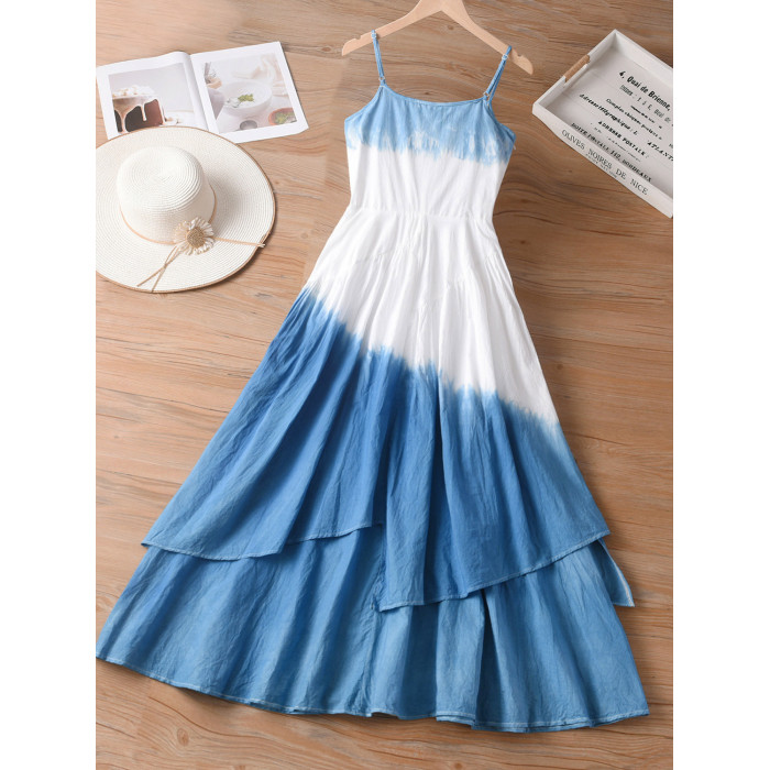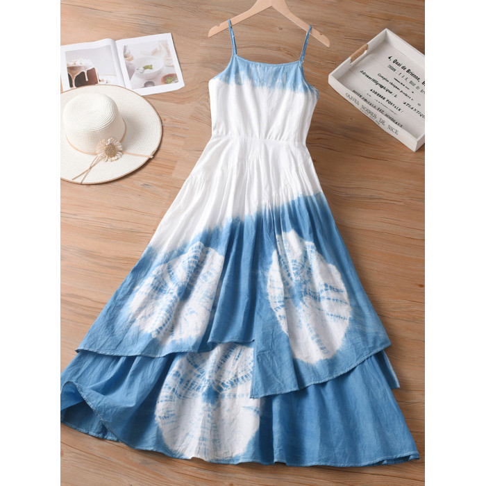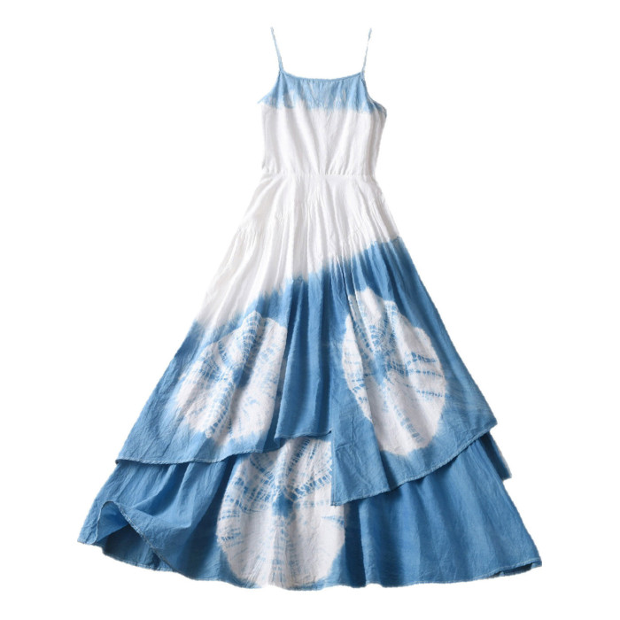 雲南古法手工紥染連衣裙女裝新款藍染海邊度假風吊帶裙旅遊風穿