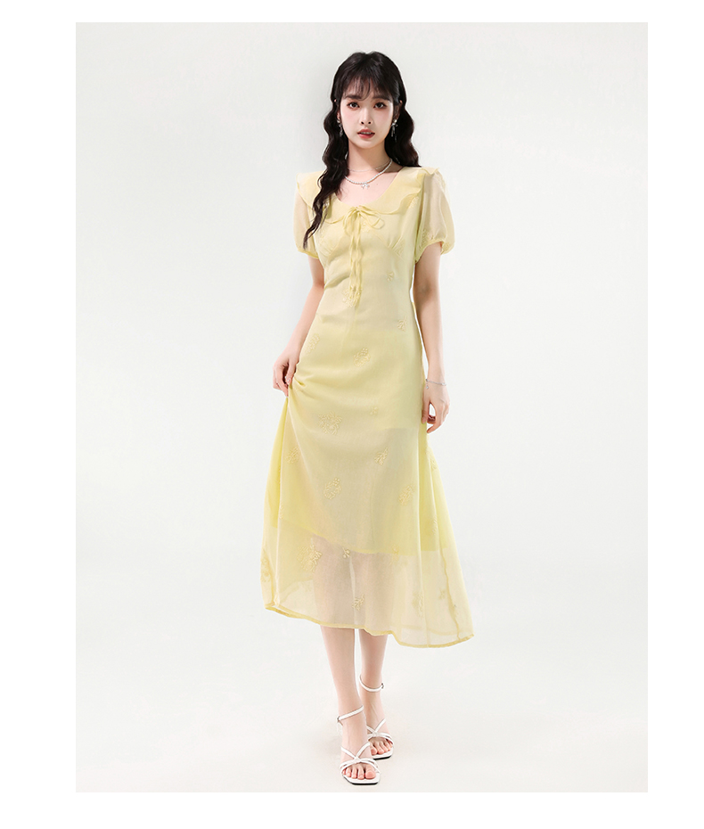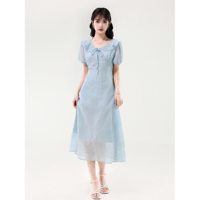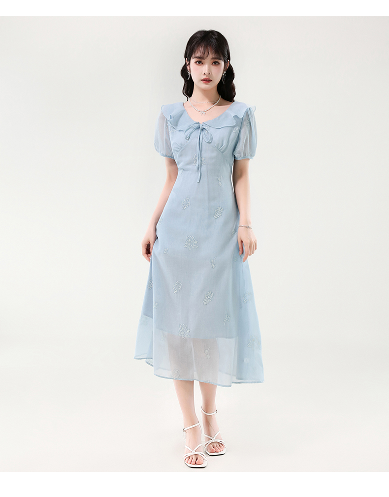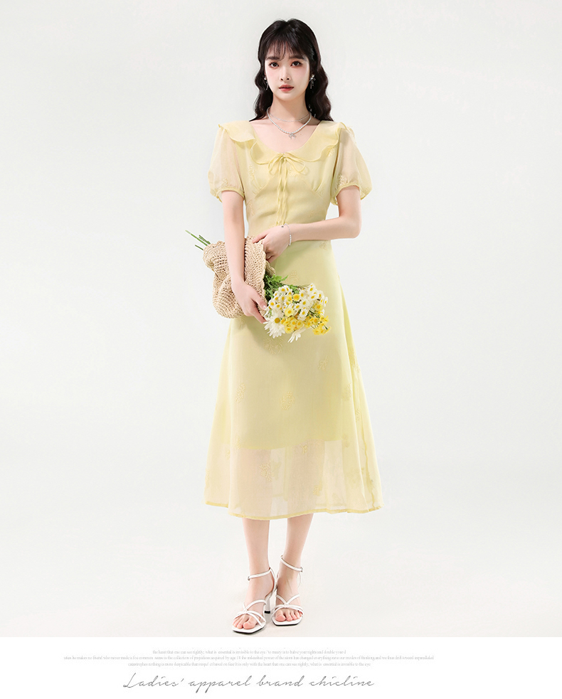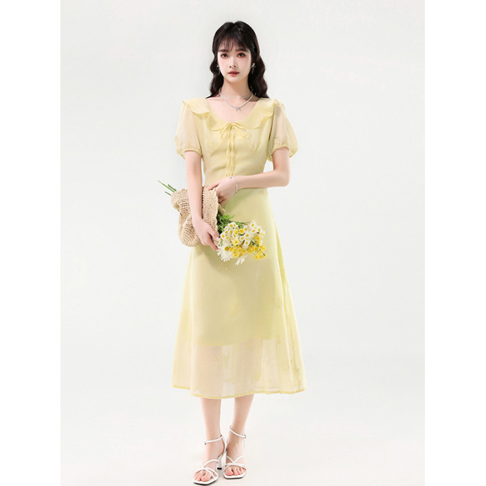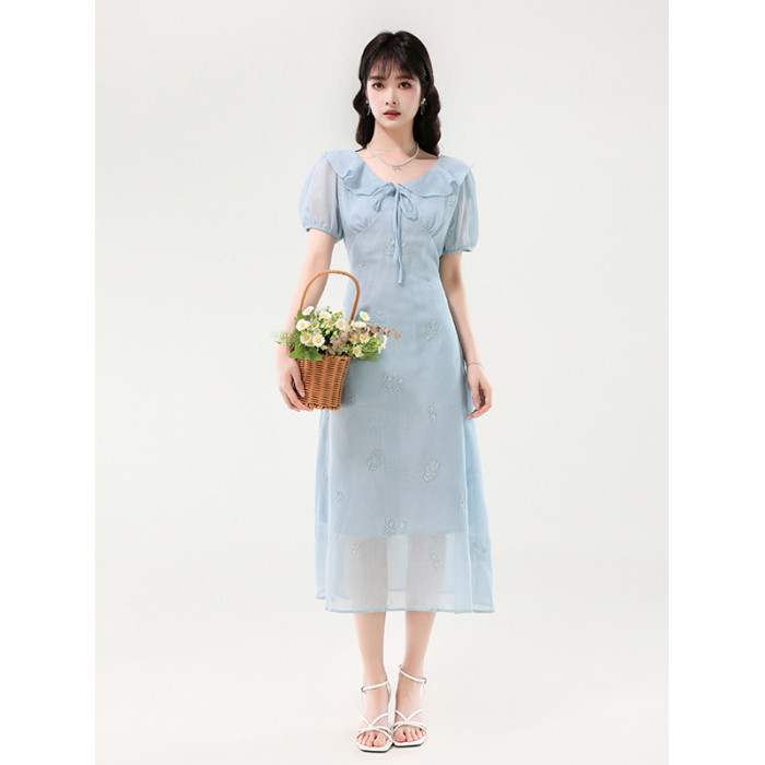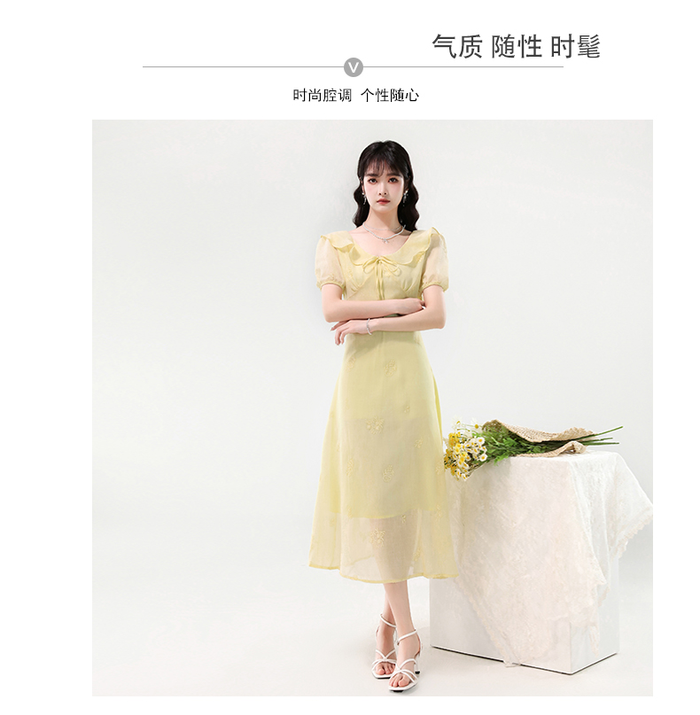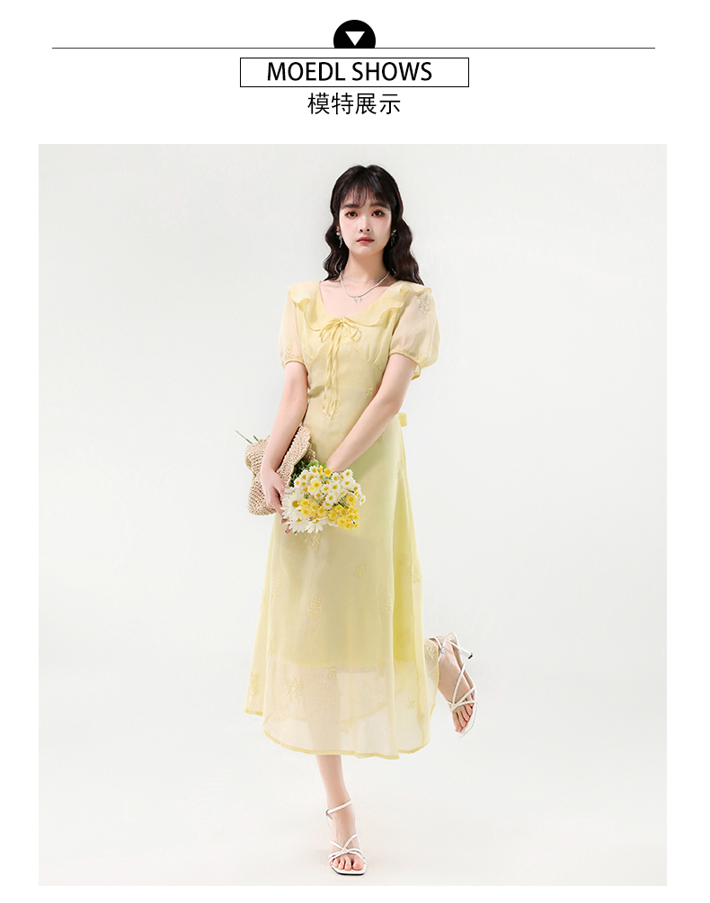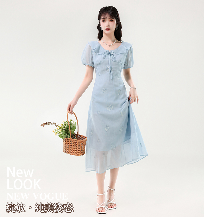 廣州十三行女裝爆款連衣裙2025夏季法式絕美刺綉收腰顯瘦連衣裙
