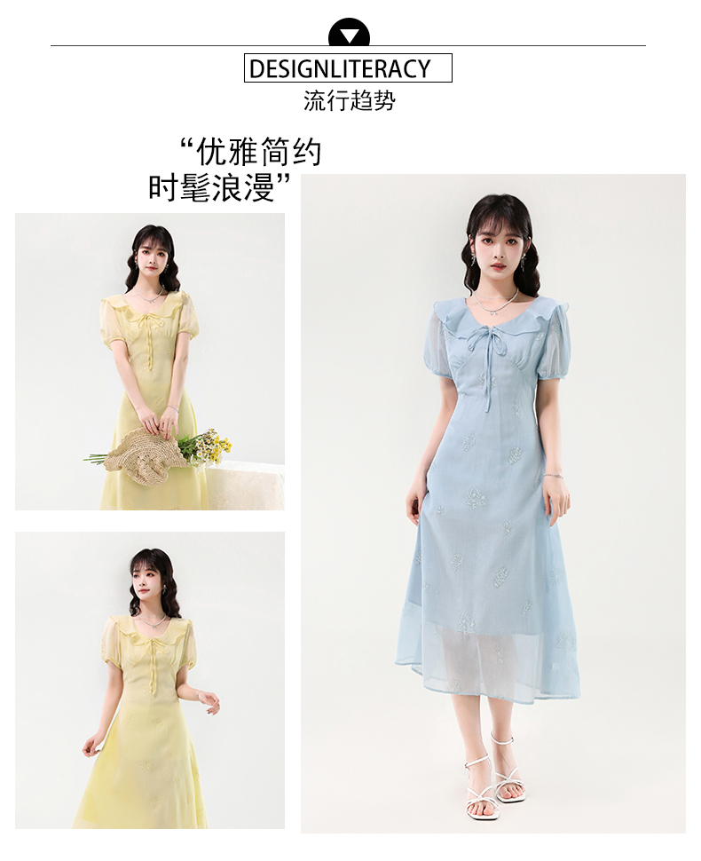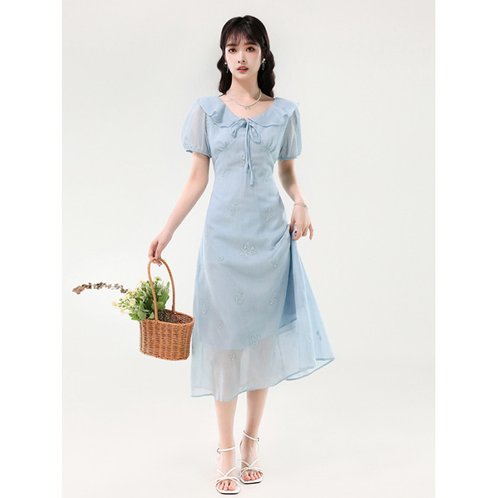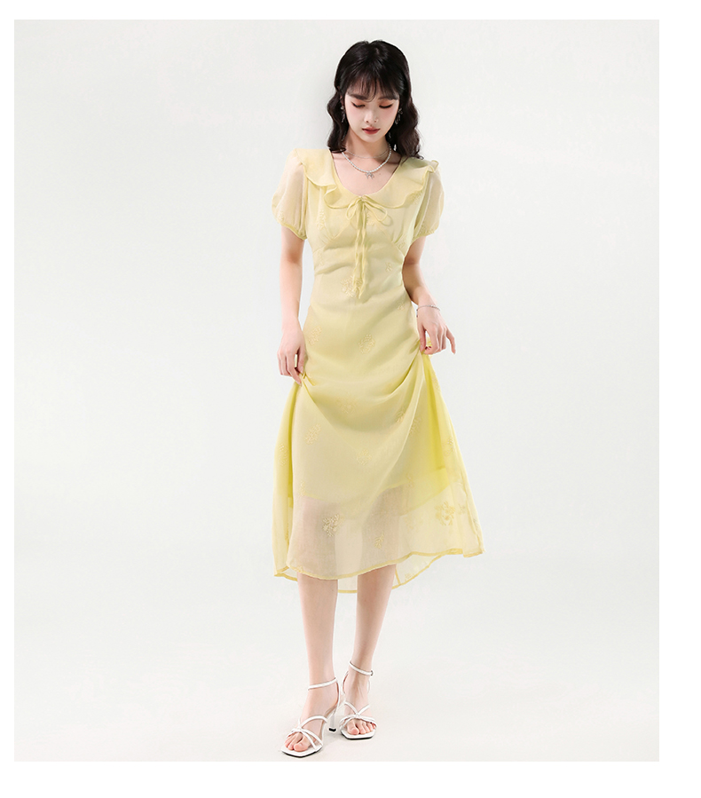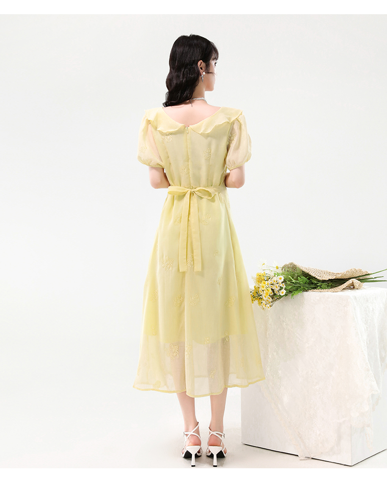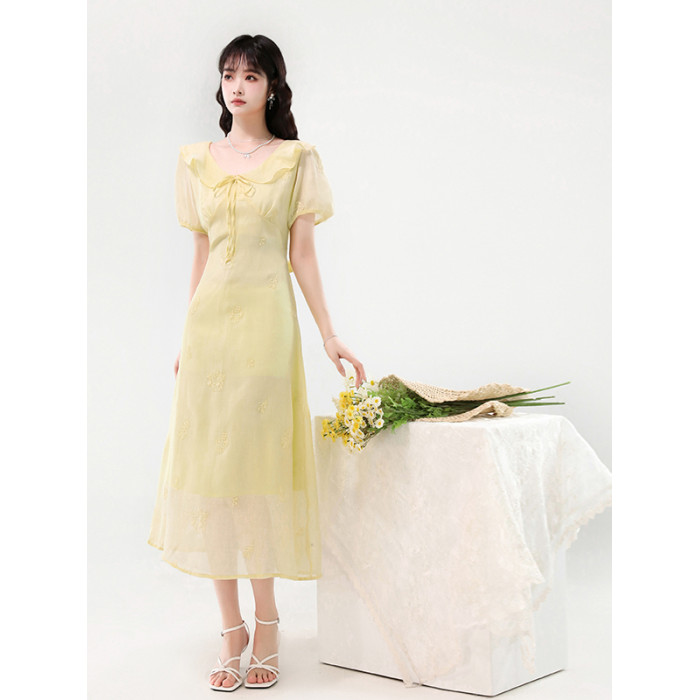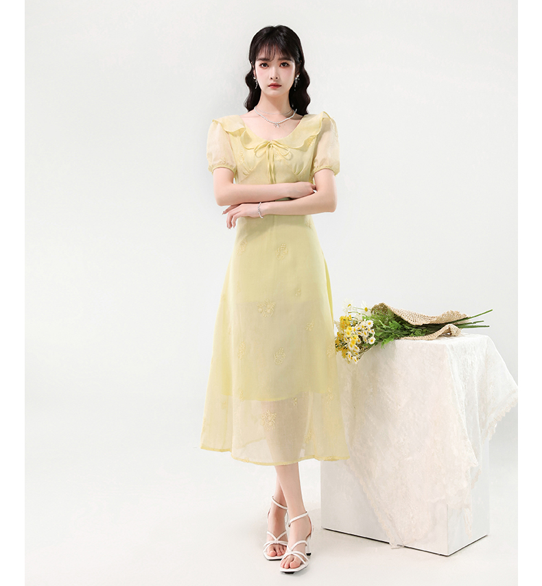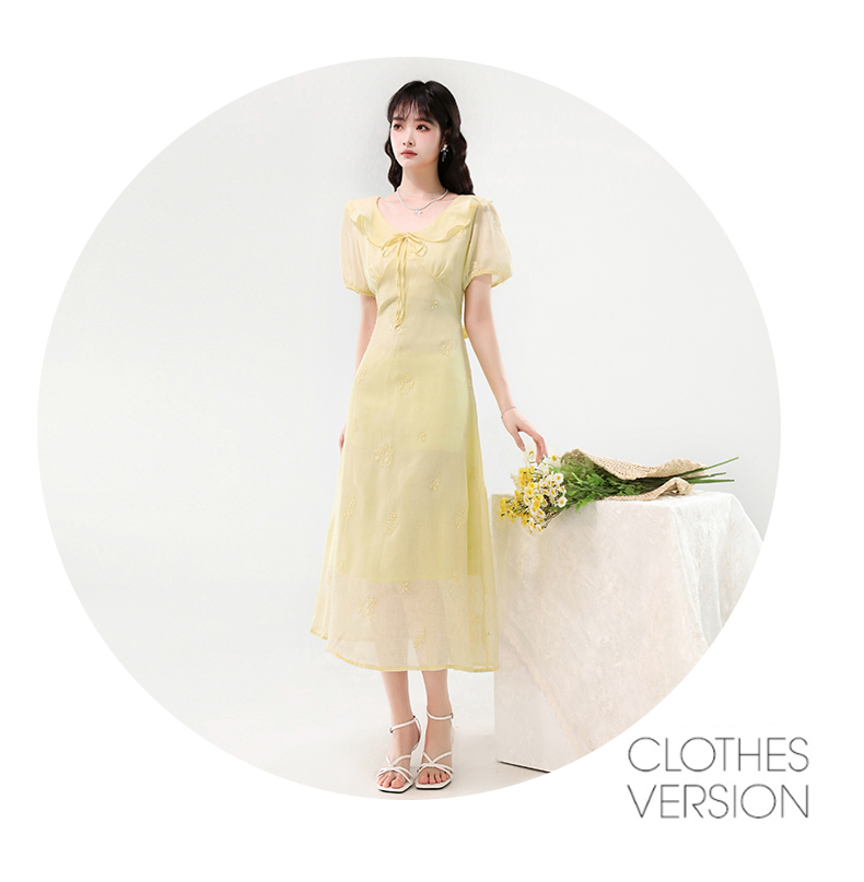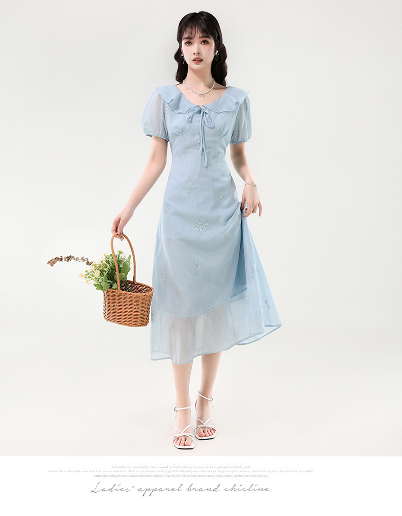 廣州十三行女裝爆款連衣裙2025夏季法式絕美刺綉收腰顯瘦連衣裙