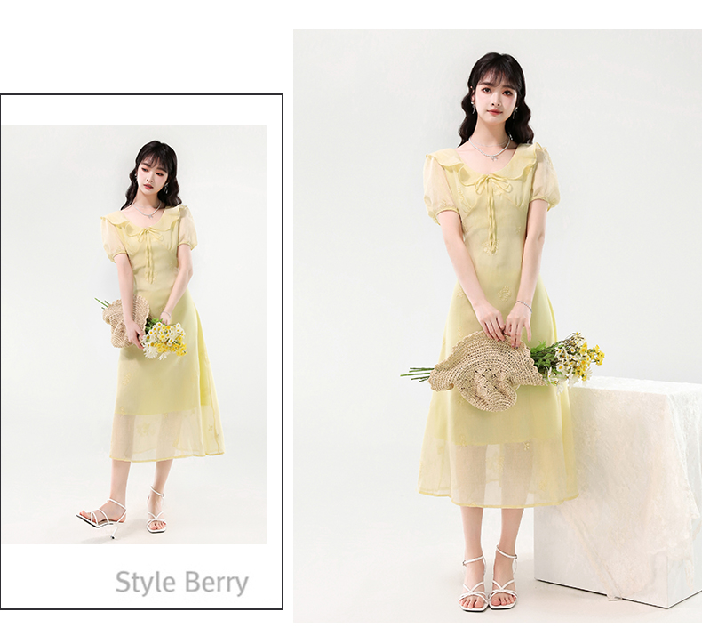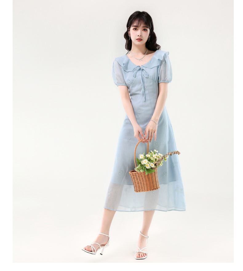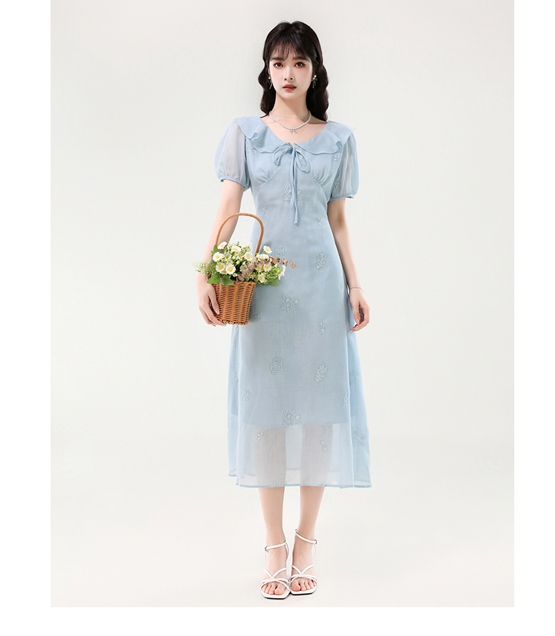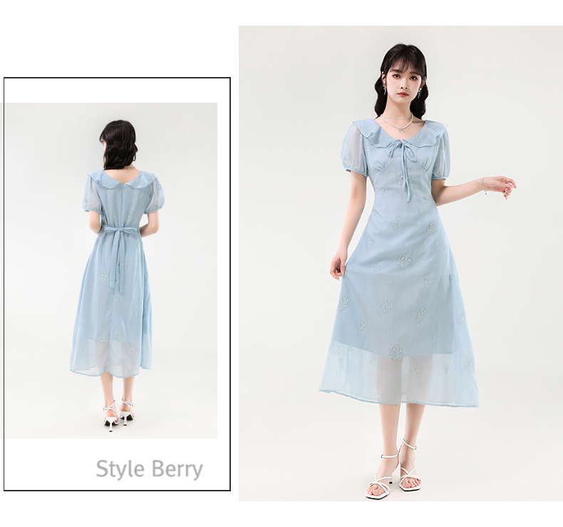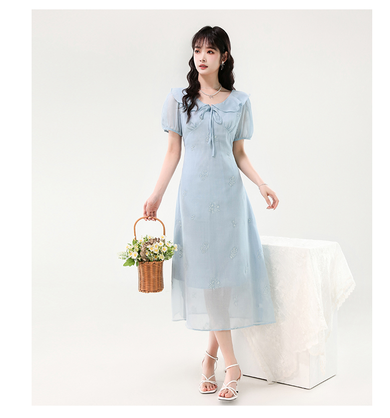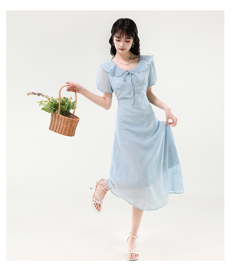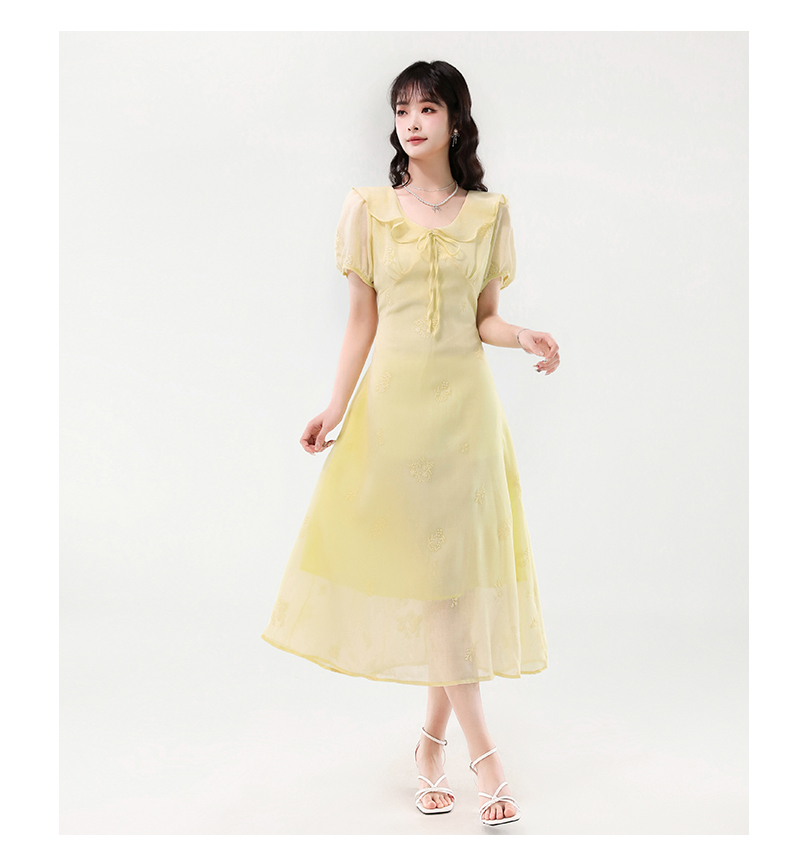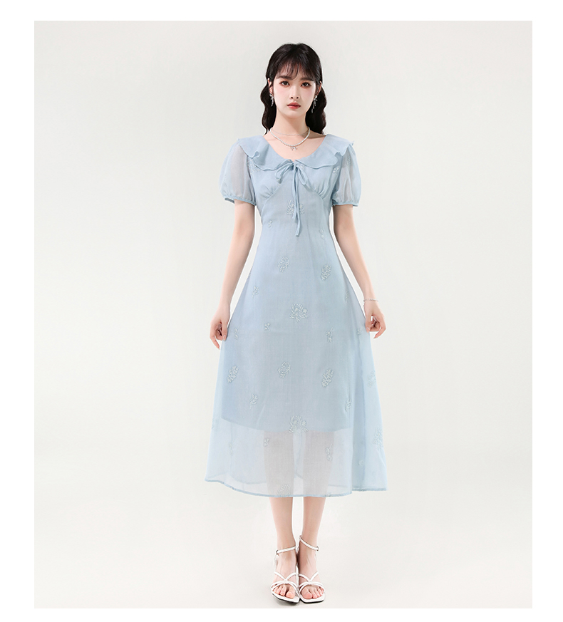 廣州十三行女裝爆款連衣裙2025夏季法式絕美刺綉收腰顯瘦連衣裙