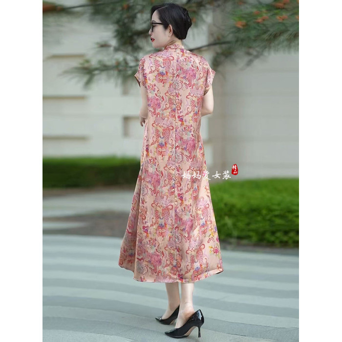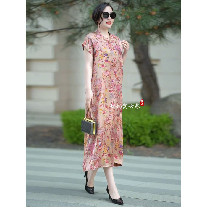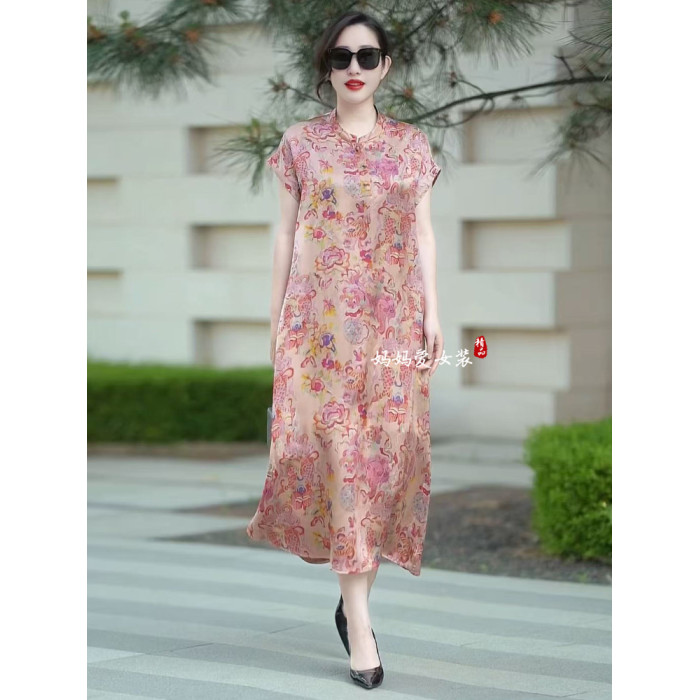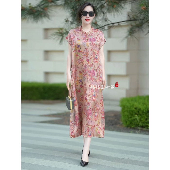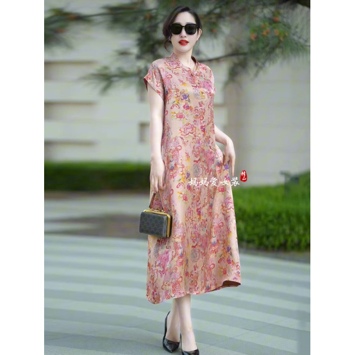 夏季新款胖mm新中式國風提花盤釦高級感寬松超大碼改良旗袍連衣裙