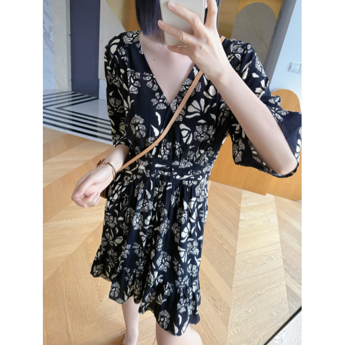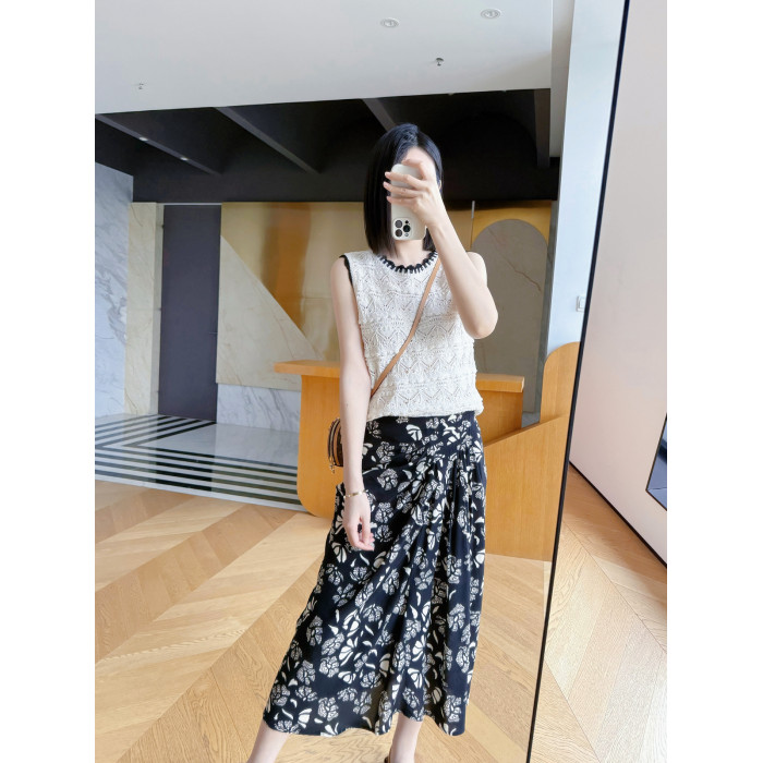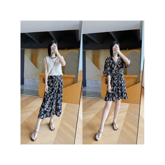 魚小瑜|花影交錯 ba25春夏法式黑白撞色碎花連衣裙/半裙LL25151