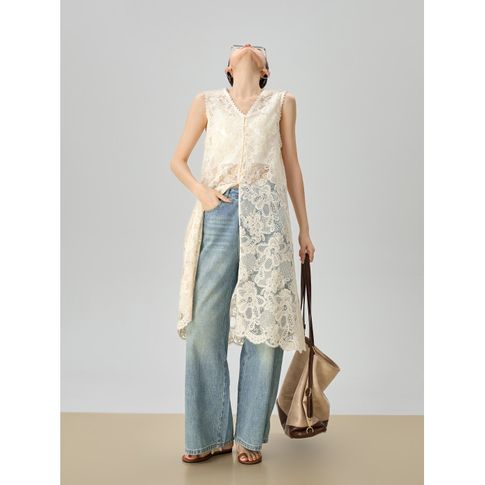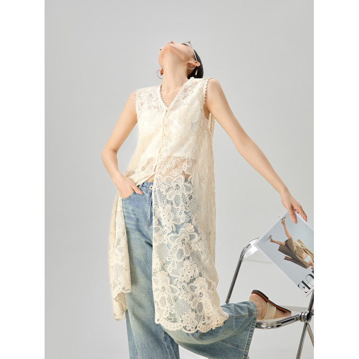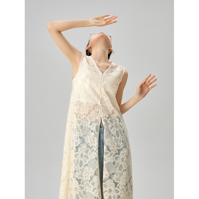 巨好看的法式鏤空蕾絲罩衫無袖連衣裙子女夏2025新款今年流行爆款