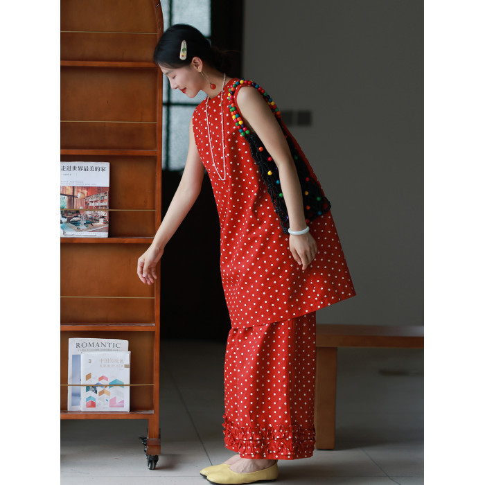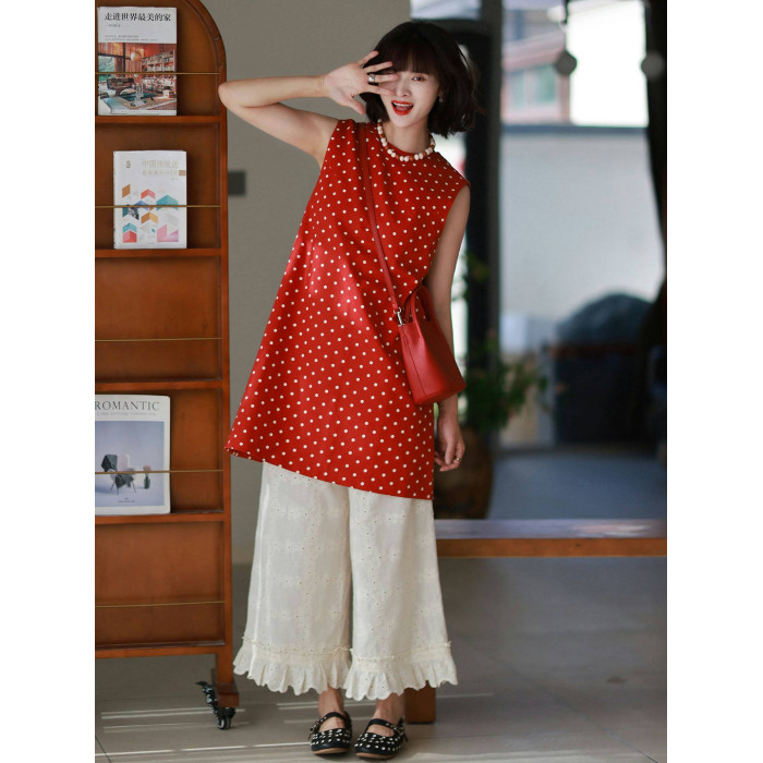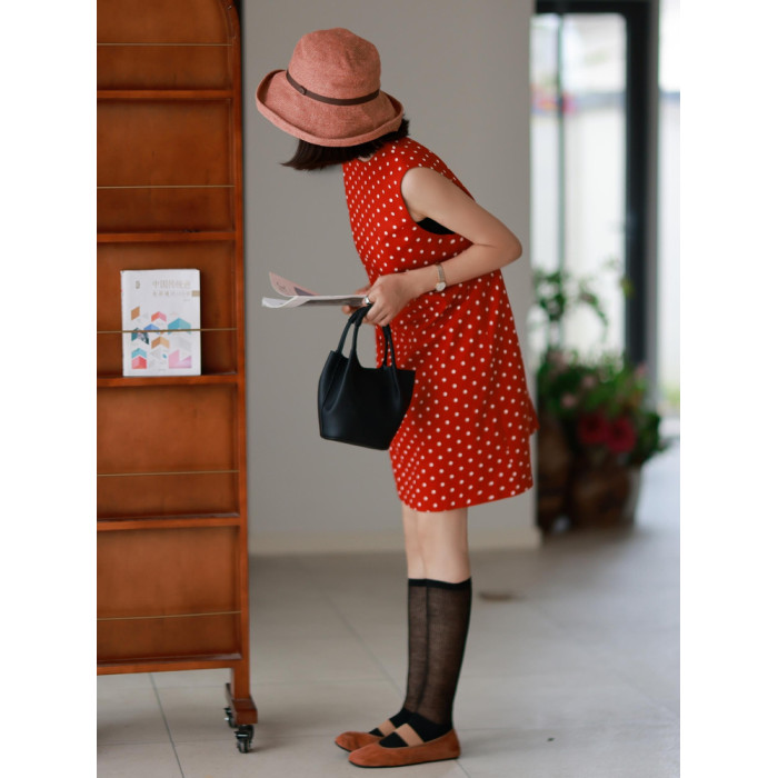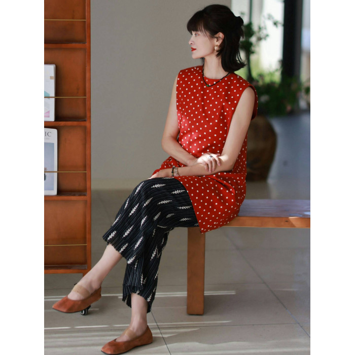 墨黛原創女裝2025夏季新品波點無袖背心連衣裙寬松顯瘦直筒裙