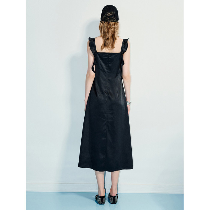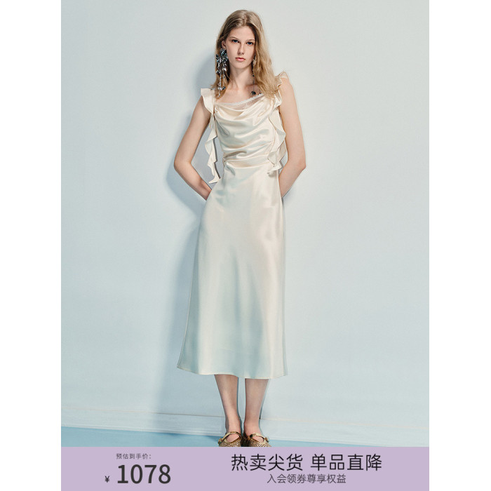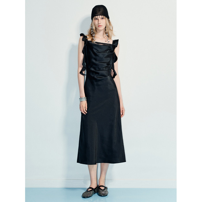 MAXRIENY精緻復古連衣裙端莊小白裙小黑裙收褶飄帶小衆設計感禮裙