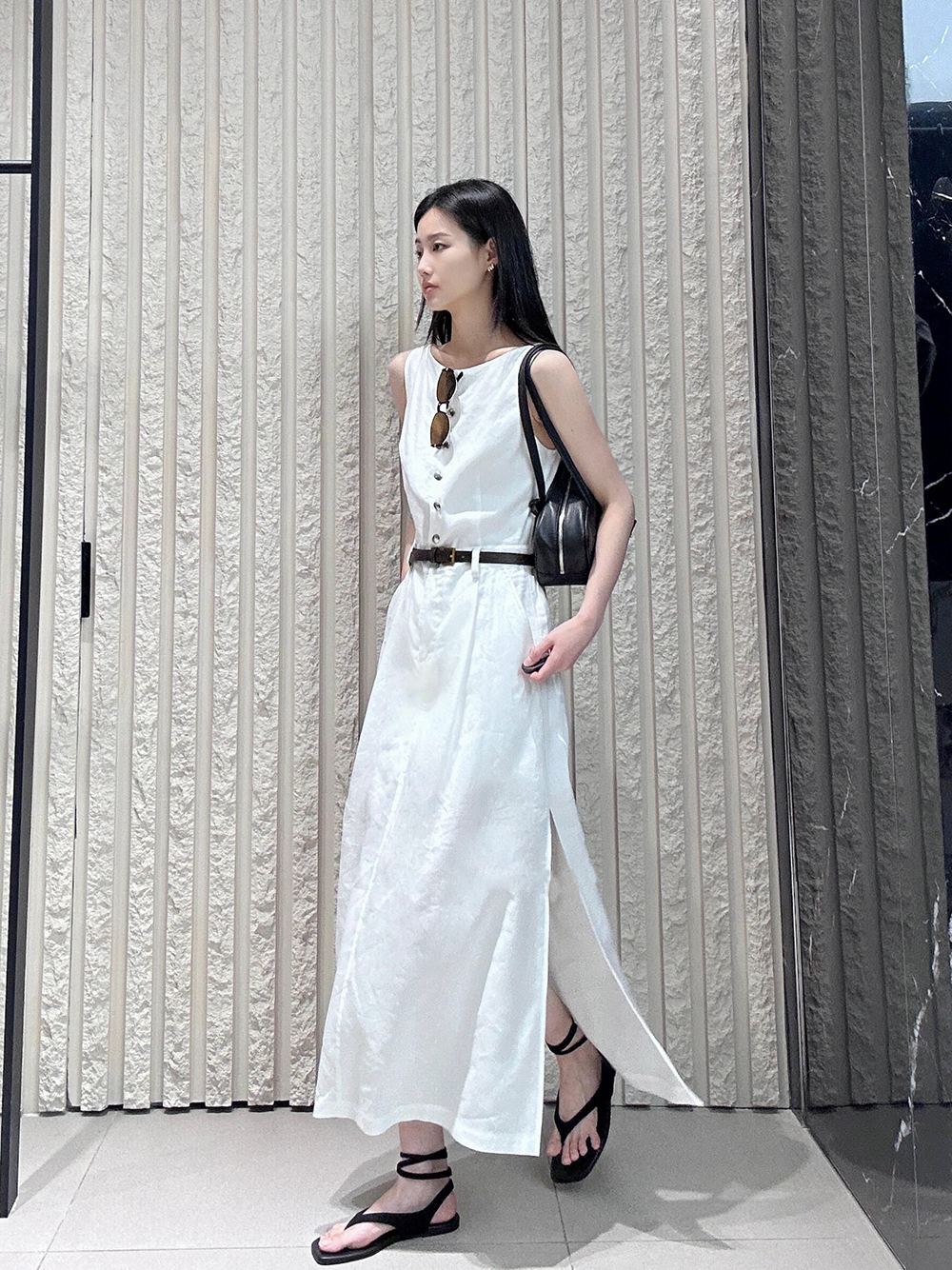 【商場同款】2025夏新品天絲亞麻輕薄假兩件襯衫長裙女連衣裙