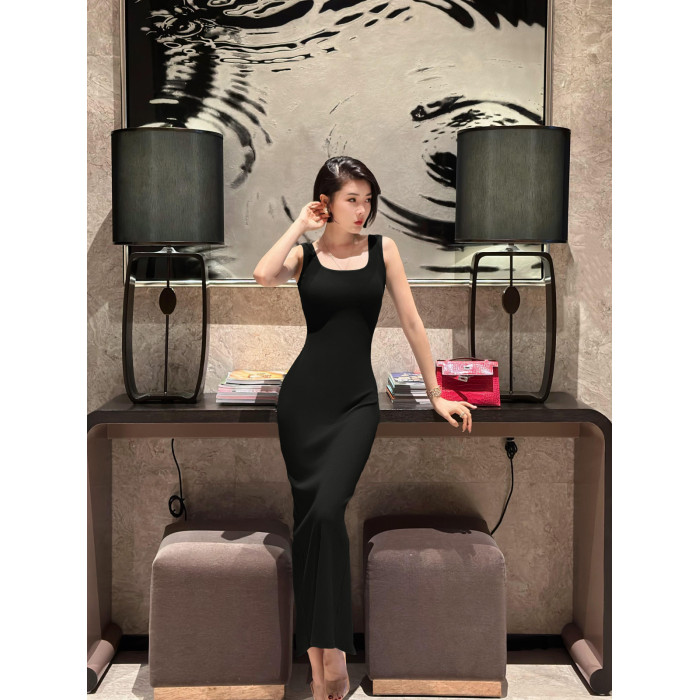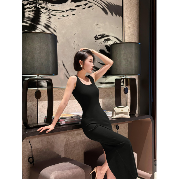 法式穿搭bi不可少極簡風背心針織連衣裙