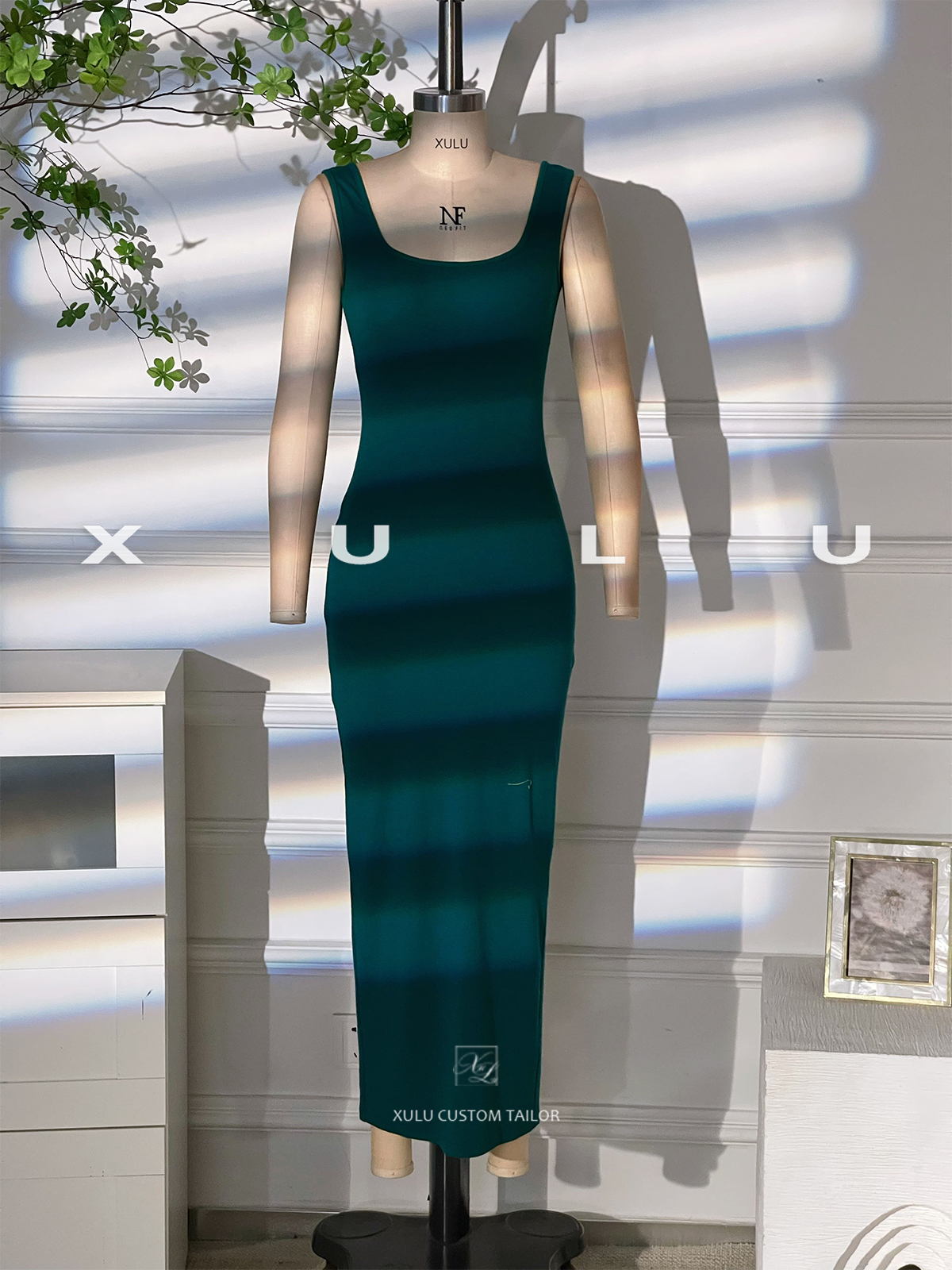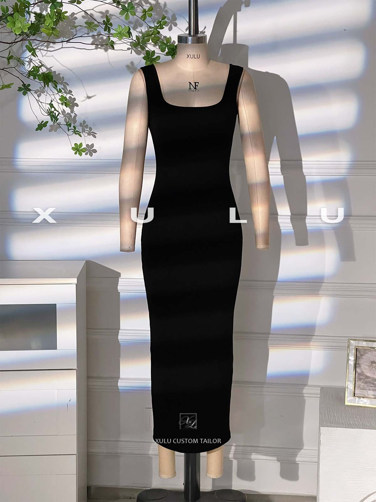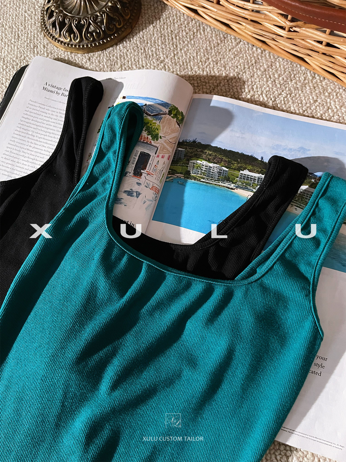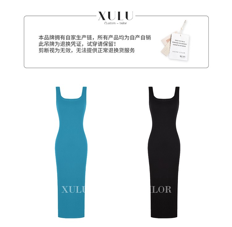 XULU原創夏季優可絲羅紋純色百搭背心裙休閒性感修身高彈連衣裙