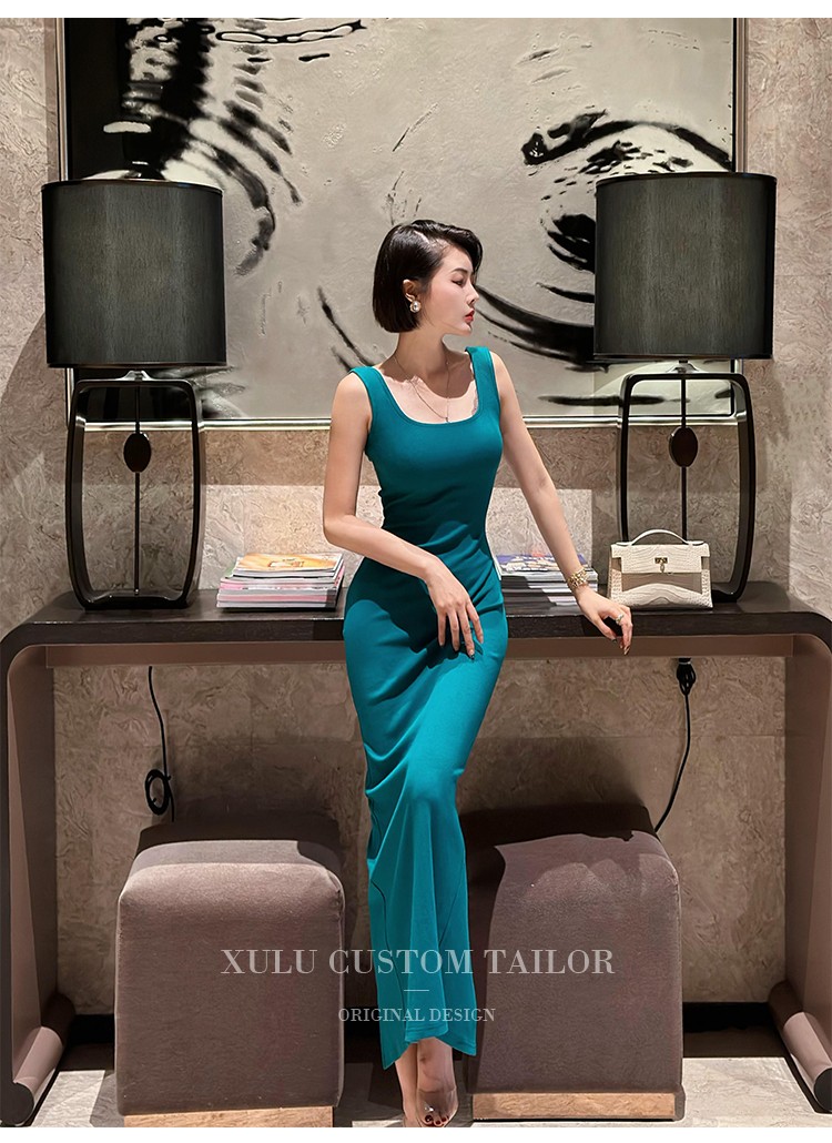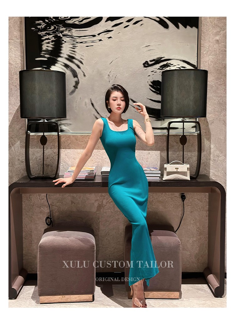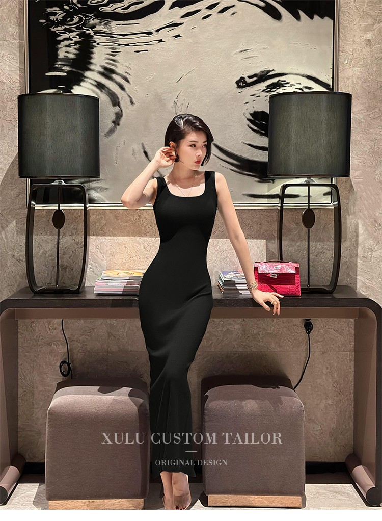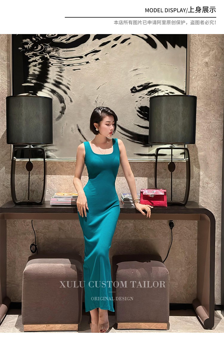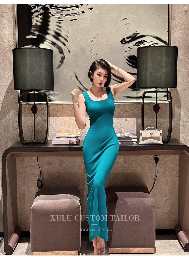 XULU原創夏季優可絲羅紋純色百搭背心裙休閒性感修身高彈連衣裙