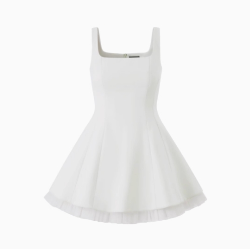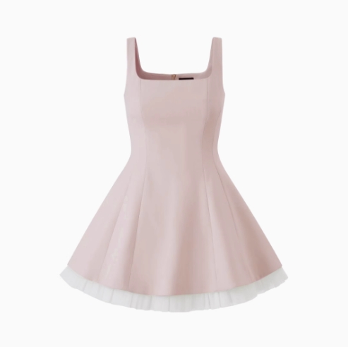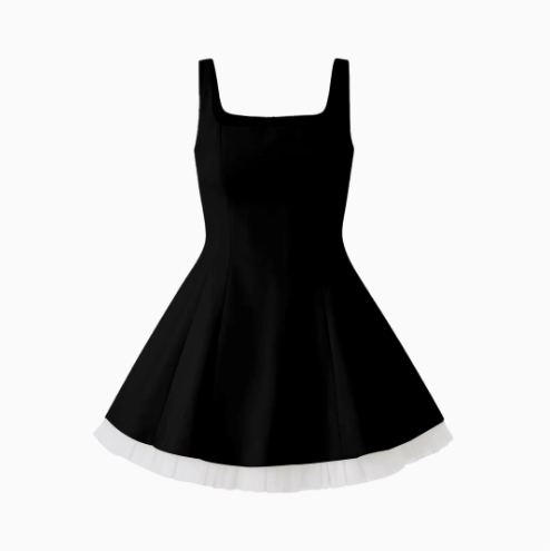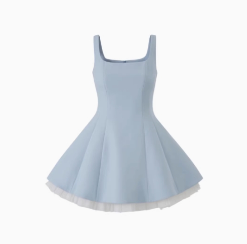 千金風無袖方領網紗吊帶連衣裙女夏純色收腰小個子芭蕾蓬蓬公主裙