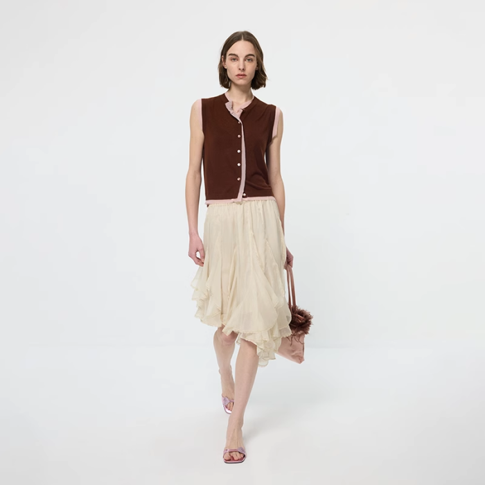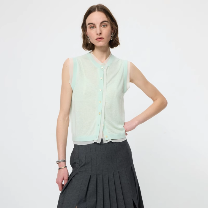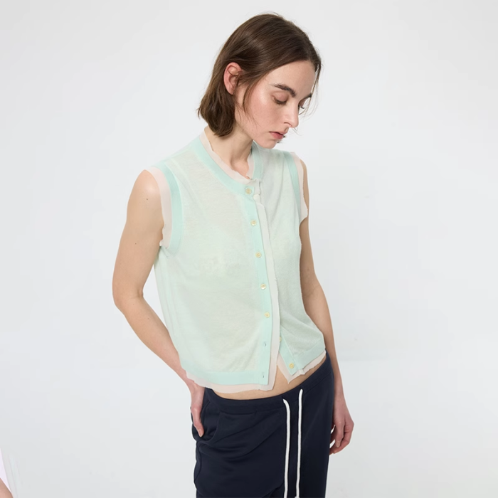 ArrivingArrive 撞色拼接圓領馬甲女夏季新款薄款針織背心打底衫