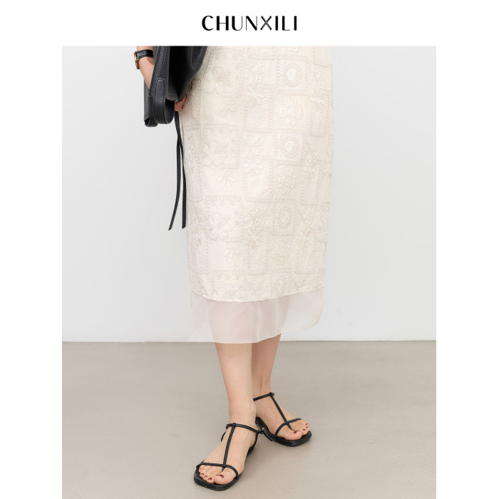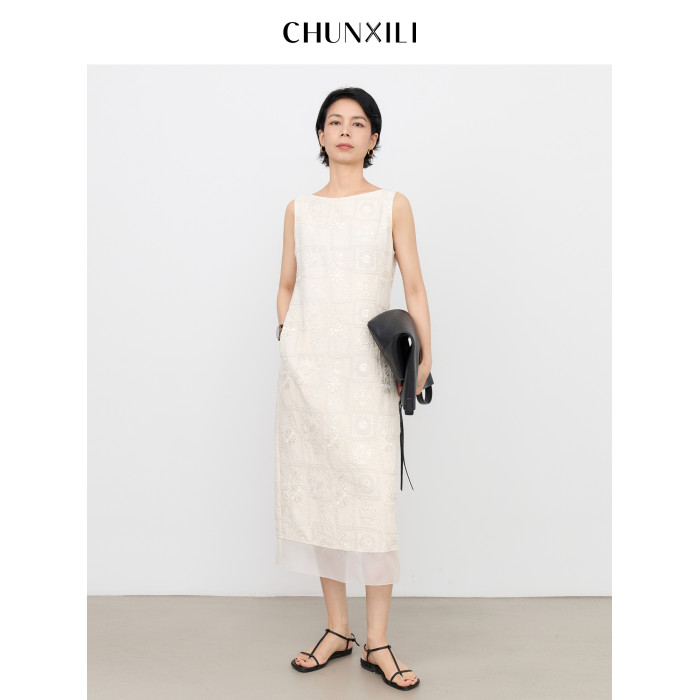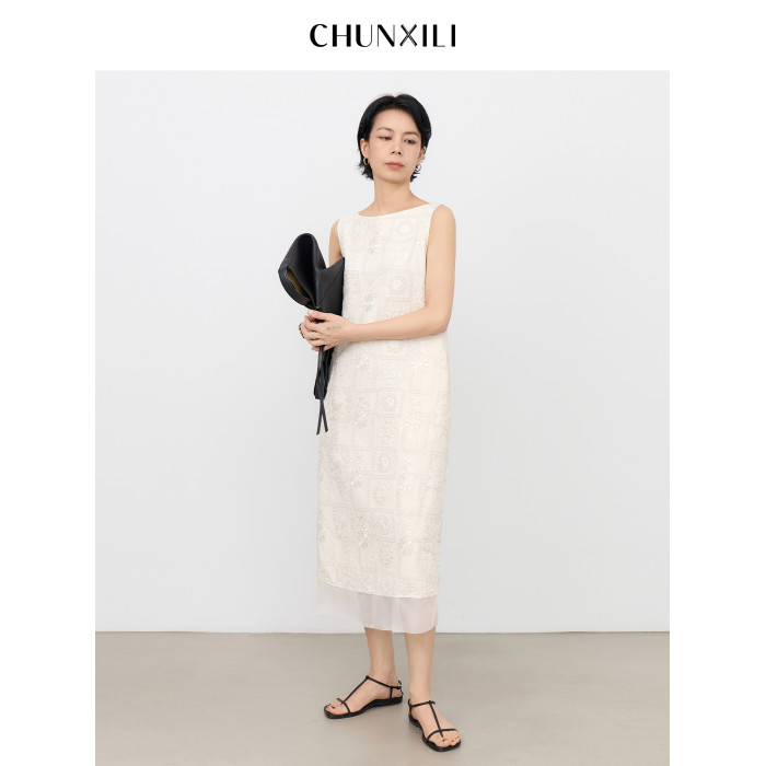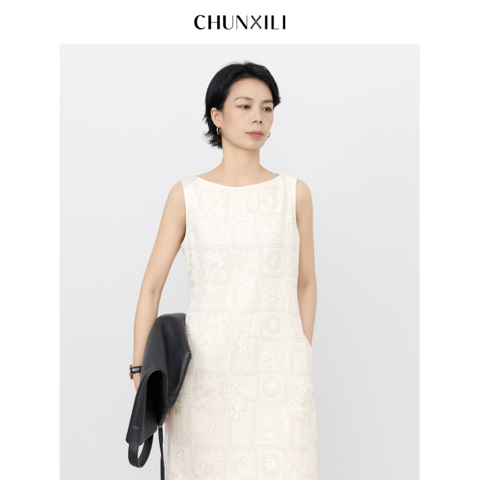 chunxili/春熙裡 夏季重工背心裙 精緻雕花設計 無袖套頭連衣裙